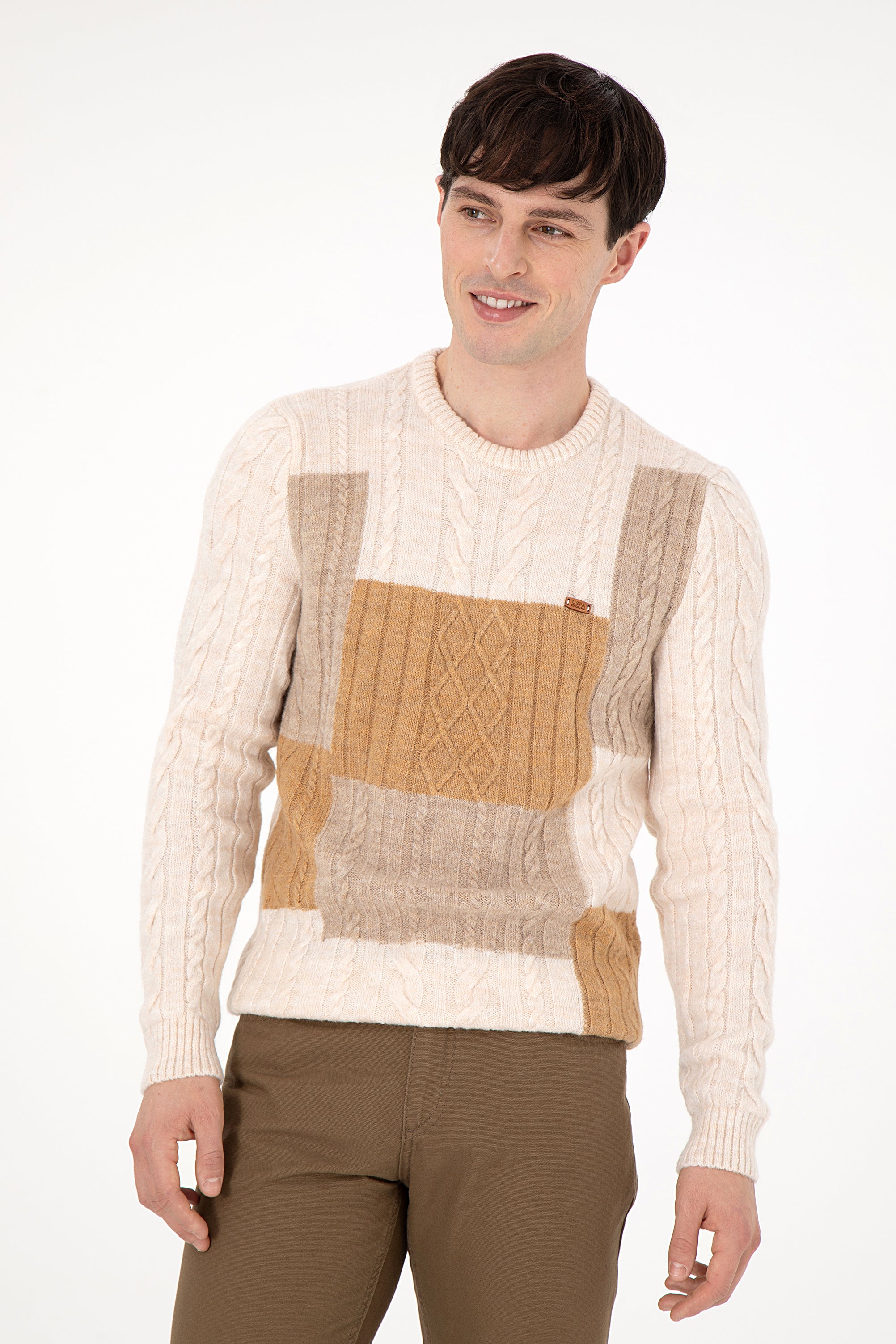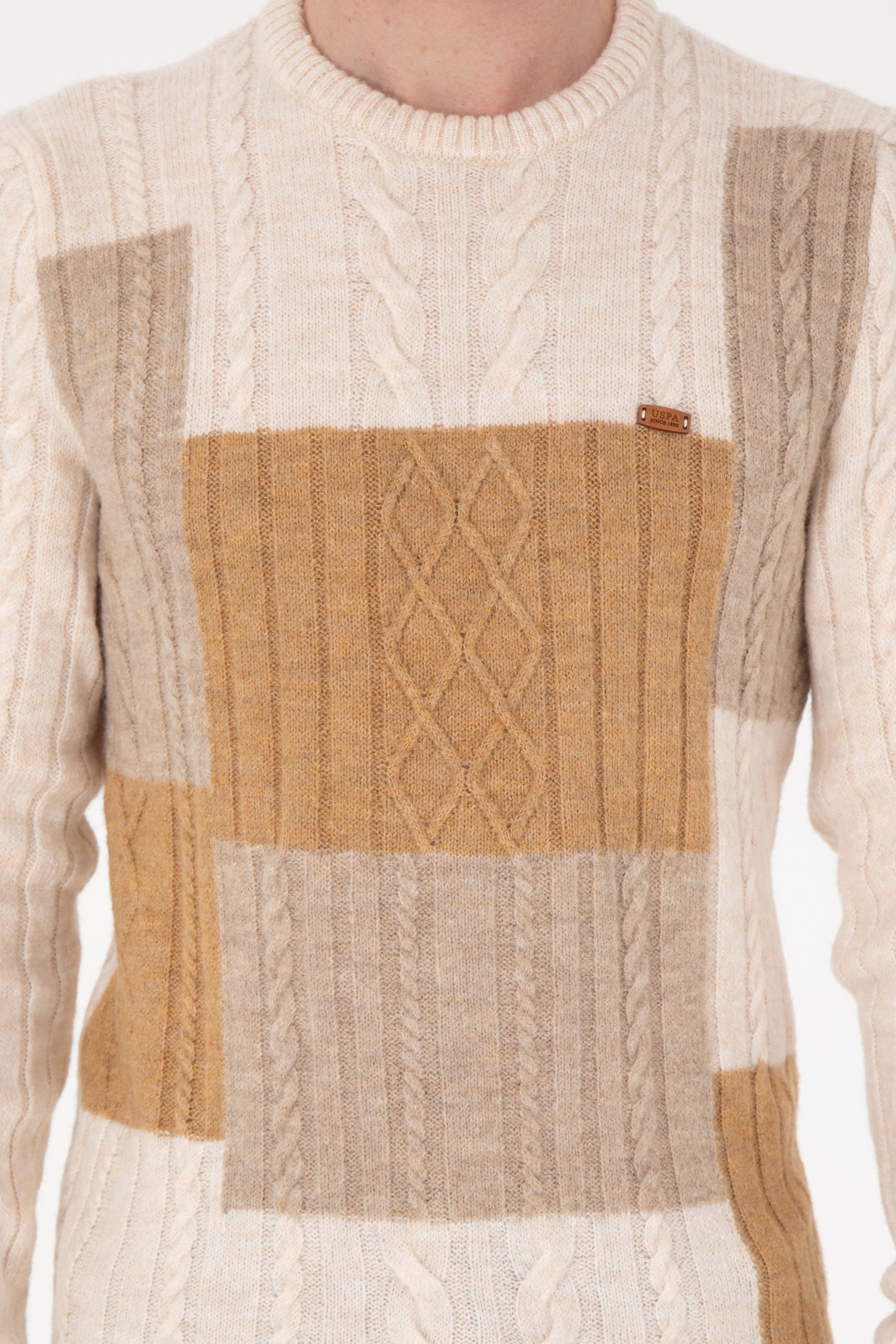 Šarmantan pleteni džemper u nježnim nijansama bež i smeđe boje donosi toplinu i udobnost tokom hladnih dana. Karakteriše ga zanimljiva kombinacija tekstura i uzoraka koja osigurava jedinstven izgled i savršeno pristajanje. Džemper ima savremeni dizajn s diskretnim detaljem na prednjem dijelu, što dodatno ističe njegovu elegantnost. Ovaj džemper je idealan izbor za zimske kombinacije, savršeno se uklapa uz različite stilove i odjevne predmete poput jakni ili košulja, čineći ga svestranim komadom za svakodnevno nošenje.