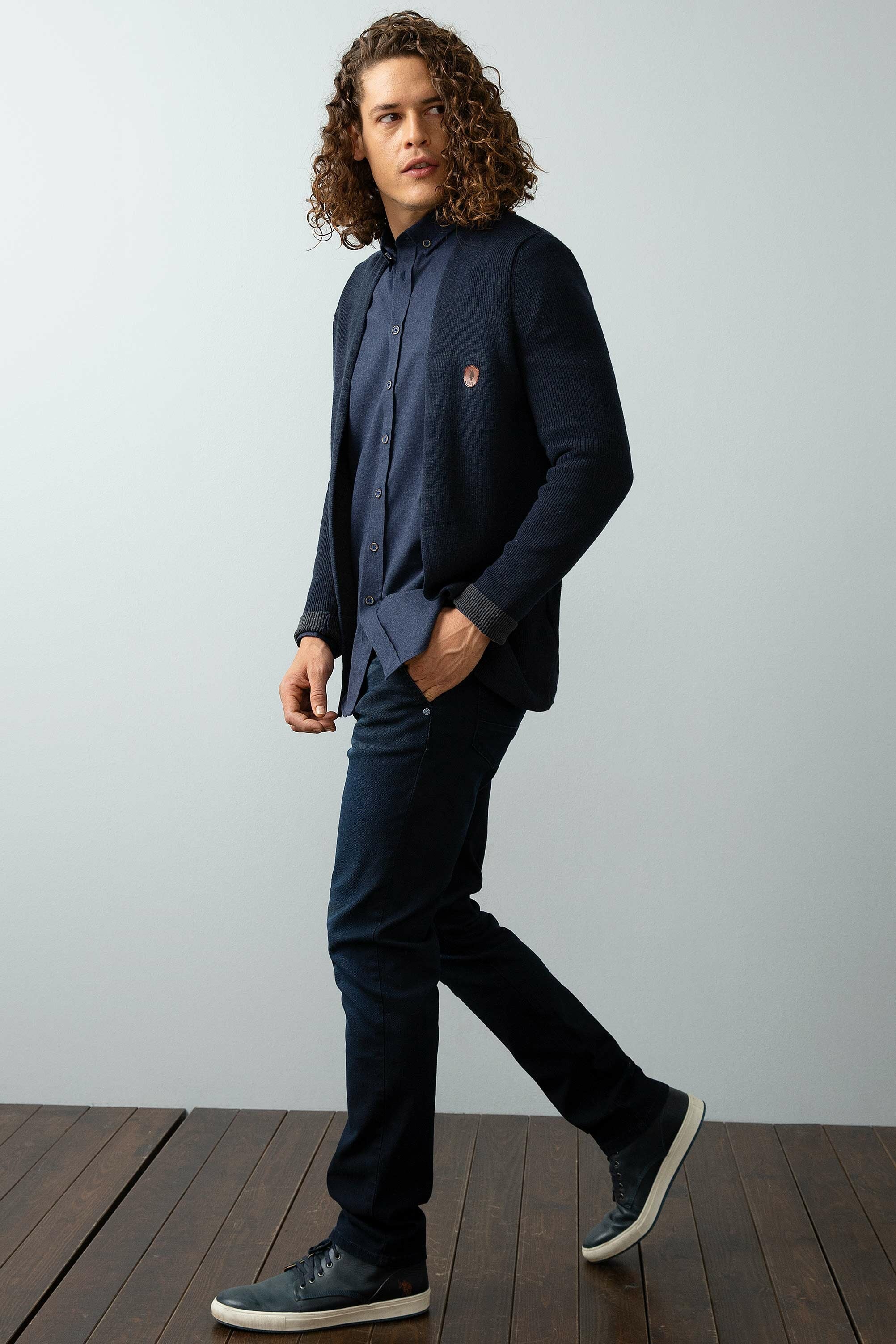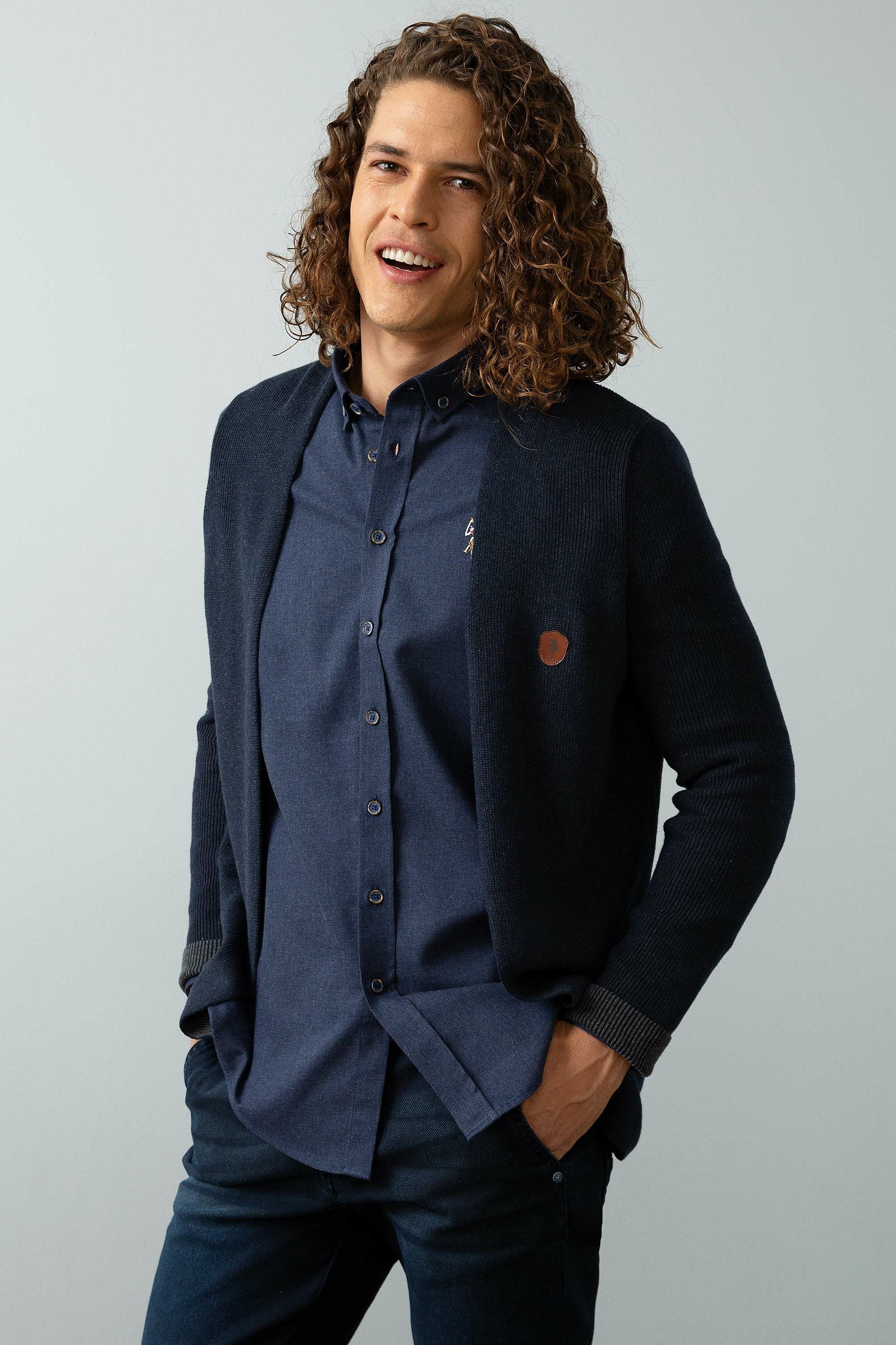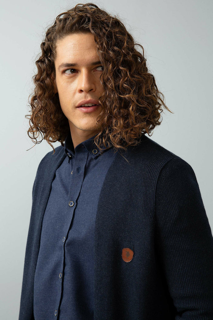 Ovaj šarmantni džemper u tamnoplavoj boji nudi savršenu kombinaciju udobnosti i stila za svakodnevne prilike. Karakteriše ga lagana, teksturirana tkanina koja garantuje prijatno nošenje i dobru prozračnost. Džemper ima moderni kroj s diskretnim detaljem na prednjoj strani, što mu daje dodatnu dozu elegancije. Idealan je za kombinovanje sa košuljama, majicama ili ispod jakne, te se odlično uklapa u razne stilove, bilo da se radi o ležernom izlasku ili poslovnom sastanku, čineći ga savršenim izborom za svaku priliku.