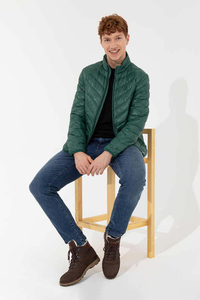 Elegantna zimska jakna u tamnozelenoj boji pruža savršenu kombinaciju topline i stila tokom hladnih dana. Karakteriše je lagana, ali topla pufasti materijal koji osigurava udobno nošenje i odličnu pokretljivost. Na bočnim stranama jakne nalaze se praktične džepove koji dodatno unapređuju funkcionalnost, dok visoki kragnu pruža dodatnu zaštitu od vjetra. Ova jakna je savršen izbor za svakodnevne izlaske, bilo da se radi o šetnji gradom ili opuštenom druženju s prijateljima, a lako se može kombinovati sa različitim odjevnim predmetima poput farmerica, dukserica ili tople flanele.