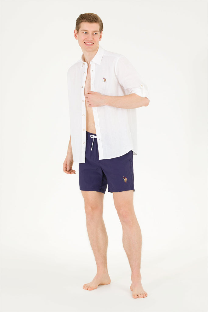 Ovaj moderni kupaći kostim u tamnoplavoj boji idealan je za ljetne avanture na plaži. Karakteriše ga udoban kroj koji omogućava slobodu pokreta, dok elastični pojas osigurava savršeno fitanje. Na prednjem dijelu se nalazi suptilni logotip koji dodaje sportsku notu. Ovaj kupaći kostim je savršen izbor za sunčane dane, bilo da se opuštate uz more ili se bavite sportovima na vodi, a lako se kombinuje sa različitim majicama ili ručnicima, pružajući vam stylish izgled u svakoj prilici.