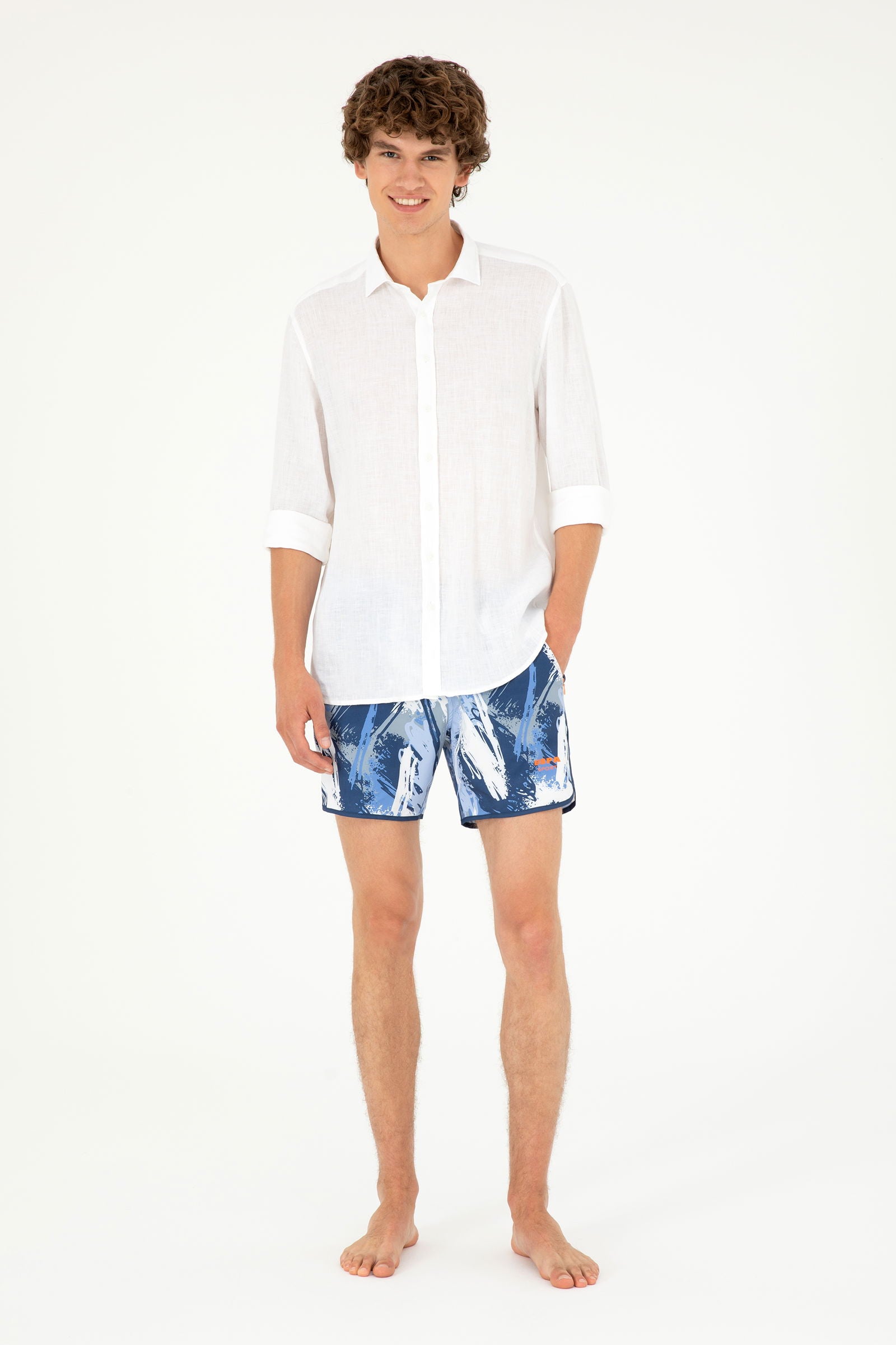 Moderna kupaća šortsica u atraktivnoj kombinaciji plavih i bijelih tonova pruža udobnost i stil tokom ljetnih dana. Karakterišu je lagana i brzosušna tkanina koja omogućava slobodno kretanje i pruža savršeno pristajanje. Na struku se nalazi elastična traka sa vezicom koja dodatno osigurava udobnost i prilagodljivost. Ovi kupaći šorts su idealan izbor za plažu ili bazen, a lako se mogu kombinovati sa različitim majicama ili košuljama za ležerniji ljetni izgled.