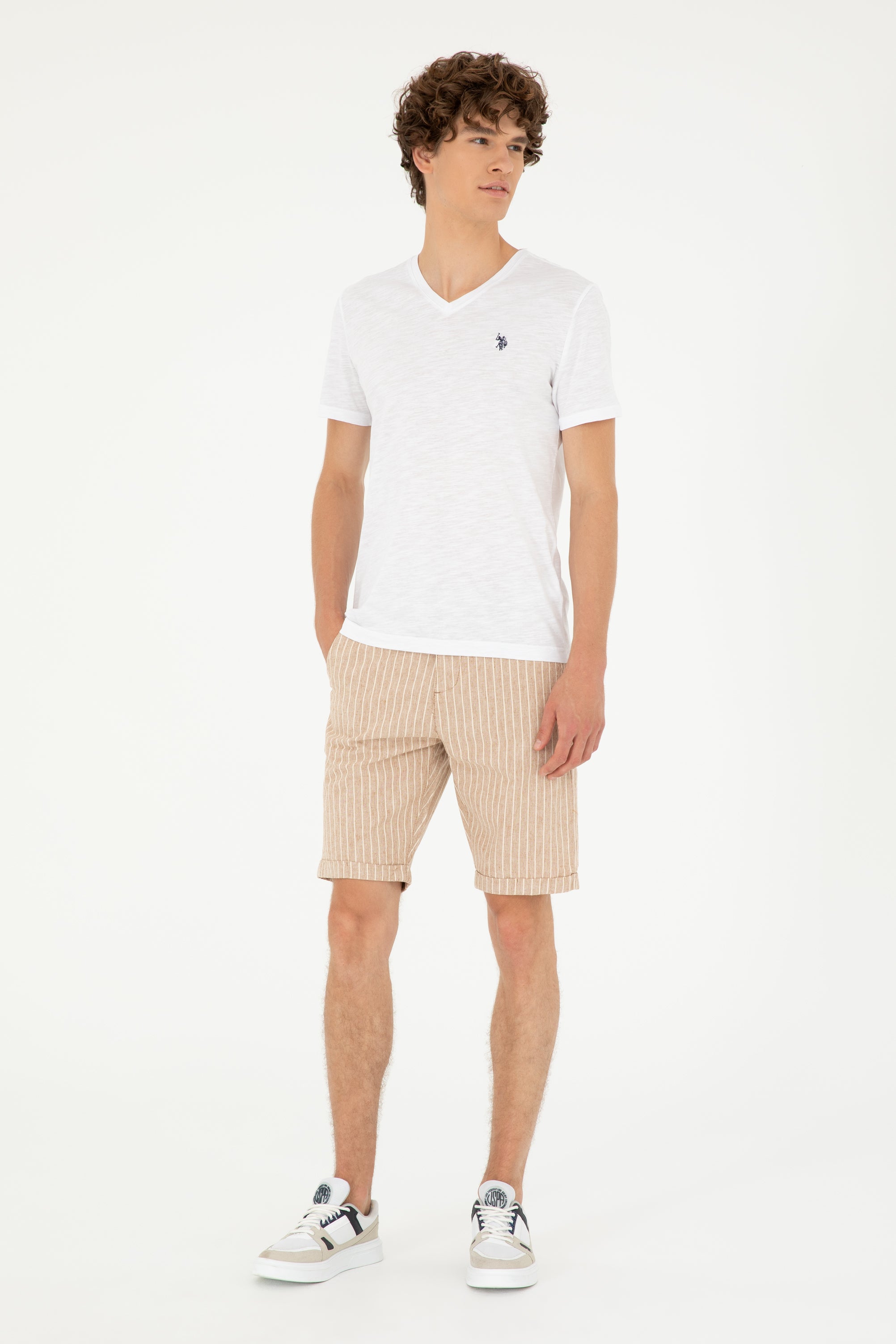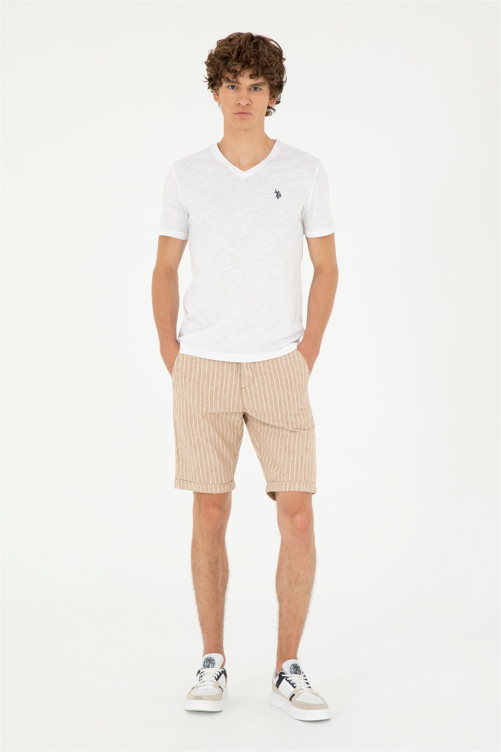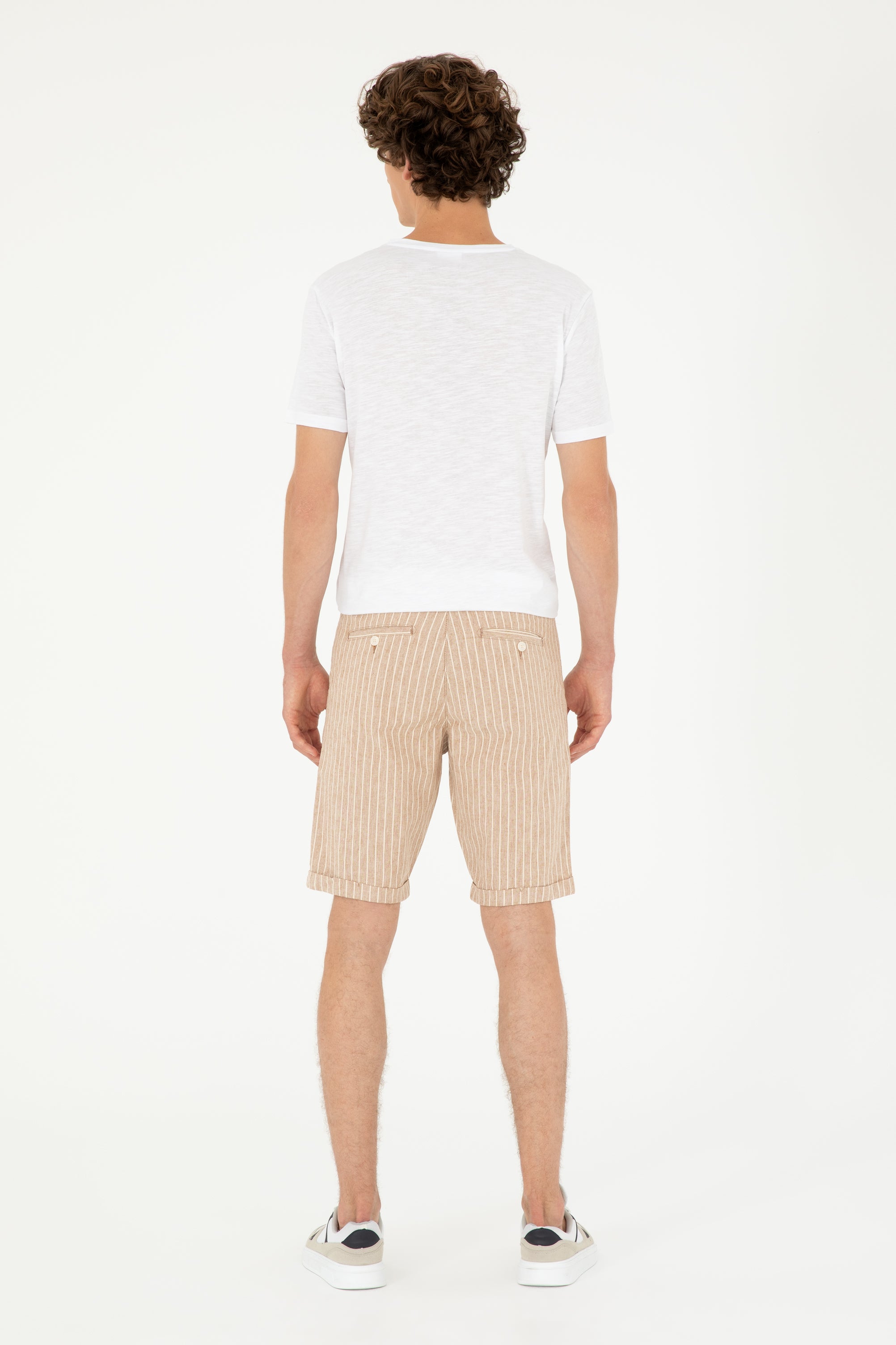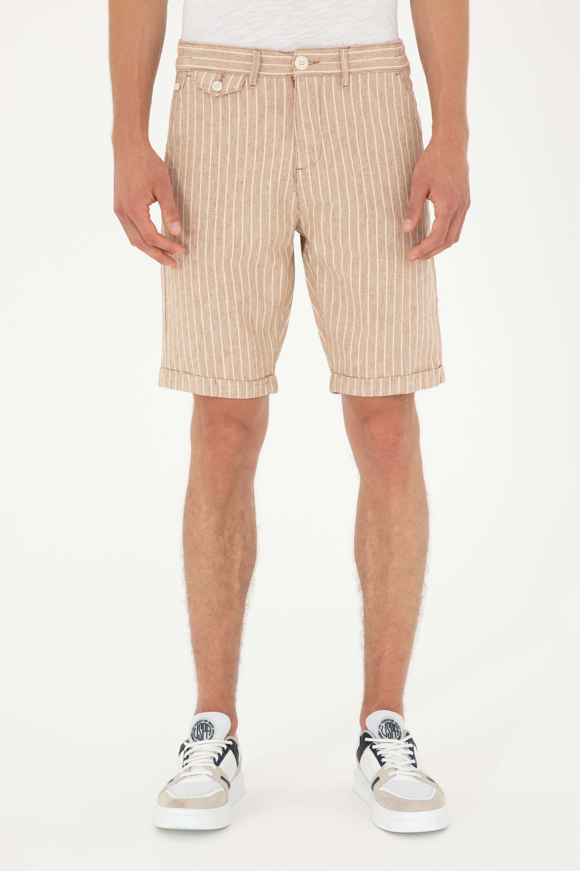 Šarmantni šorcevi u klasičnoj bež boji donose udobnost i stil tokom toplih dana. Karakterišu ih savršeno krojenje i lagana pamučna tkanina koja omogućava prozračnost i lakoću nošenja. Na prednjem dijelu šorceva nalazi se diskretna etiketa koja dodaje dozu sofisticiranosti. Ovi šorcevi su idealan izbor za ljetne aktivnosti, bilo da se radi o odlasku na plažu ili opuštenom druženju u parku, a lako se mogu kombinovati sa različitim majicama i obućom, poput t-shirtova ili sandala.