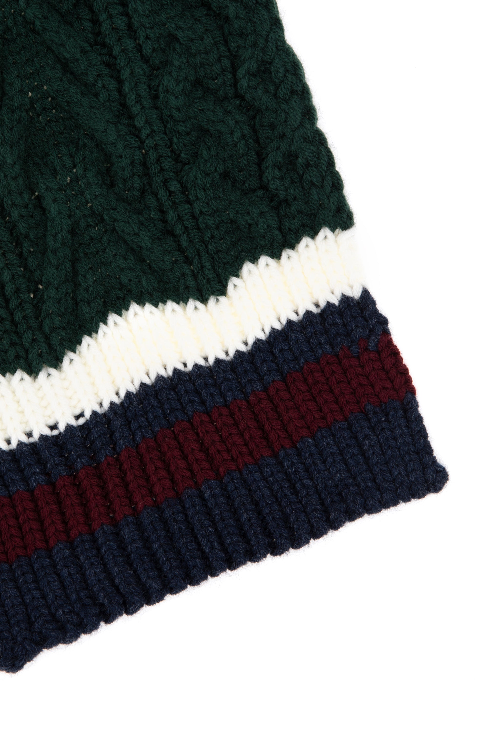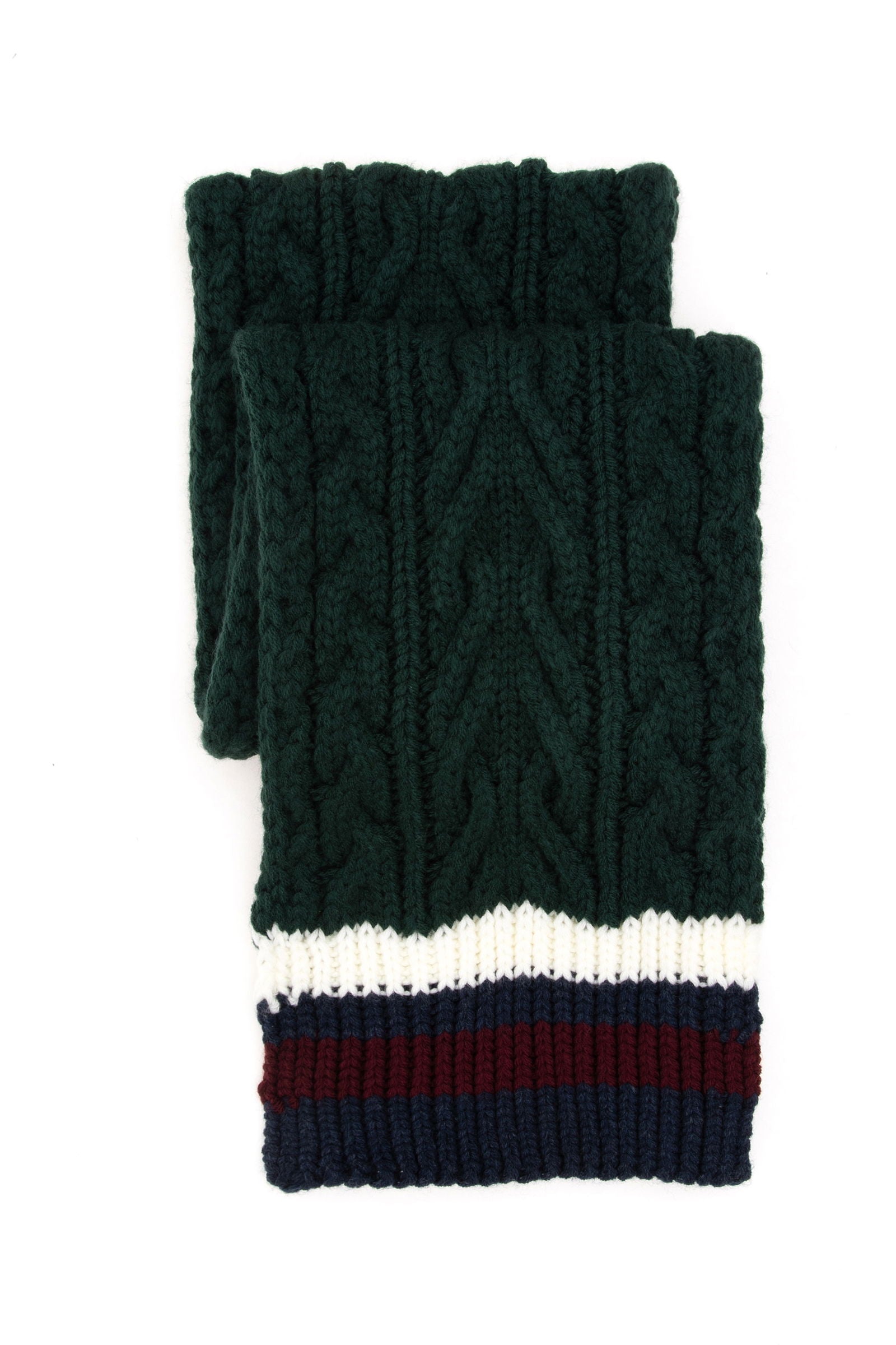 Elegantni šal od pletene vune u bogatoj tamnozelenoj boji pruža savršen spoj topline i stila tijekom hladnih dana. Karakteriše ga gusta tekstura s klasičnim uzorkom koji osigurava udobnost i toplotu. Na donjem rubu nalazi se atraktivan detalj u kontrastnim bojama, što dodatno ističe njegov šarm. Ovaj šal je idealan dodatak za zimske odjevne kombinacije, bilo da se radi o svakodnevnom izlasku ili formalnijem događaju, i lako se može kombinovati s različitim kaputima, jaknama ili džemperima.