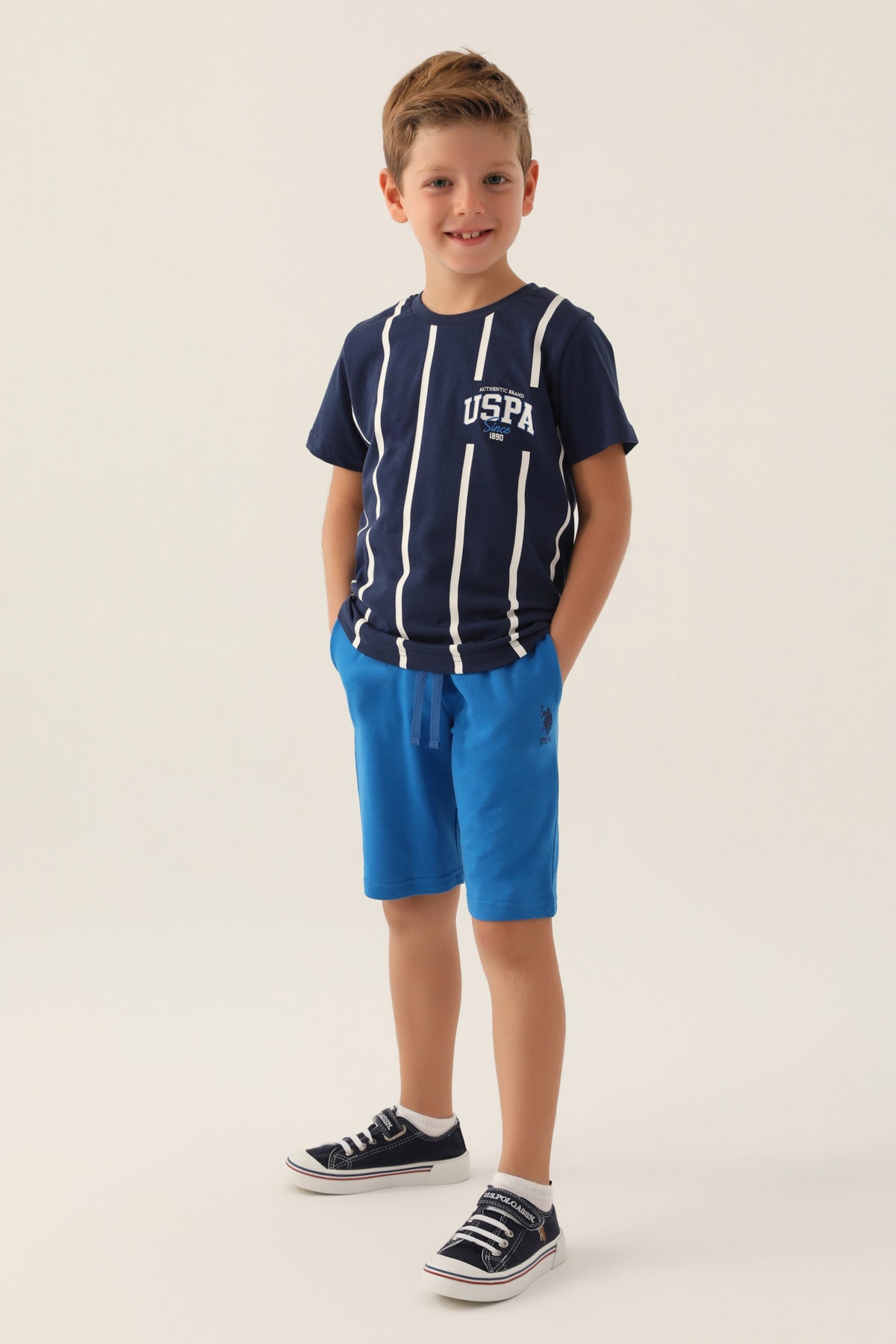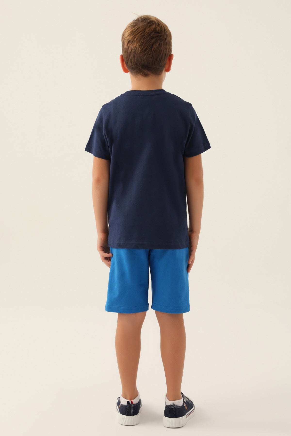 Set za dječake sastoji se od udobne majice s kratkim rukavima u tamnoplavoj boji s bijelim vertikalnim prugama, koja donosi svježu notu i modernu estetiku. Majica je izrađena od mekanog pamuka, što omogućava lako kretanje i udobnost tokom cijelog dana. U kompletu su i šorts u živahnoj plavoj boji, koji omogućava slobodu i lakoću tokom igre. Set je dopunjen svestranim tenisicama koje se lako kombinuju, a pružaju podršku i stabilnost pri aktivnostima. Ovaj stylish set je idealan za ljetne dane, bilo za odlazak na izlet, igranje u parku ili opuštanje s prijateljima. Uz ovaj set, svaki dječak će izgledati moderno i osjećati se prijatno!