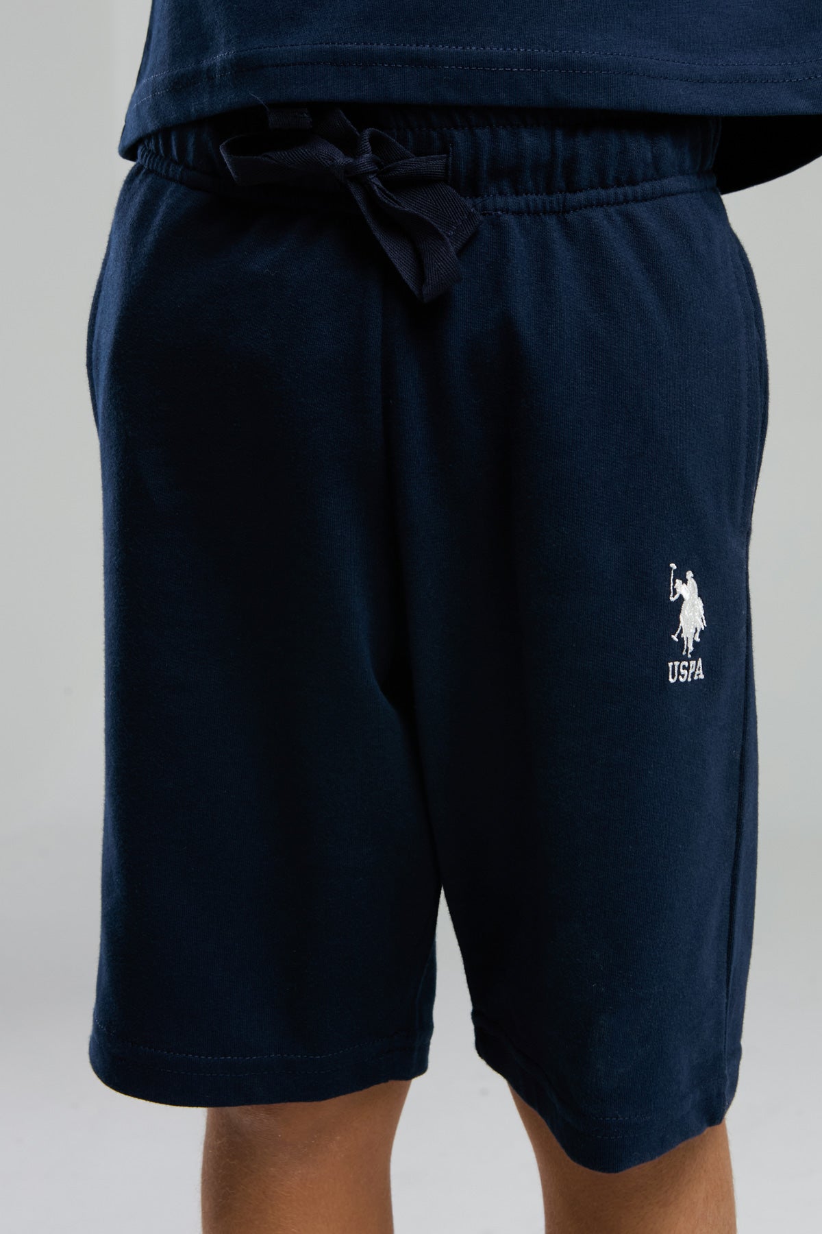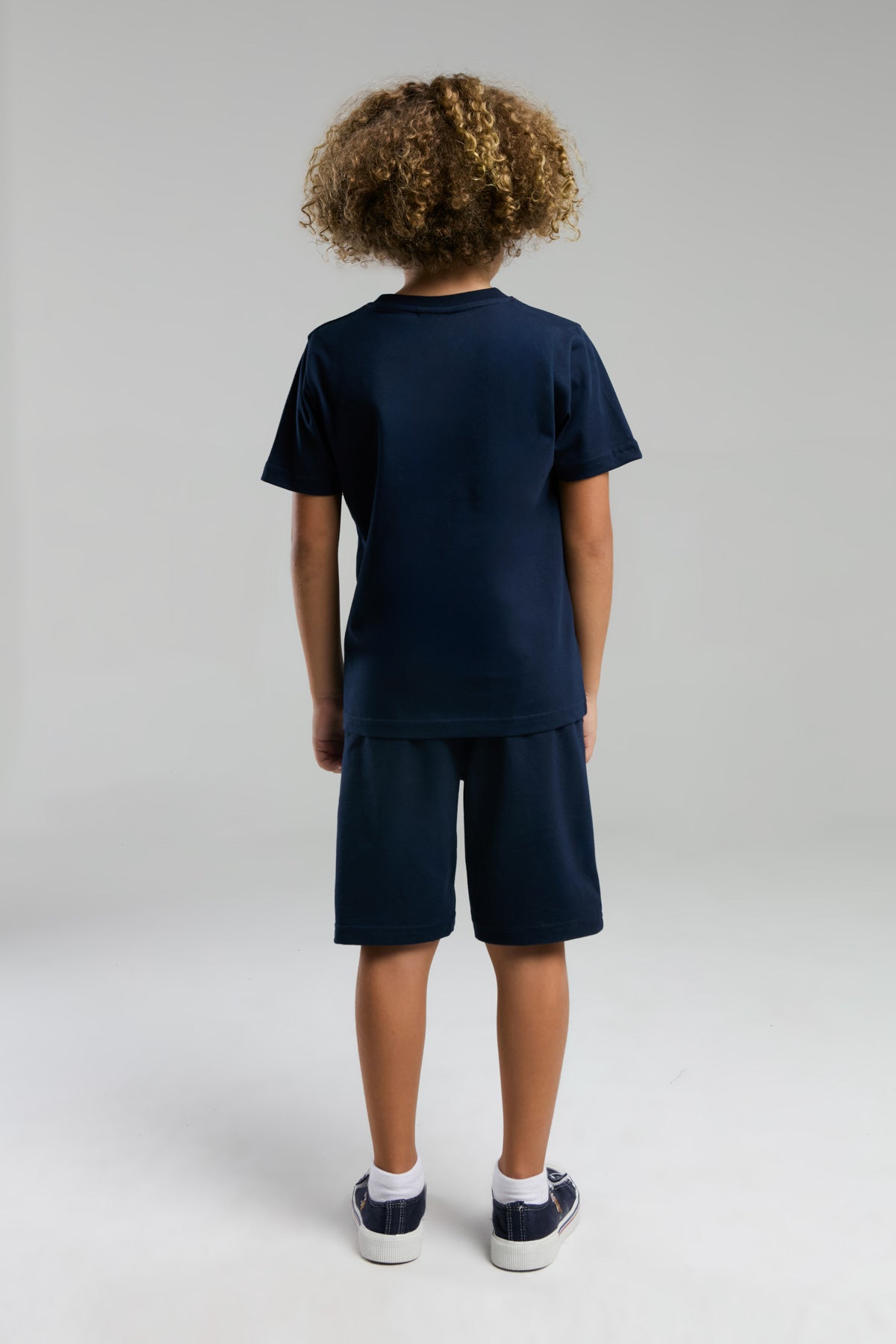 Set sadrži udobnu majicu kratkih rukava u tamnoplavoj boji sa modernim grafičkim printom na prednjem dijelu, koji dodaje dašak razigranosti. Majica je izrađena od kvalitetnog pamuka, što omogućava prozračnost i udobnost tokom cijelog dana. Uz majicu dolaze i šorc u tamnoplavoj boji, idealan za ljetne aktivnosti i igru na otvorenom. Set je savršen za svakodnevne kombinacije, bilo da se radi o odlasku na plažu ili igri s prijateljima, a može se lako kombinovati s različitim sportskim ili ležernim obućom. Ovaj set će svakako biti omiljeni izbor za tople, sunčane dane.
