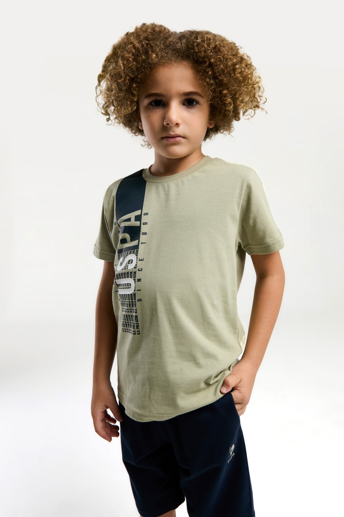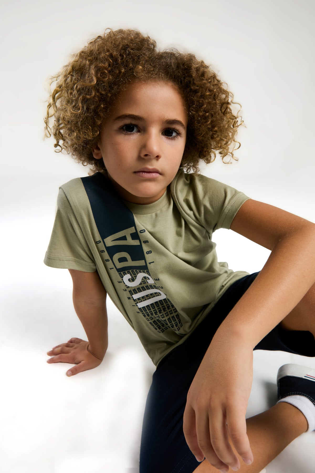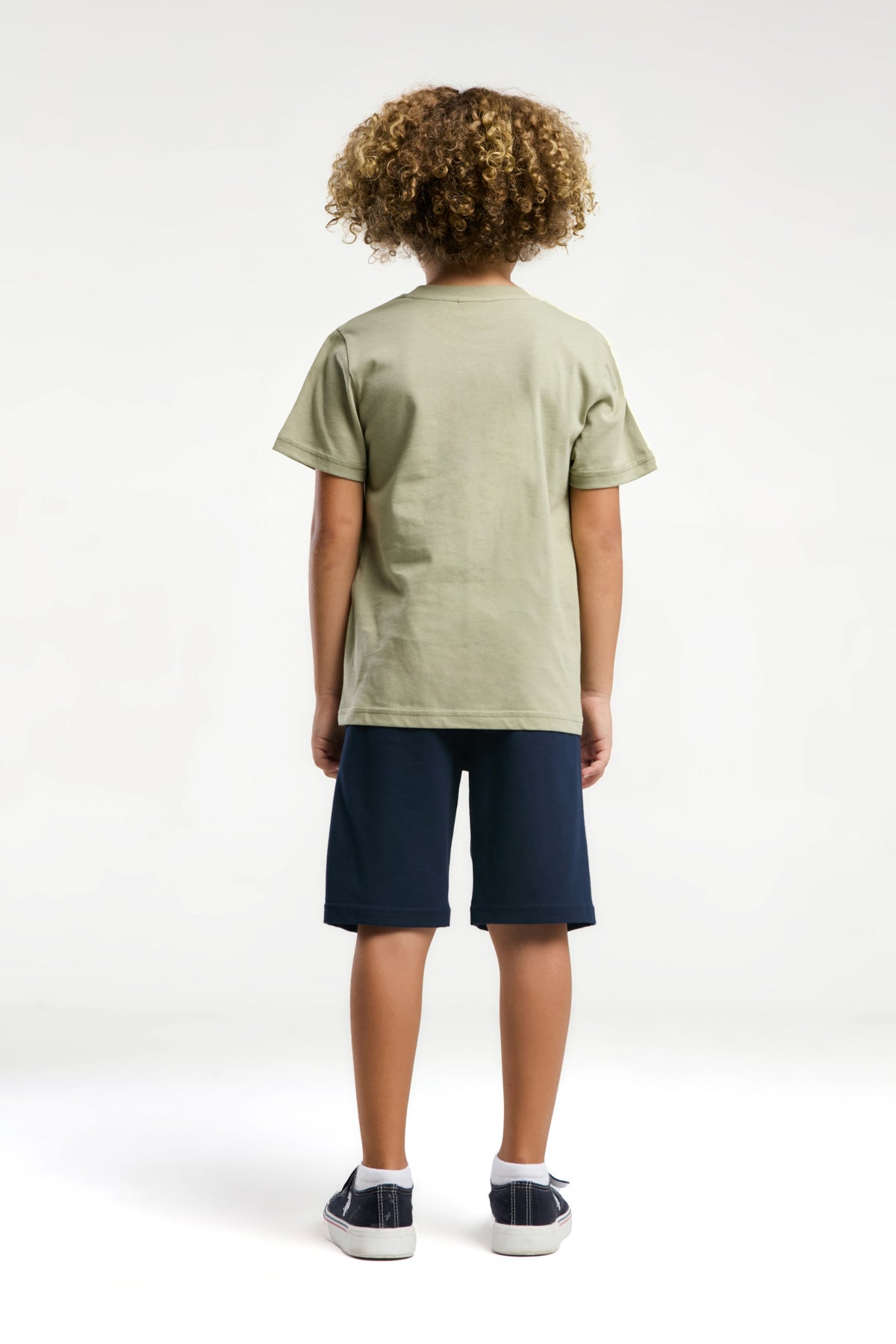 Set uključuje udobnu majicu u svijetlozelenoj boji i kratke hlače u tamnoplavoj nijansi, idealne za tople dane. Majica se odlikuje zanimljivim grafičkim detaljem sa strane koji joj daje moderan izgled. Kratke hlače su opuštenog kroja, omogućavajući slobodu pokreta i udobnost tokom aktivnosti. Ovaj set je savršen za svakodnevne aktivnosti, igranje na otvorenom ili obavljanje školskih obaveza. Kombinacija boja lako se uklapa s raznim obućama i dodatnom odjećom, što ga čini svestranom opcijom za proljetne i ljetne kombinacije.