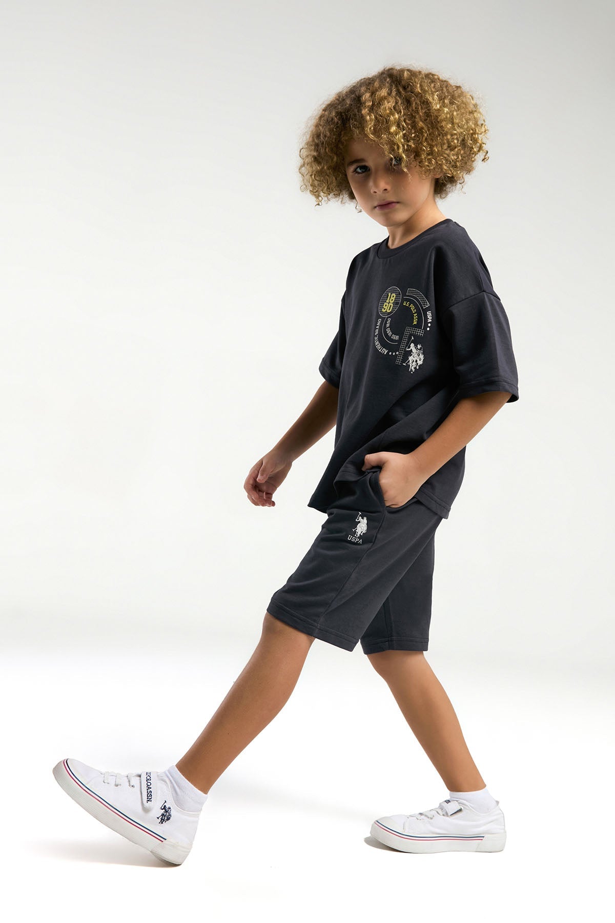 Set za djecu u modernoj crnoj boji nudi savršenu kombinaciju udobnosti i stila. Sastoji se od kratkih hlača i lagane majice sa kratkim rukavima, pružajući potpunu slobodu kretanja tokom svakodnevnih aktivnosti. Majica je ukrašena suptilnim logotipom, dodajući trendi detalj cijelom izgledu. Ovaj set je idealan za tople dane, bilo da se radi o igri u parku ili odlasku na izlet, a lako se može kombinovati sa svojim omiljenim patikama ili sandalama. Njegova svestranost čini ga savršenim izborom za razne prilike.