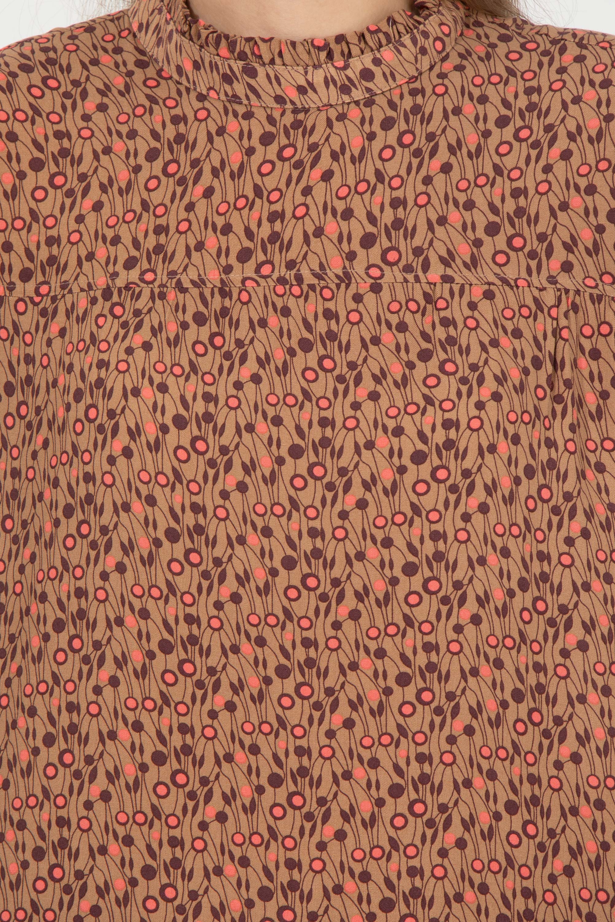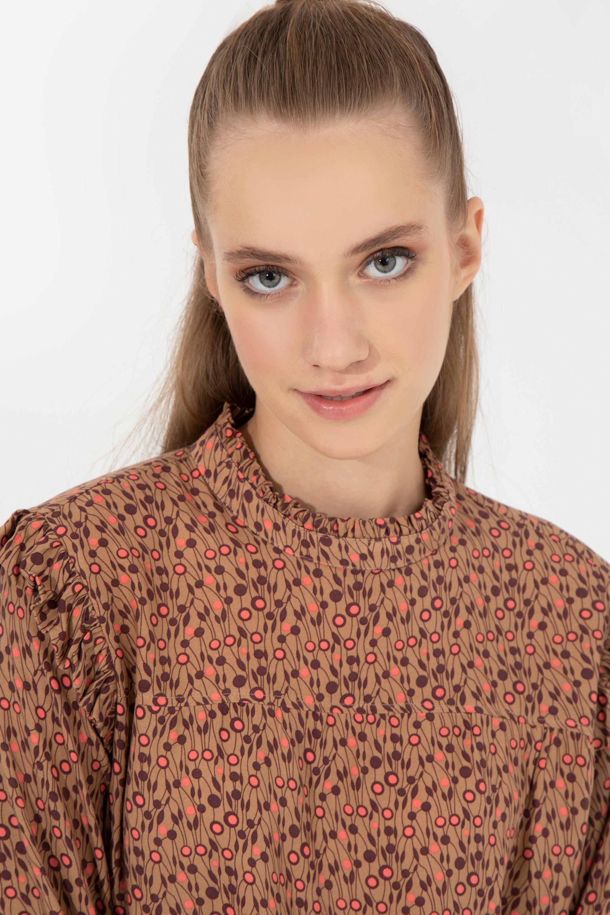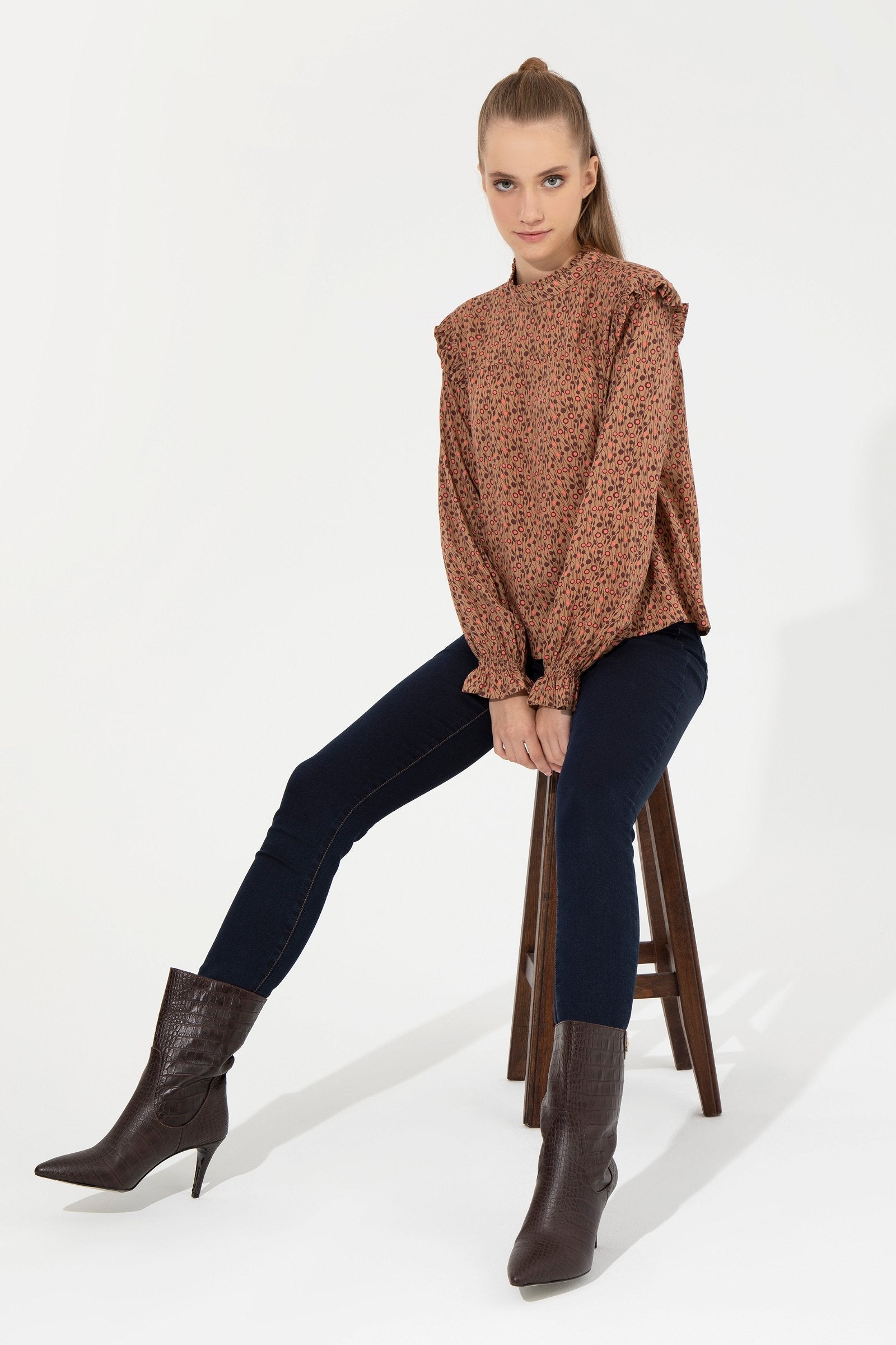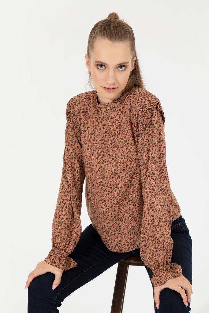Šarmantna bluzica u nježnoj smešanoj boji sa zanimljivim uzorkom pruža udobnost i stil tokom svakodnevnih prilika. Karakteriše je lagani i prozračni materijal koji omogućava lako nošenje u svim godišnjim dobima. Rukavi su široki i blago nabrani, što dodaje dozu ženstvenosti i elegancije. Ova bluzica se savršeno uklapa u različite stilove i odjevne kombinacije, bilo da se nosi uz traperice za ležernu priliku ili uz suknju za elegantniji izgled. Idealna je za svakodnevne izlaske, kao i za posebne prilike, stvarajući savršen spoj udobnosti i stila.