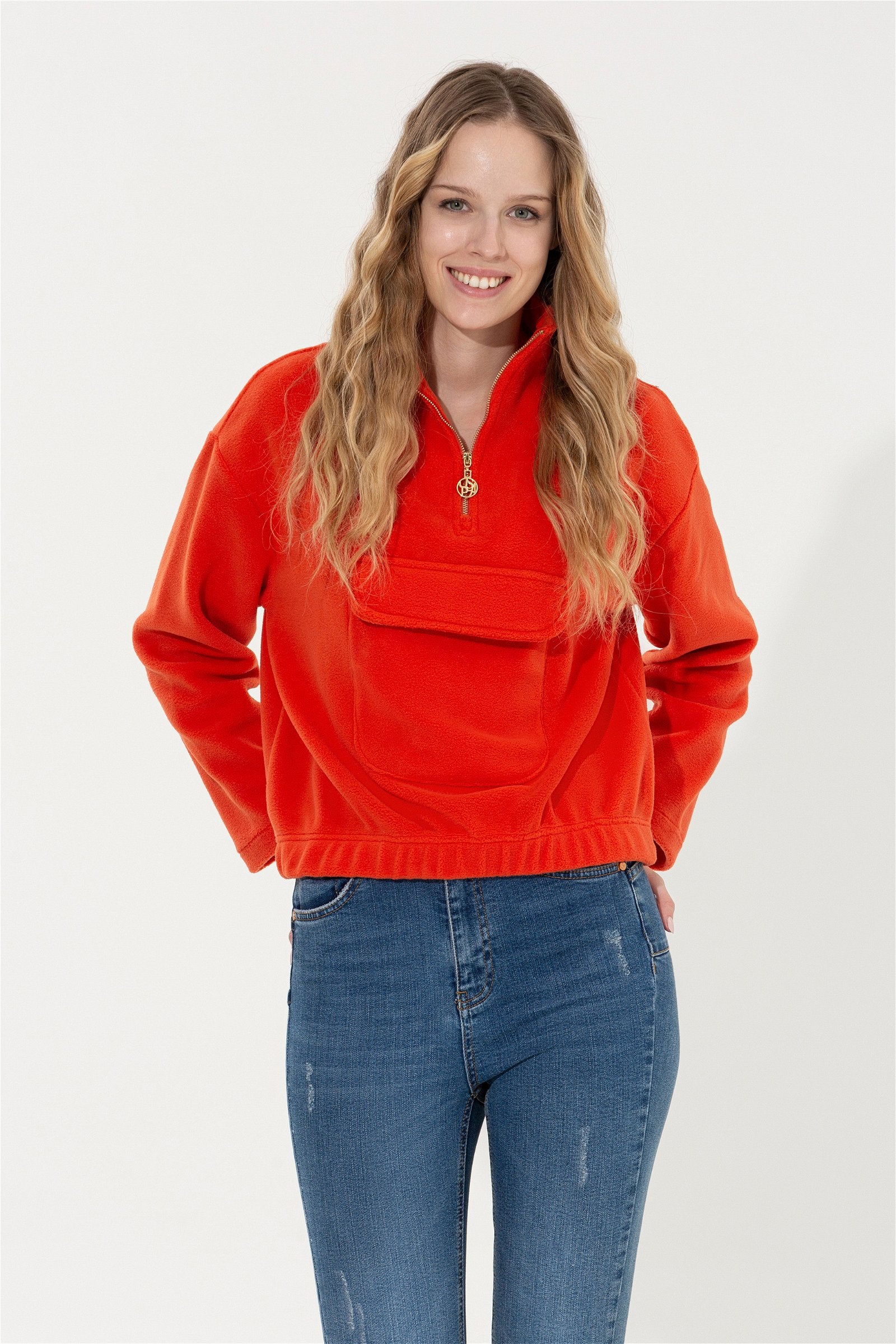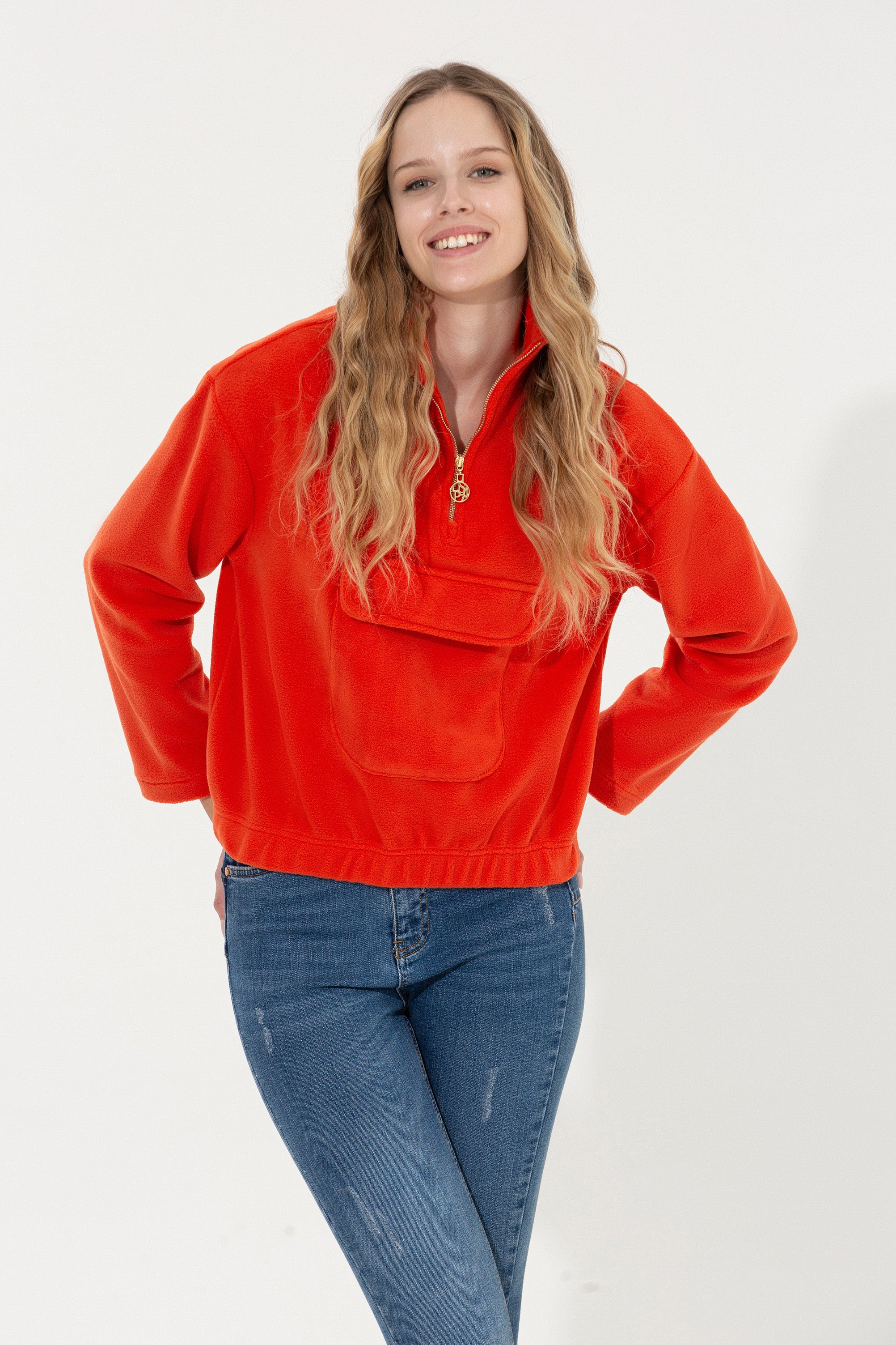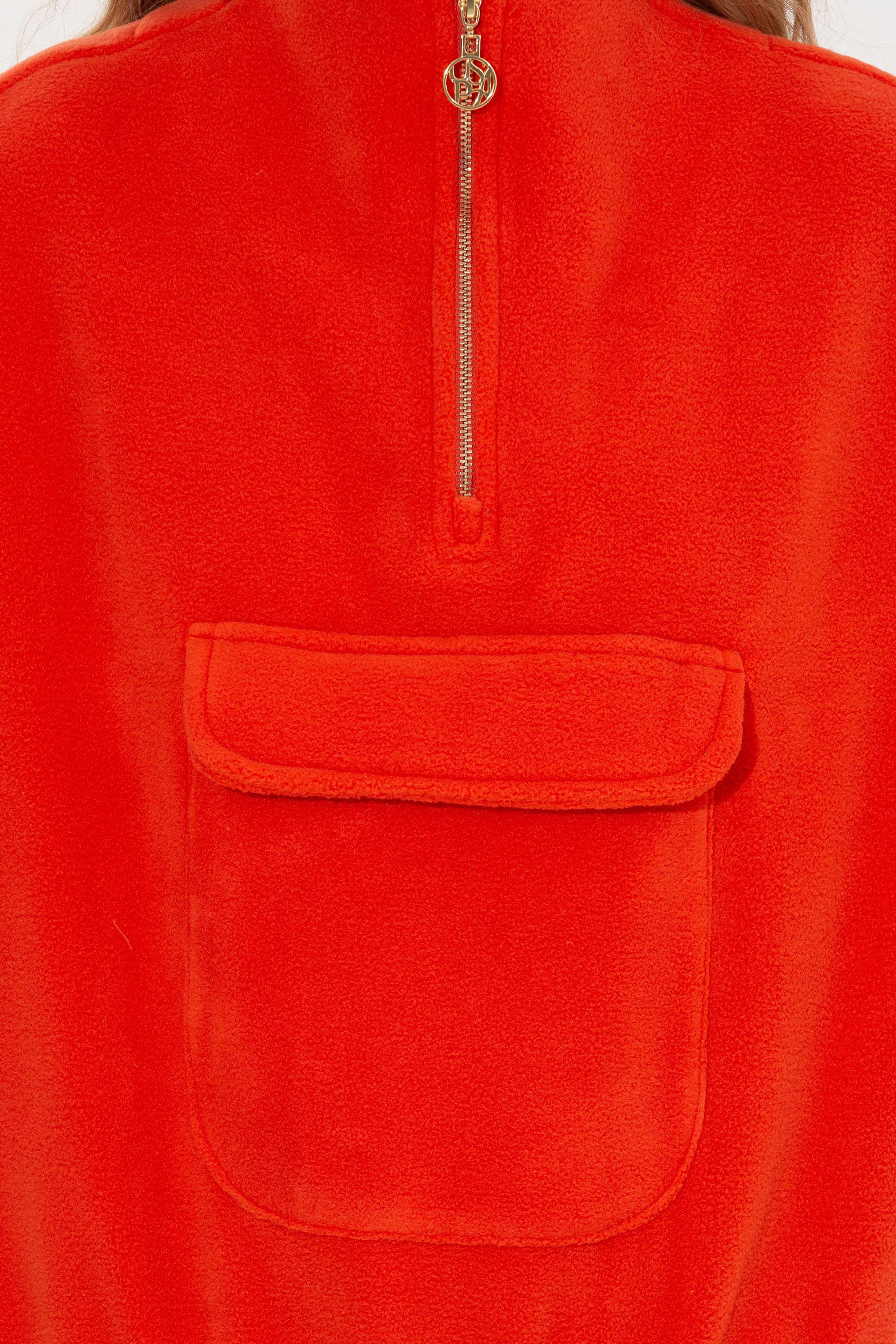 Ova šarmantna dukserica u intenzivnoj crvenoj boji donosi udobnost i toplinu u vaš svakodnevni stil. Karakteriše je mekani materijal koji osigurava komforno nošenje tokom cijelog dana. Na prednjem dijelu dukserice nalazi se praktična zip-patent zatvarač i džep koji dodaje funkcionalnost, dok su elegantne linije i kroj naglašeni modernim detaljima. Ova dukserica savršeno se uklapa u ležerne kombinacije, bilo da se pripremate za izlazak s prijateljima ili uživate u opuštenoj šetnji, a lako je kombinovati s omiljenim farmerkama, helankama ili trenirkama.