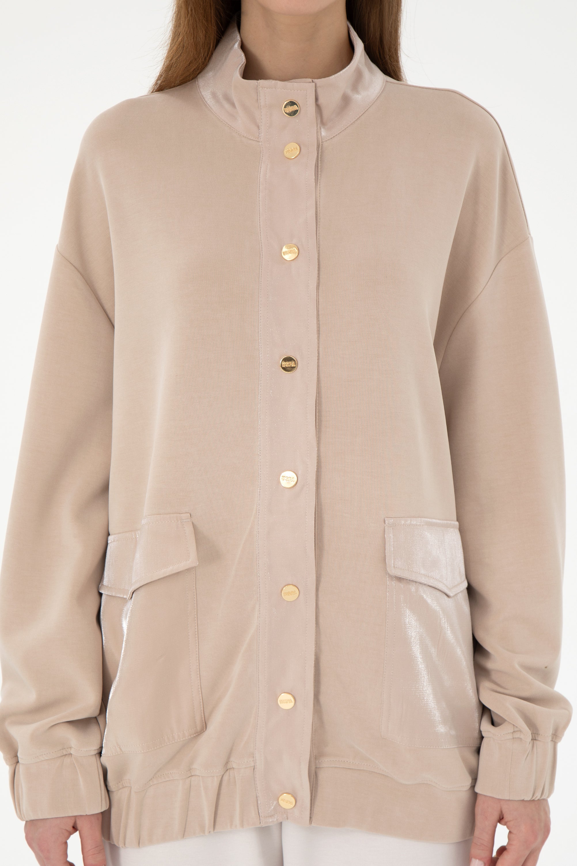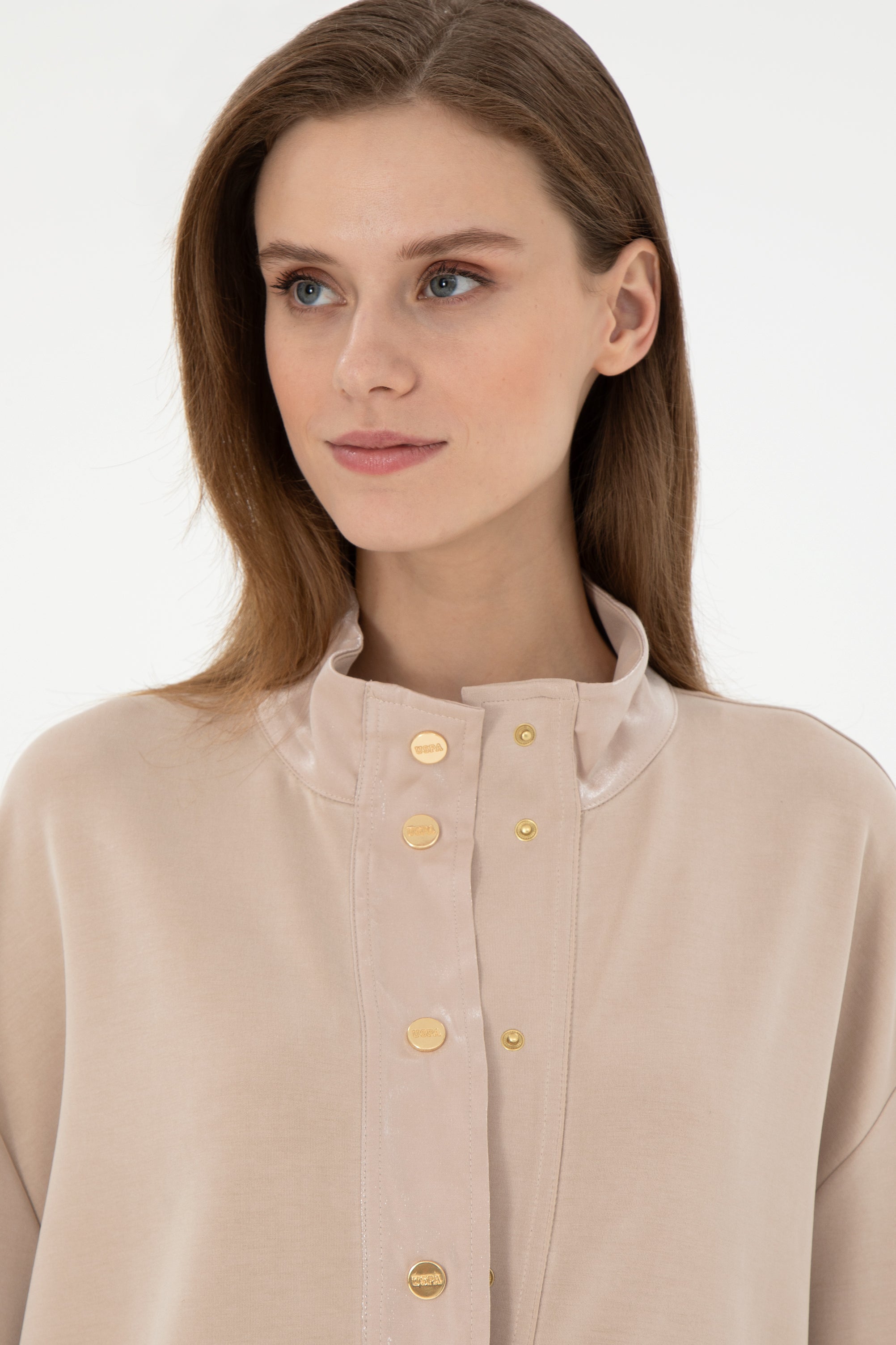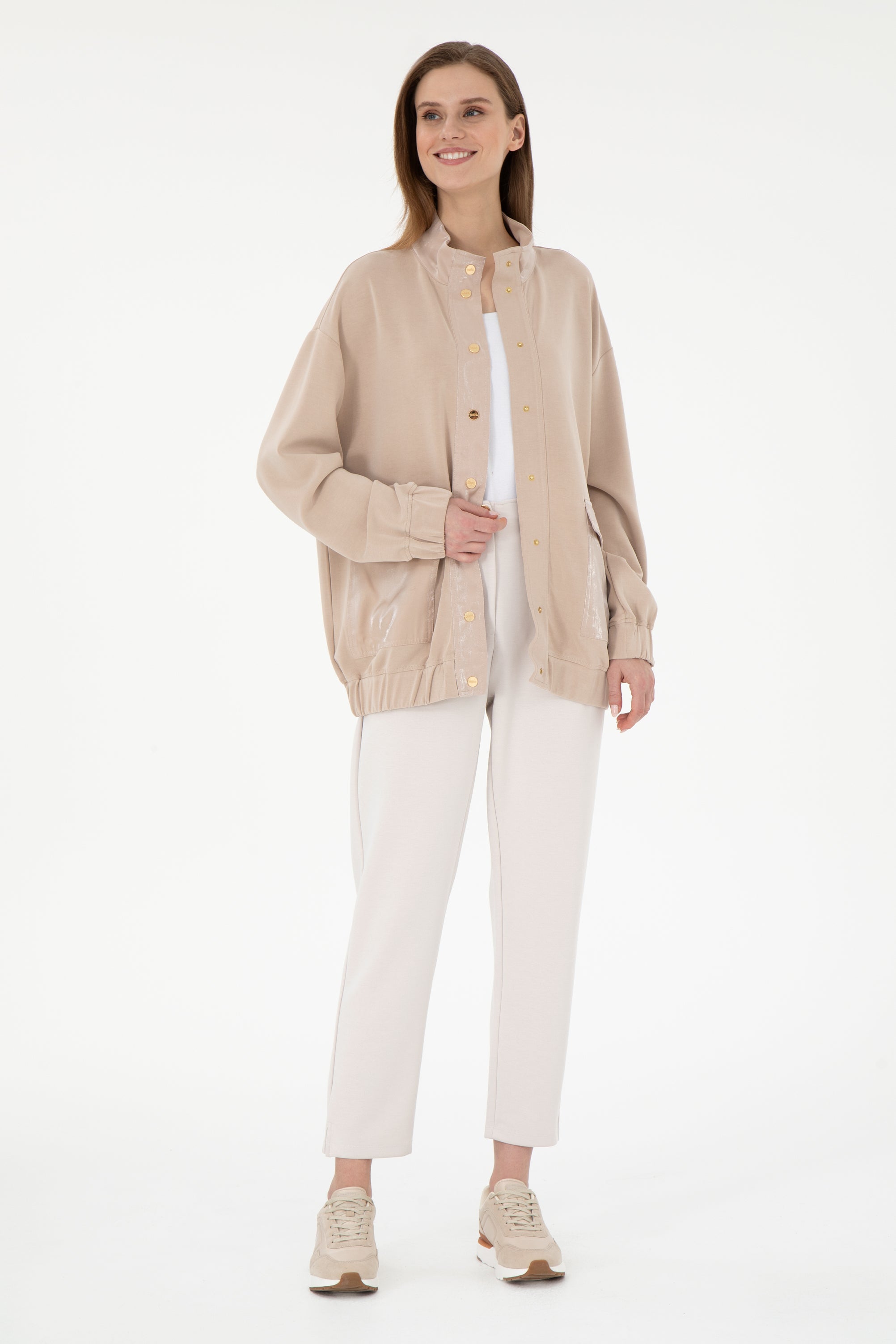 Moderna dukserica u klasičnoj bež boji kombinira eleganciju i udobnost, idealna za svakodnevne izlaske. Karakterišu je široki kroj i mekani materijal koji pruža savršenu udobnost tijekom cijelog dana. Prednji dio s funkcionalnim džepovima dodaje praktičnost, dok dugmad na prednjoj strani donose dašak stila. Ova dukserica se lako može kombinovati s raznim odjevnim predmetima, od ležernih traperica do elegantnih hlača, te je savršena za prelazne sezone. Bez obzira na to da li se radi o izlasku s prijateljima ili opuštenom danu kod kuće, ova dukserica će vas držati u trendu.