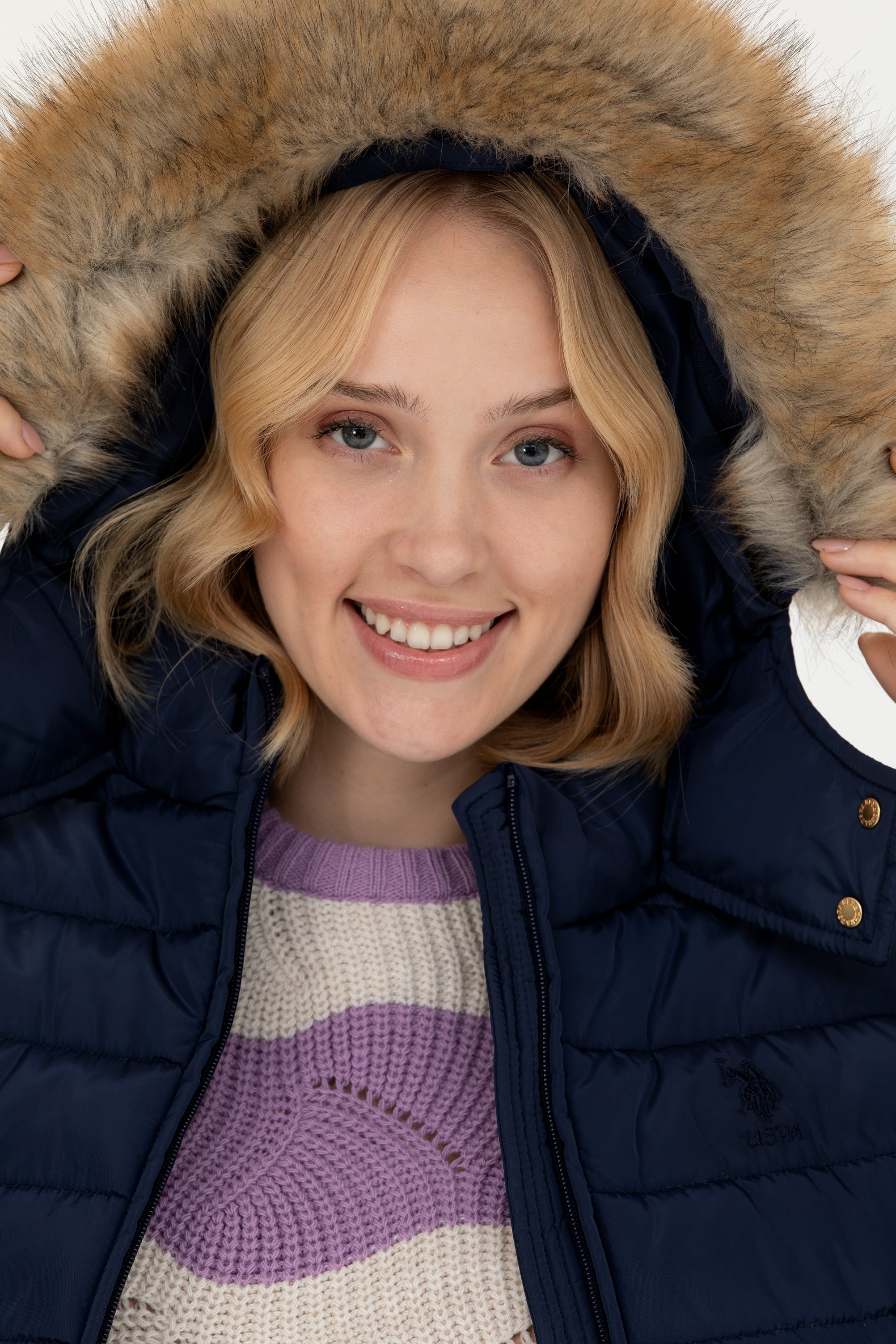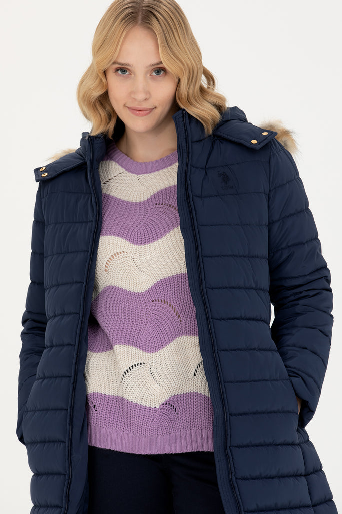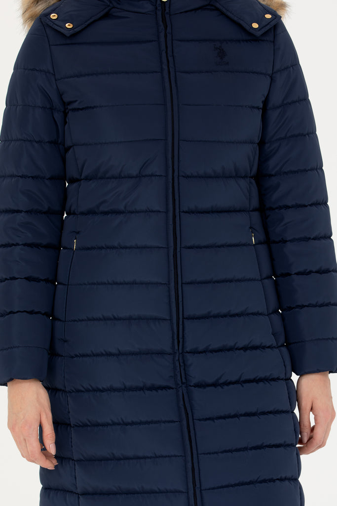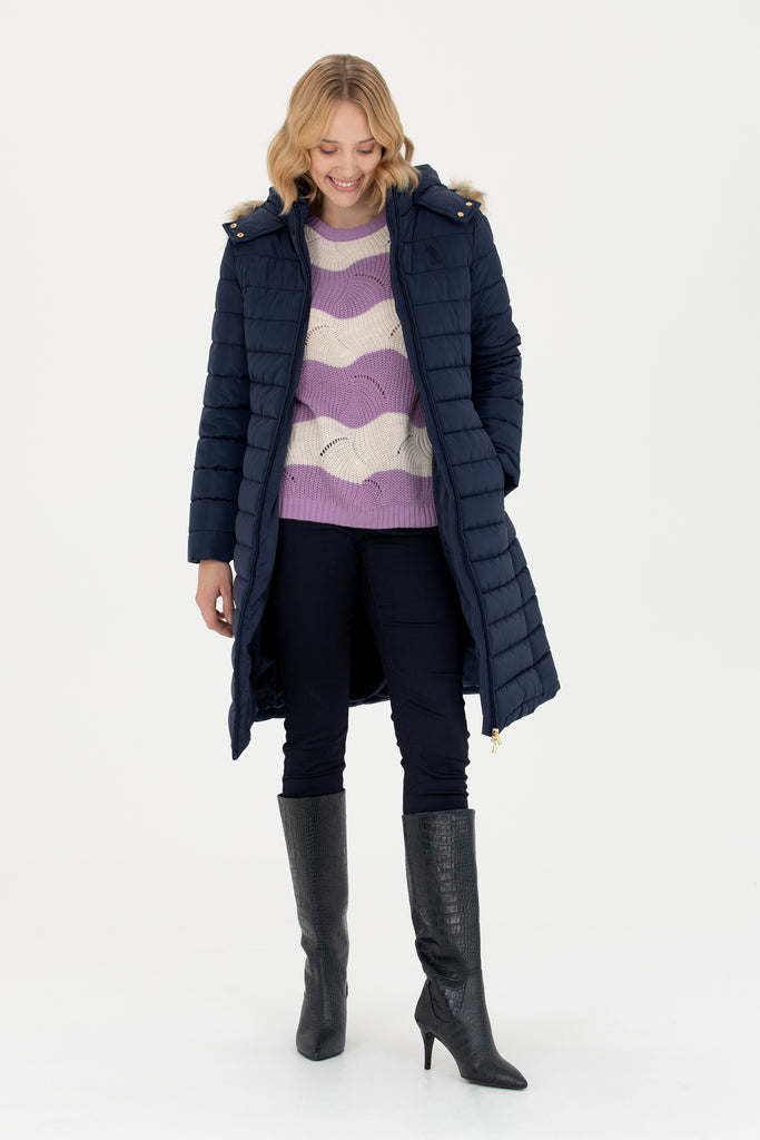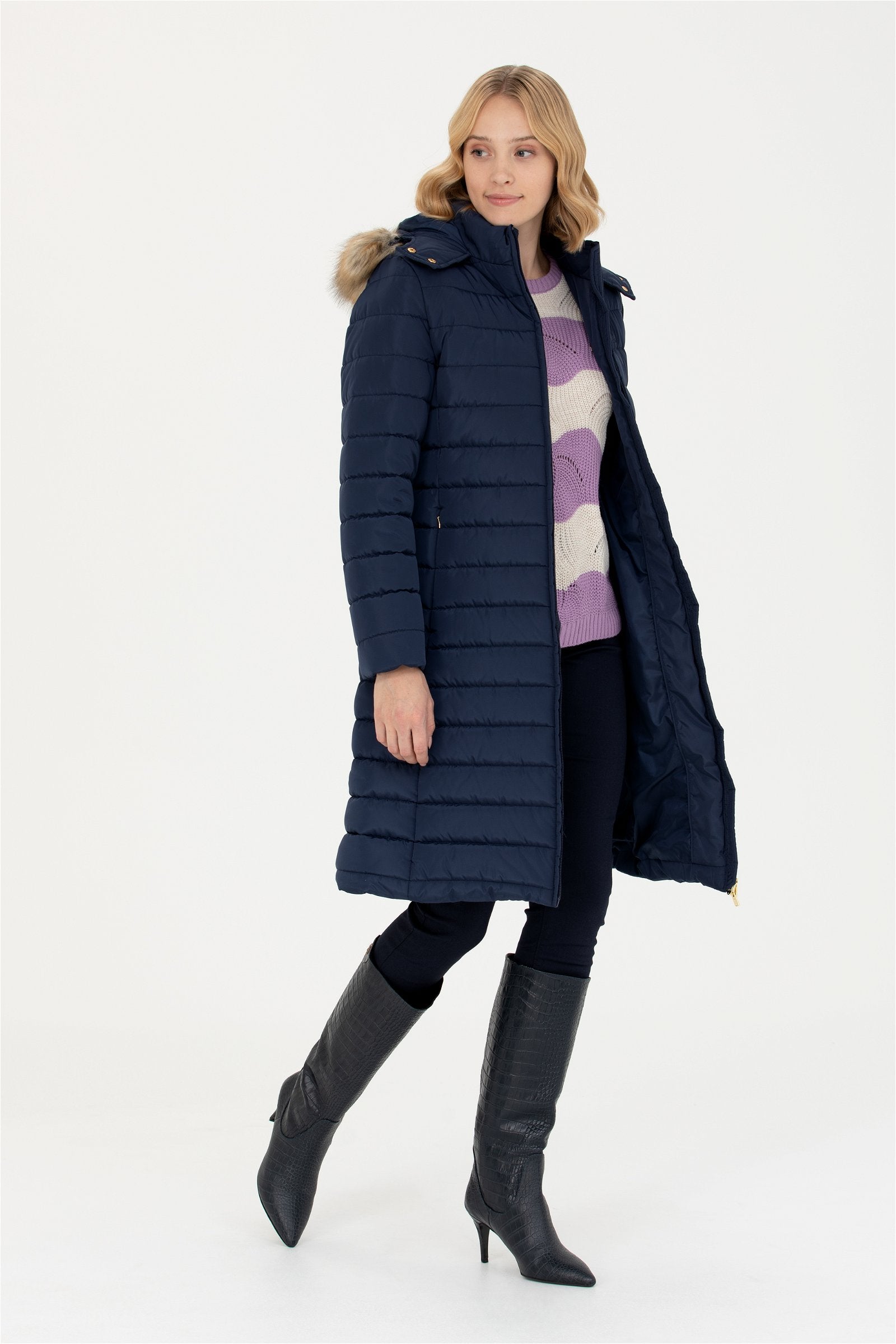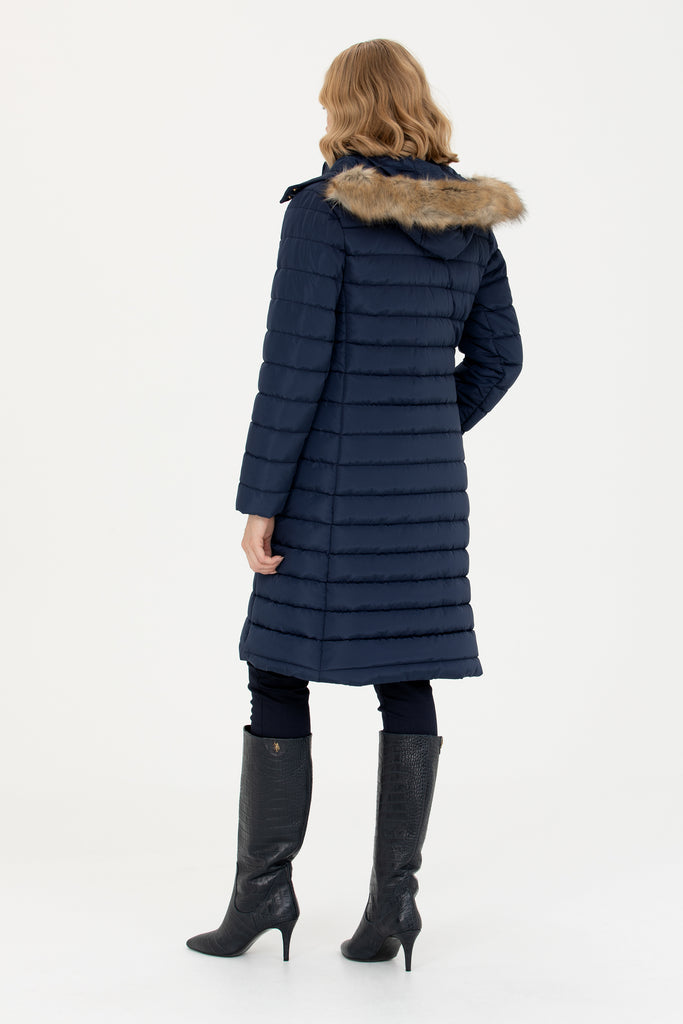 Elegantna zimska jakna u tamno plavoj boji pruža savršen spoj topline i stila u hladnim danima. Ova jakna karakteriše duguljasti kroj koji osigurava dodatnu zaštitu od zime, dok sučelje s mekanim kapuljačom dodaje udobnost. Na prednjem dijelu se nalaze praktične munje i džepovi, što je čini idealnom za svakodnevno nošenje. Jakna se lako kombinuje s raznim odjevnim predmetima, od ležernih kombinacija do elegantnijih izdanja, a savršeno se uklapa uz čizme ili zimske botine.