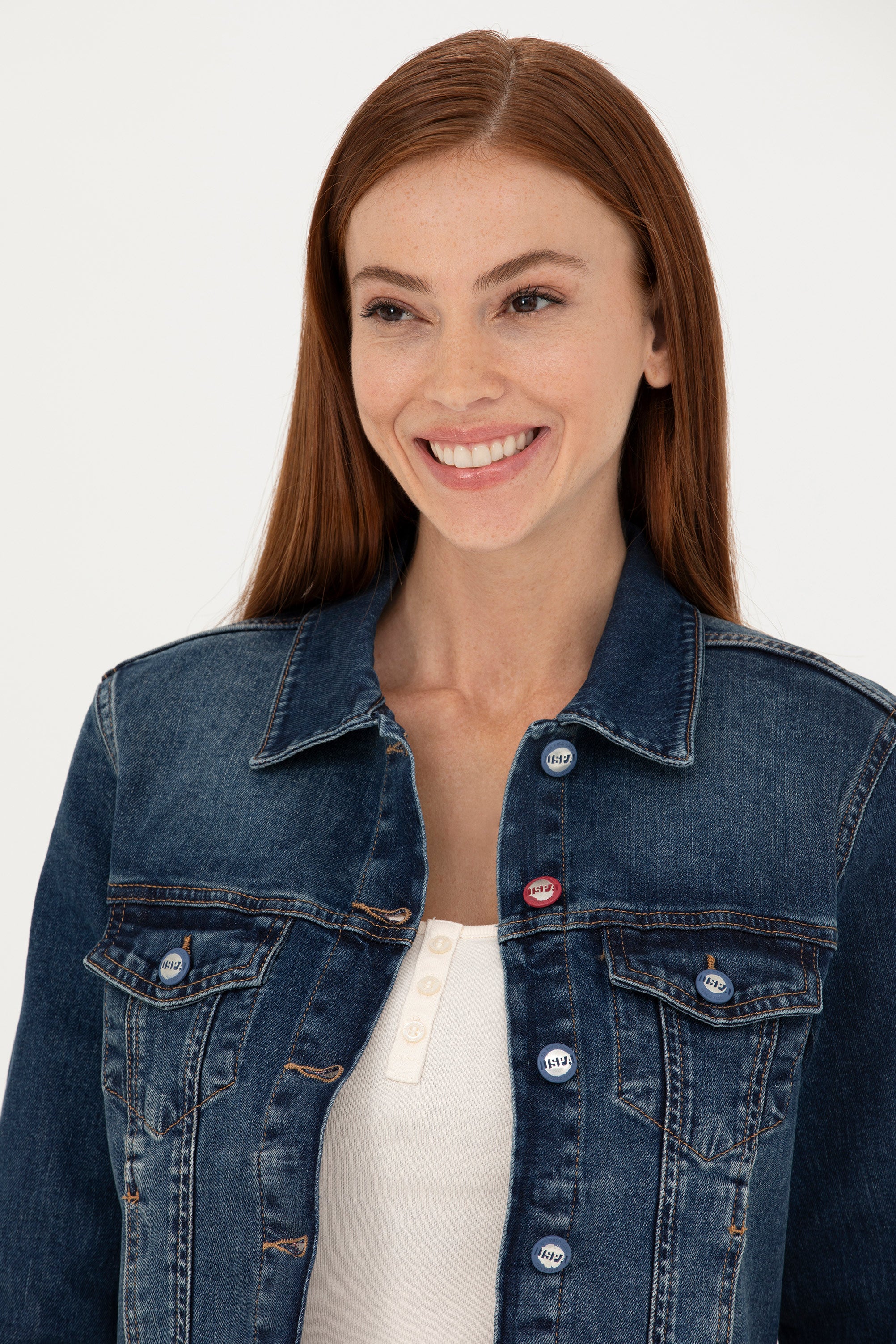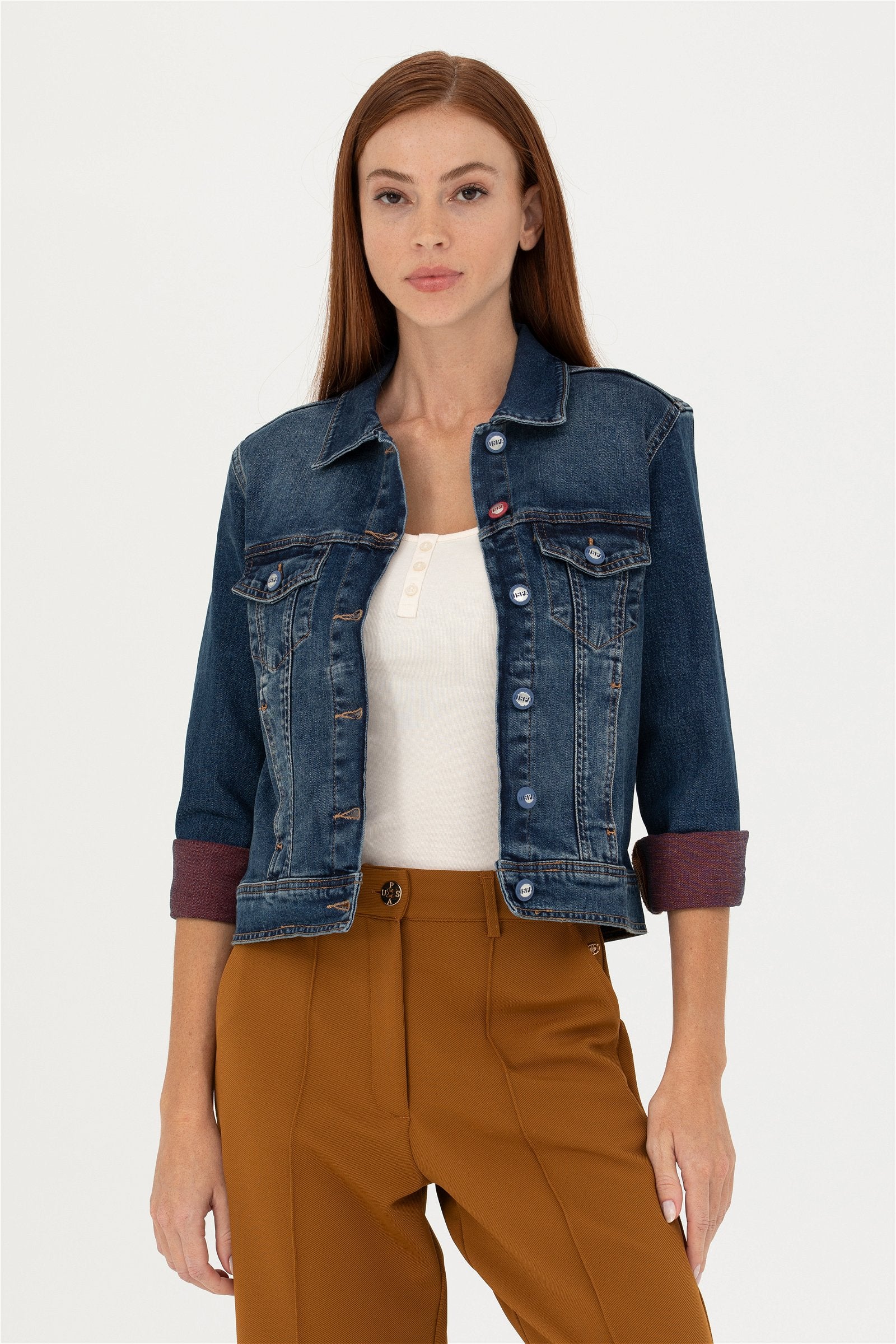 Ova predivna traper jakna u klasičnoj tamnoplavoj boji savršeno se uklapa u svaki stil tokom proljetnih i jesenjih dana. Karakterišu je meki traper materijal koji pruža udobnost i slobodu pokreta. Jakna ima duge rukave sa originalnim detaljima na manžetama koji dodaju jedinstveni šarm. Na prednjoj strani se nalaze upečatljive zakovice i funkcionalne džepove koji daju dodatnu dozu praktičnosti. Ova jakna je idealan komad za svakodnevne kombinacije, bilo da se odlučite za ležeran izgled s majicom i farmerkama, ili elegantniji stil s haljinom i čizmama.