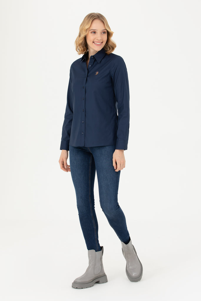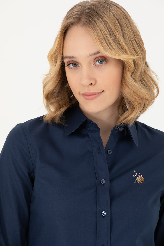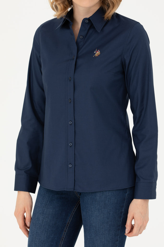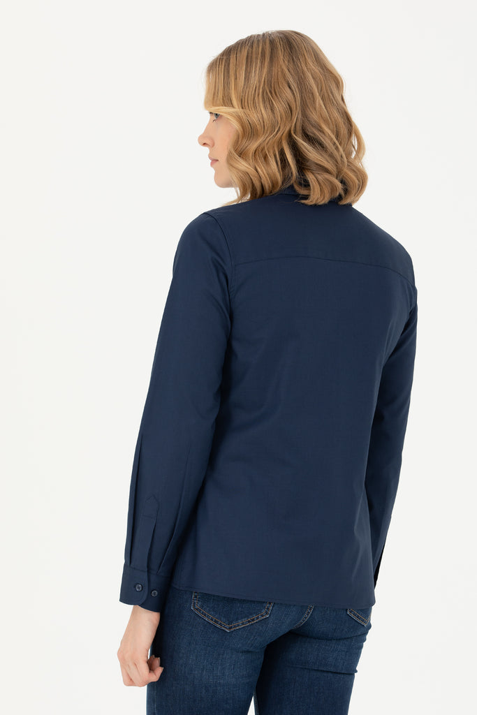 Elegantna košulja u tamnoplavoj boji donosi sofisticiranost i stil svakodnevnim kombinacijama. Karakteriše je kvalitetan materijal koji osigurava udobnost tokom cijelog dana, a klasičan kroj savršeno pristaje raznim tipovima tijela. Na prednjem dijelu košulje nalazi se suptilan ukrasni detalj koji dodaje dašak posebnosti. Ova košulja je idealna za poslovne sastanke ili casual izlaske, te se lako može kombinovati s različitim odjevnim predmetima poput hlača, suknji ili džempera.