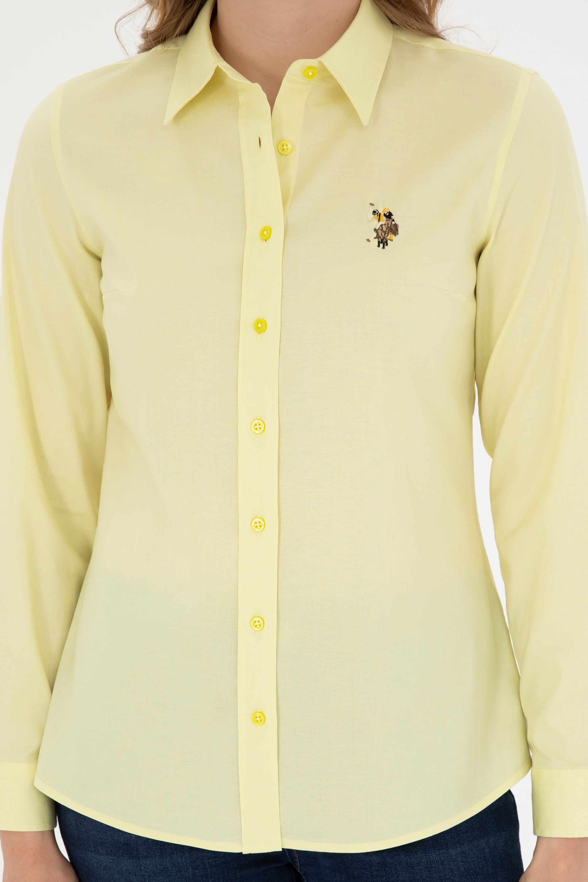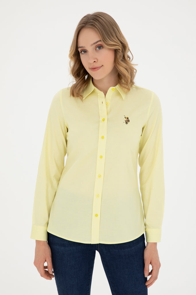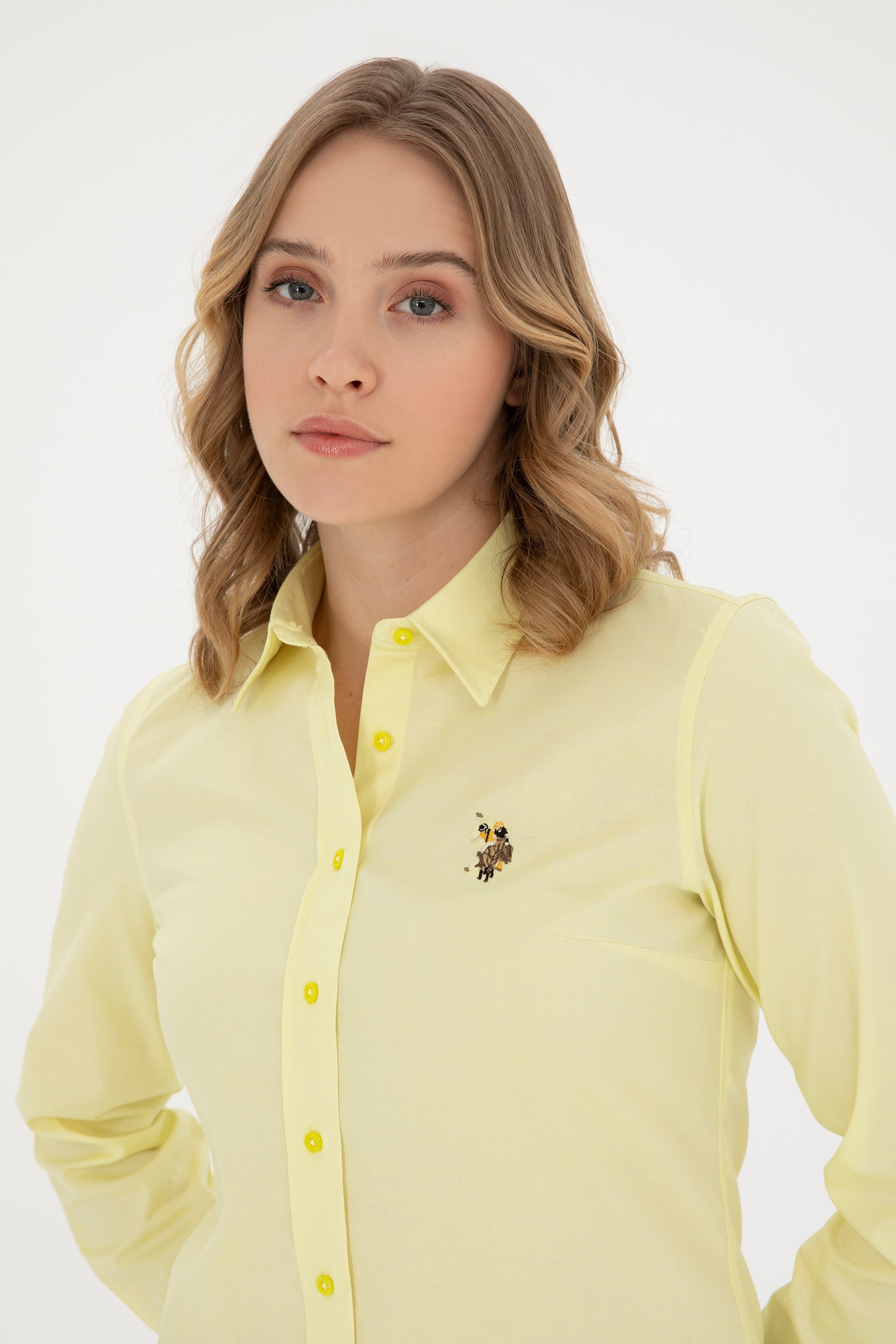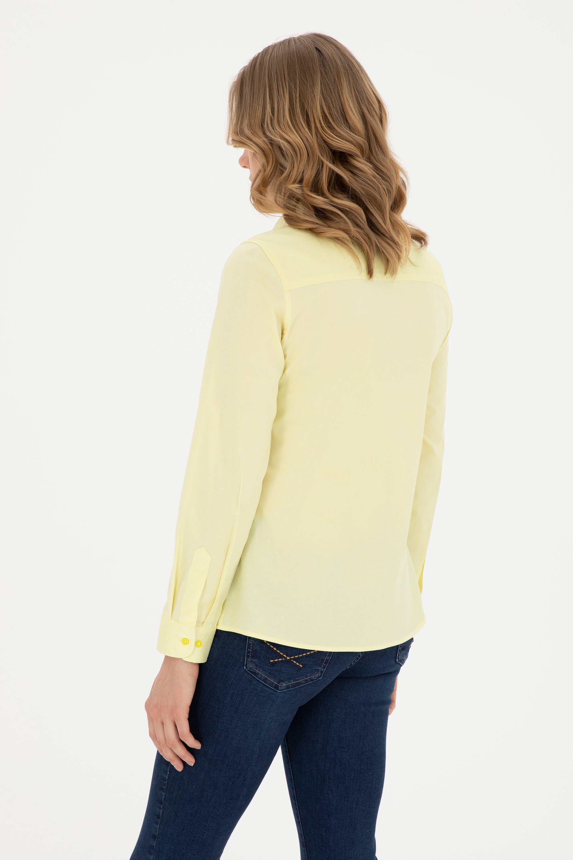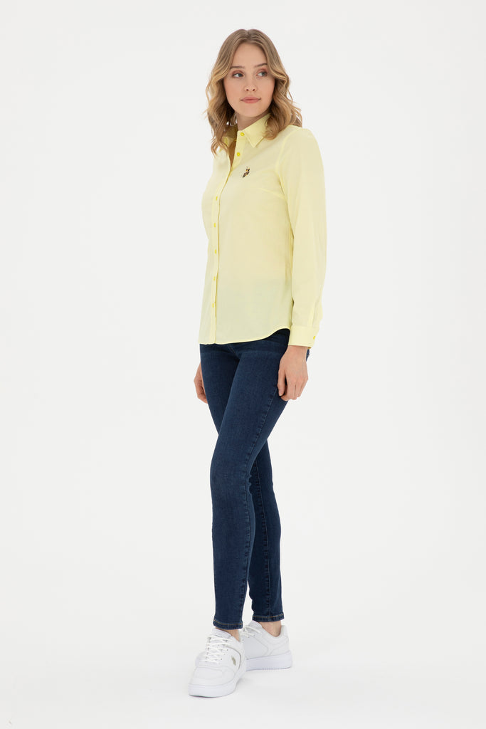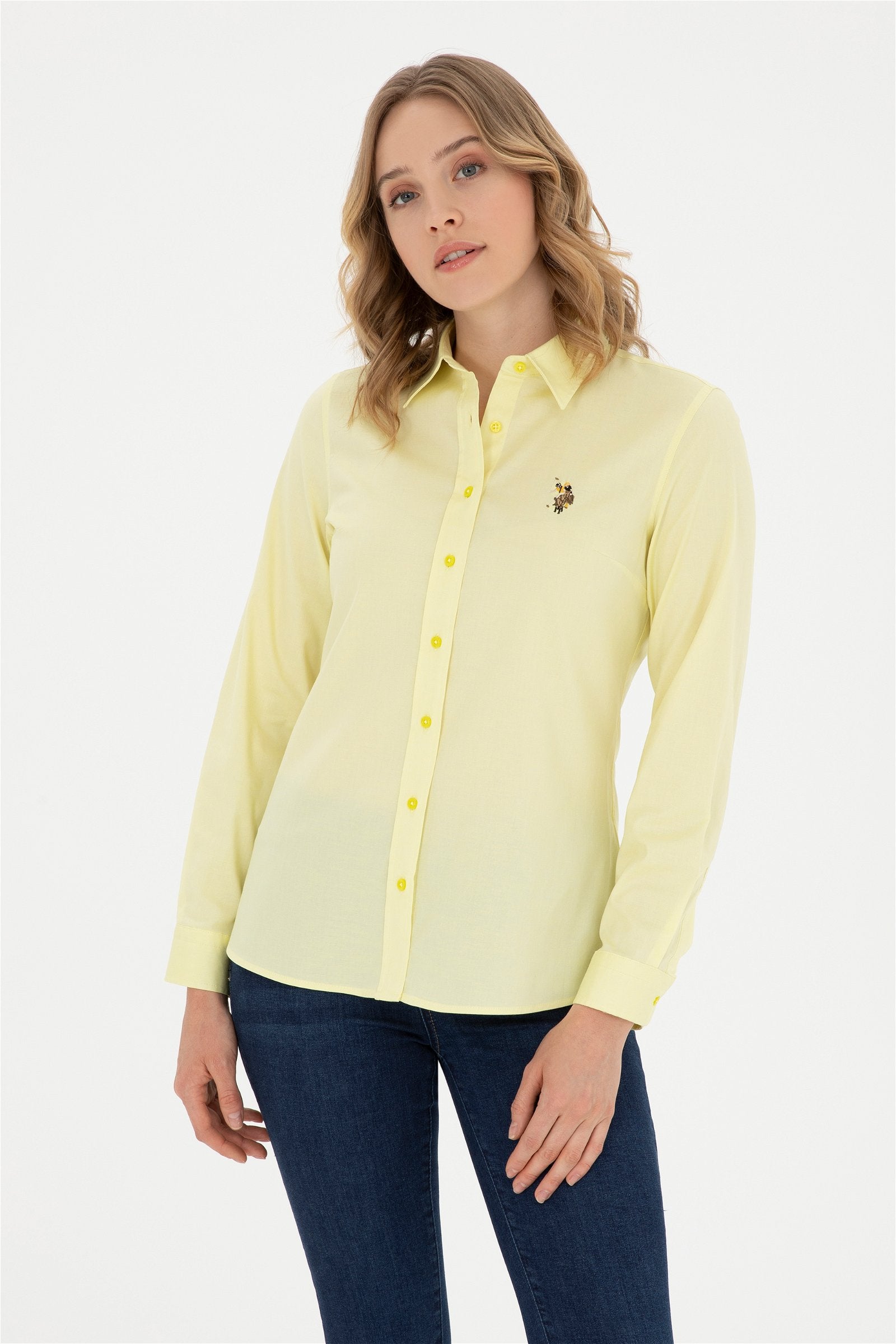 Šarmantna košulja u svijetlo žutoj boji donosi svježinu i vedrinu svakom stilu. Karakteriše je meka, ugodna tkanina koja osigurava udobnost tokom cijelog dana, dok klasičan kroj pruža savršeno pristajanje. Na prednjem dijelu košulje nalazi se diskretan, dekorativni detalj koji dodaje dašak sofisticiranosti. Ova košulja je savršen izbor za casual izlaske ili poslovne prilike, a lako se kombinira s raznim odjevnim predmetima poput traperica, suknji ili jakni.