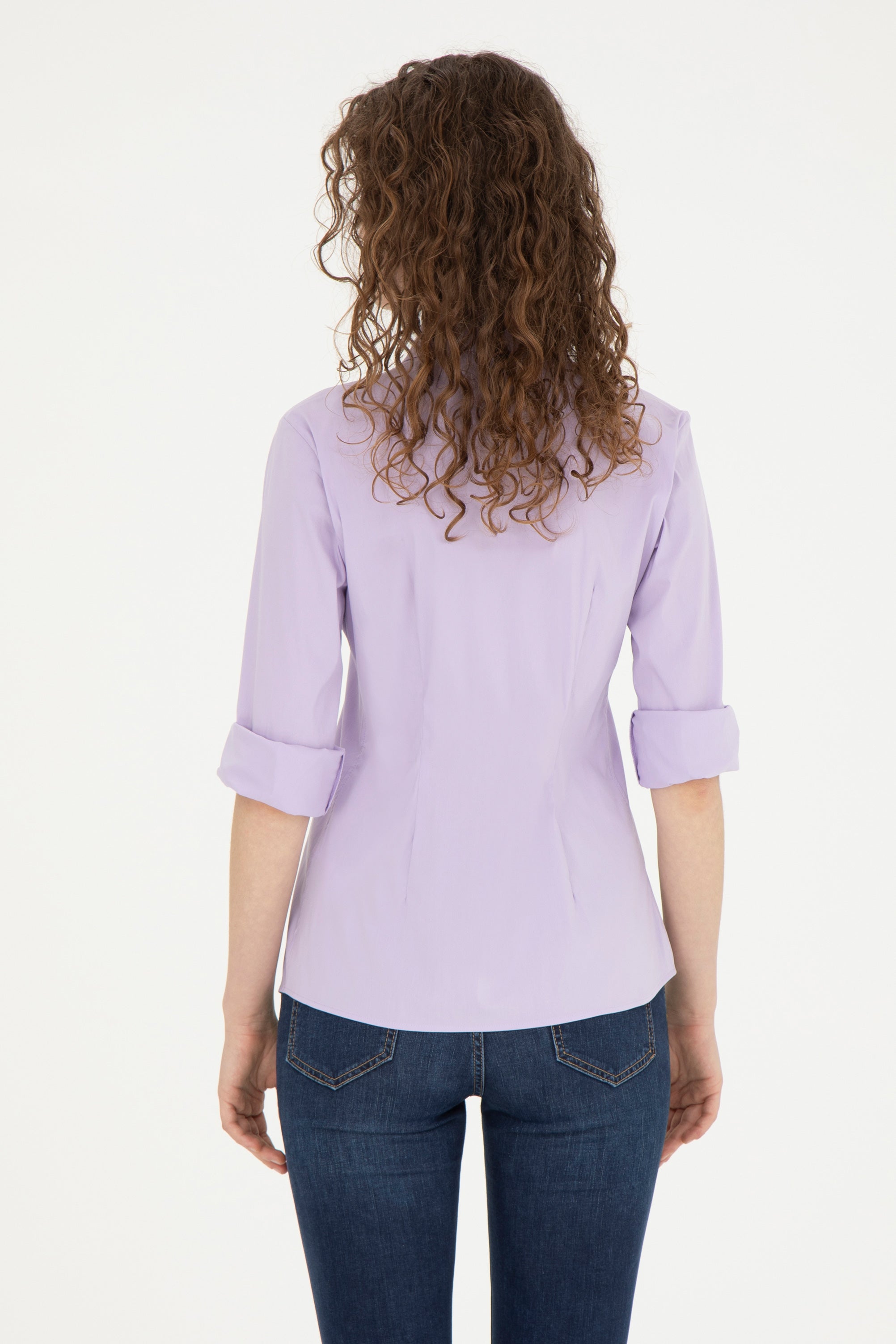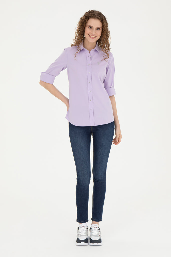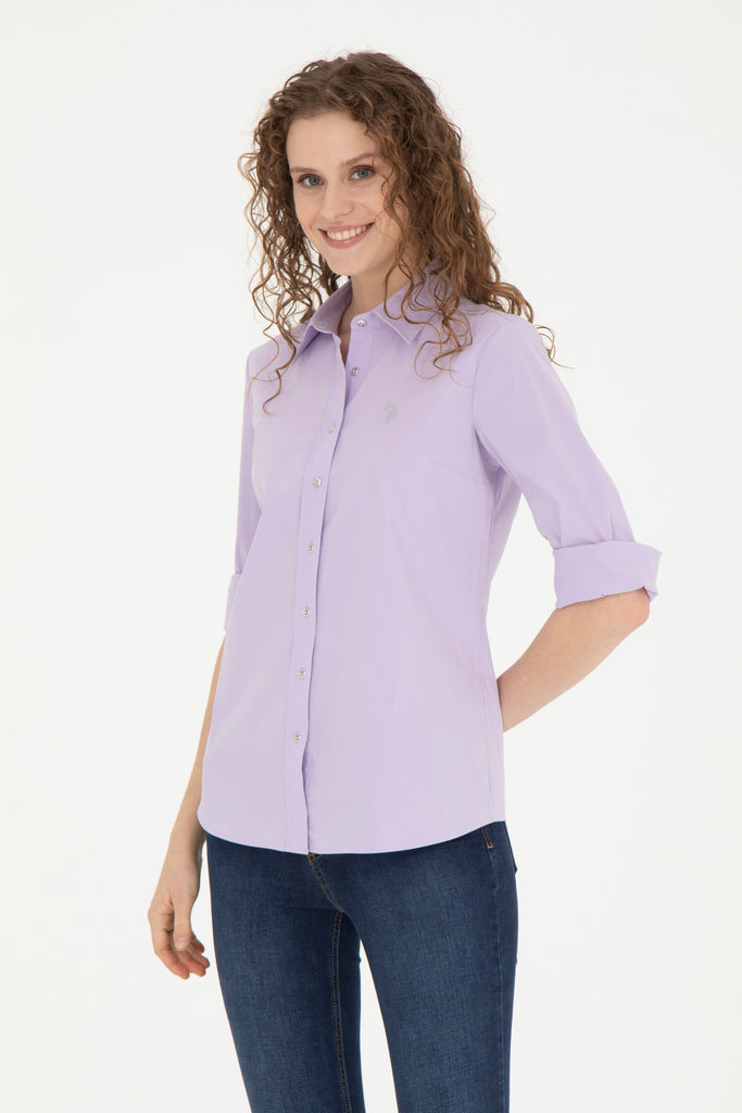 Elegantna košulja u nježnoj ljubičastoj boji donosi dašak sofisticiranosti svakodnevnim kombinacijama. Karakteriše je kvalitetan pamuk koji pruža osjećaj udobnosti i prozračnosti tokom cijelog dana. Dugih rukava s mogućnošću savijanja, ova košulja osigurava prilagodljivost i savršeno pristajanje. Na prednjem dijelu se nalazi suptilan logotip koji dodatno naglašava njen stil. Ova košulja je idealan izbor za poslovne obaveze ili opuštene izlaske, lako se može kombinovati s farmerkama, suknjama ili elegantnim pantalonama.