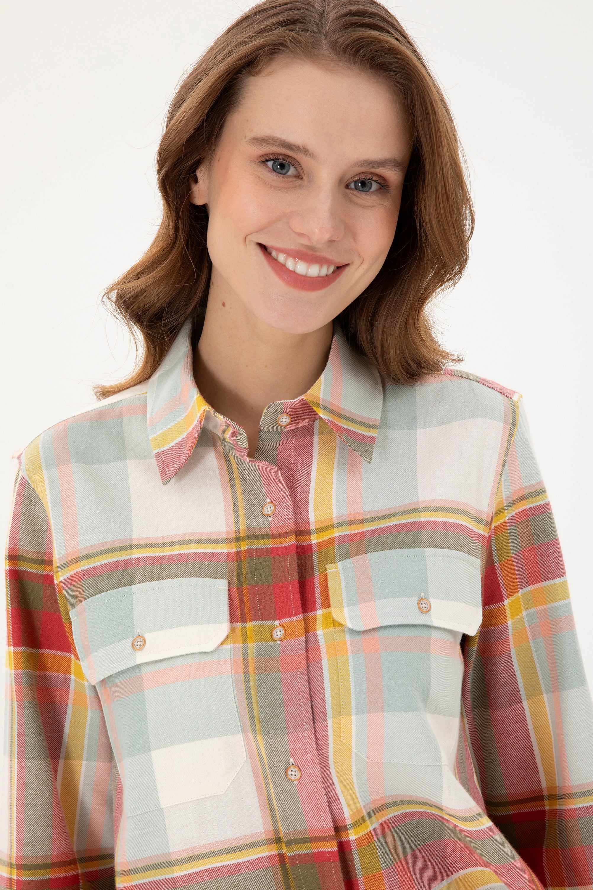 Ova košulja u šarenom kariranom uzorku donosi veseli duh i udobnost svakodnevnom izgledu. Izrađena je od kvalitetnog materijala koji pruža mekoću i laganost tokom nošenja. Karakterišu je klasičan ovratnik i dugmići koji dodaju dašak sofisticiranosti, a dva prednja džepa čine je praktičnom i stylish. Ova košulja se savršeno uklapa u različite kombinacije, bilo da je nosite uz traperice za ležeran izlazak ili sa suknjom za sofisticiraniji look. Idealna je za proljetne i jesenske dane kada želite izgledati moderno i osjećati se udobno.