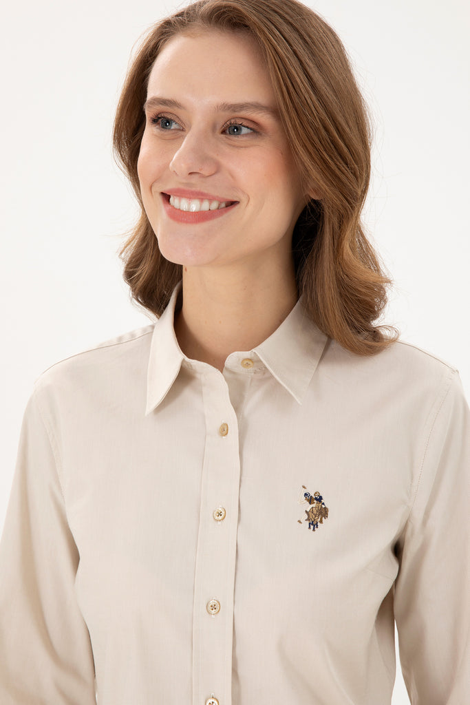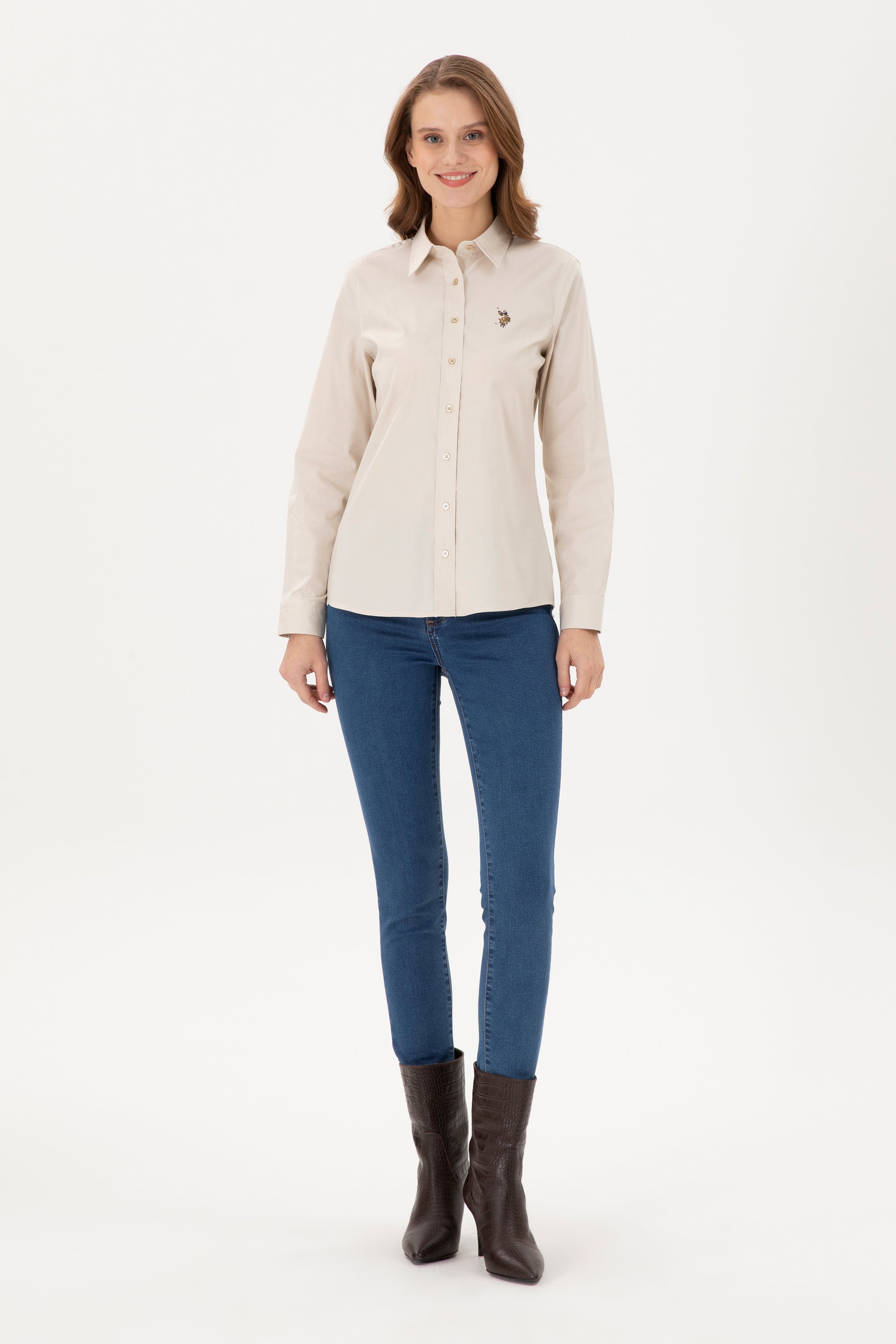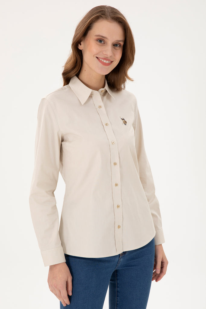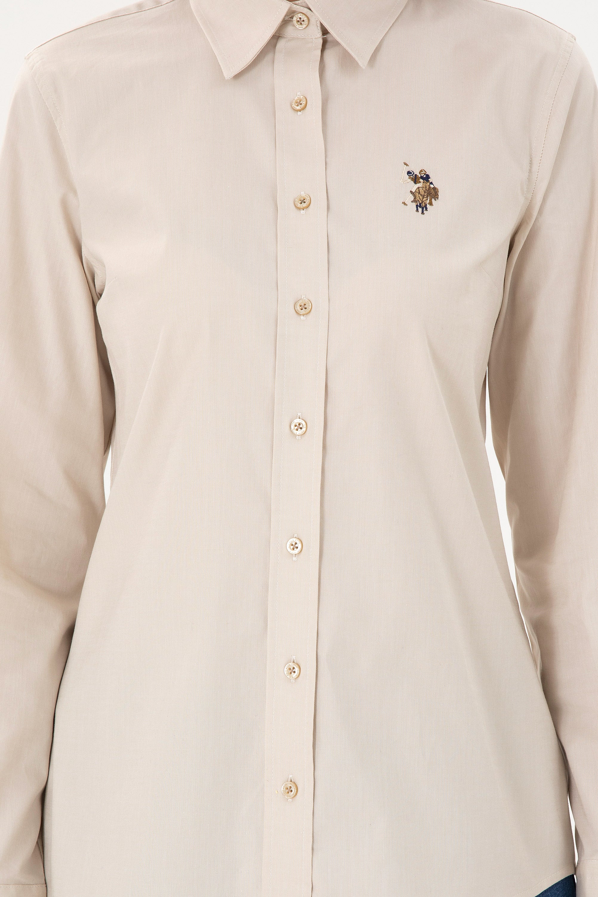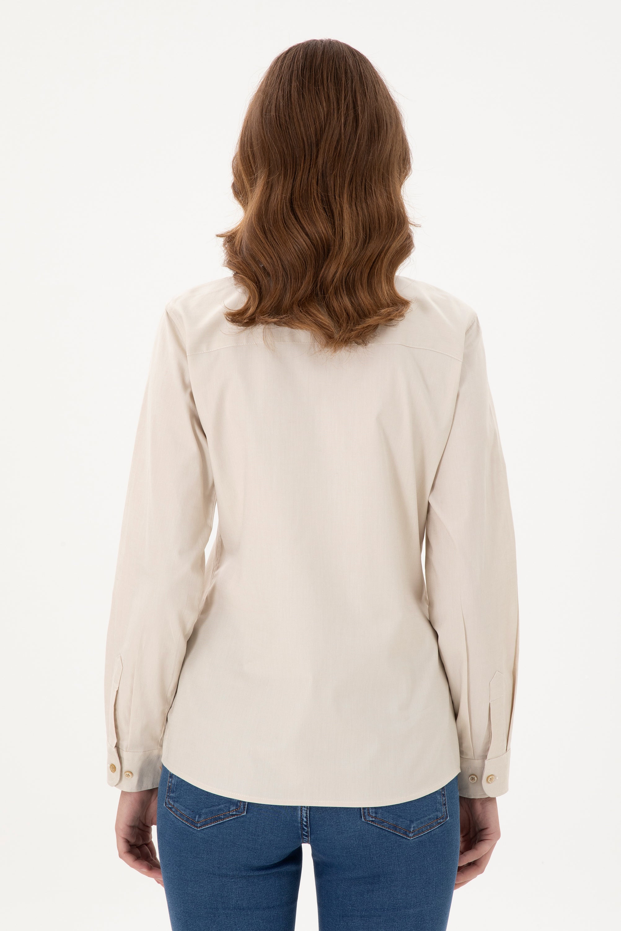Elegantna košulja u svijetloj bež boji donosi dašak sofisticiranosti i udobnosti u svakoj prilici. Karakteriše je kvalitetan materijal koji pruža prijatan osjećaj na koži i osigurava dobru prozračnost. Na prednjem dijelu košulje nalazi se diskretan, ukrasni detalj koji naglašava njen moderan dizajn. Ova košulja je savršena za poslovne sastanke ili ležerne izlaske, a lako se može kombinovati s različitim komadima odjeće poput hlača, suknji ili džinsa, čineći je svestranom u različitim stilovima.