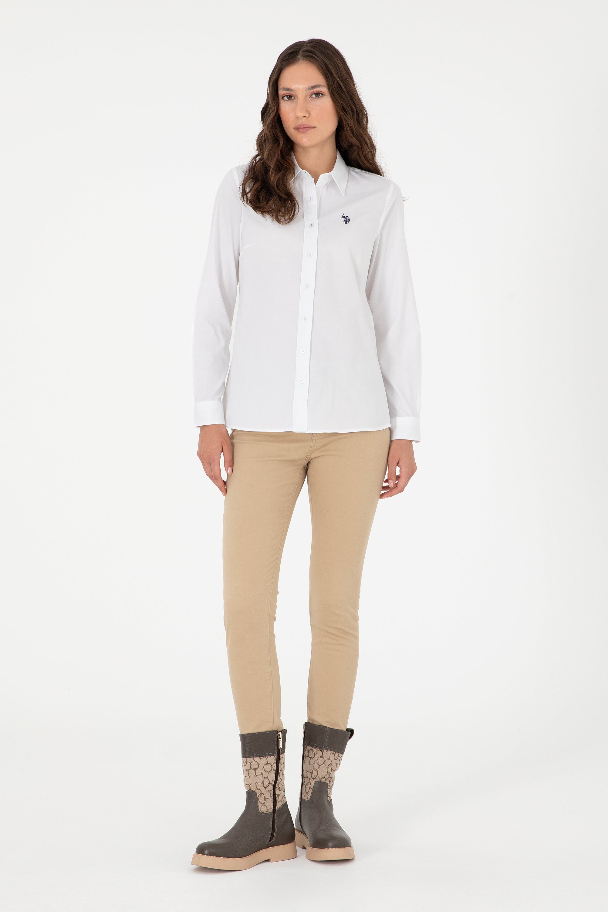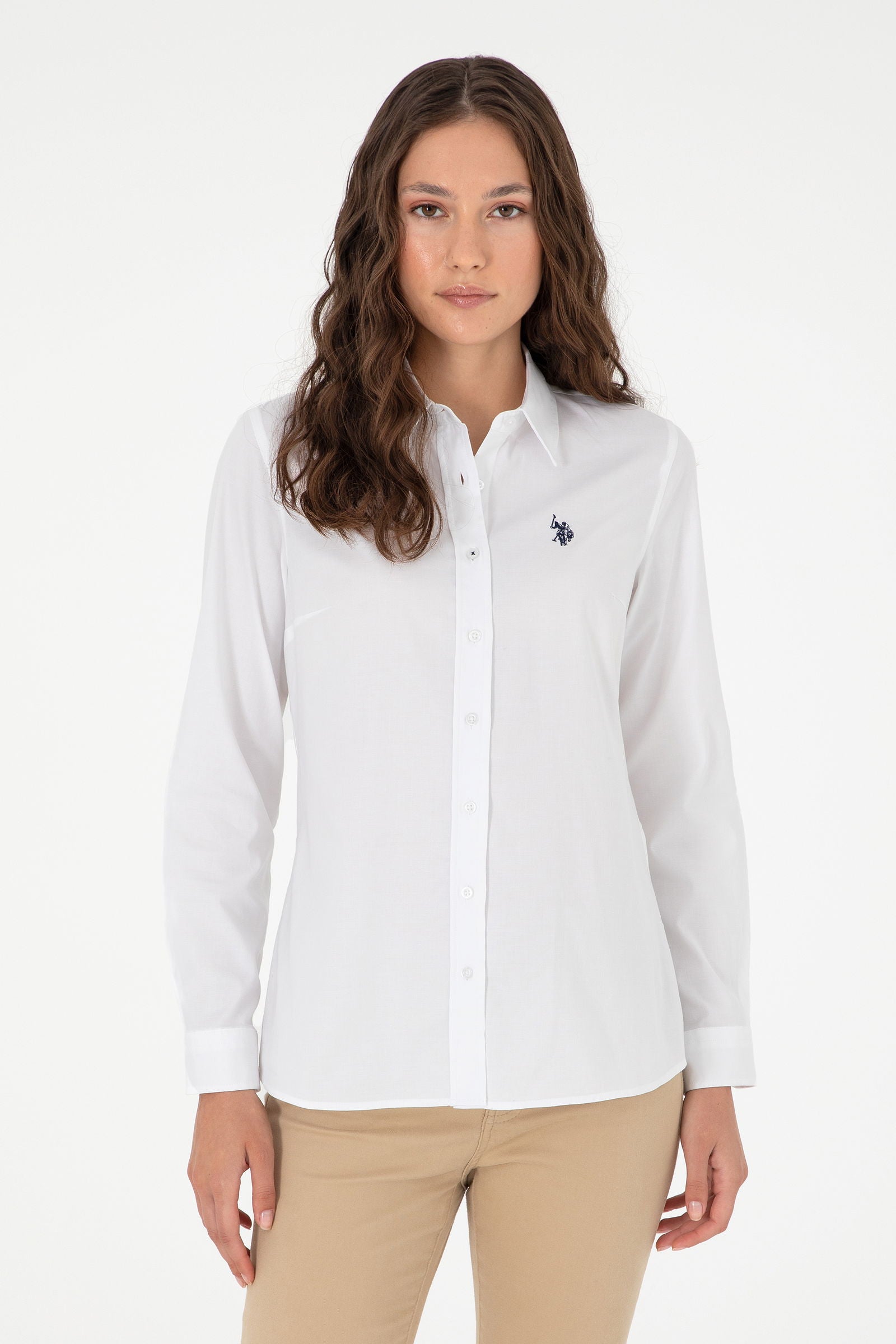 Elegantna bijela košulja od kvalitetnog materijala pruža savršen spoj udobnosti i stila za svaku priliku. Karakteriše je klasičan kroj s dugim rukavima i elegantnim okovratnikom, što joj daje sofisticiran izgled. Na prednjem dijelu košulje nalazi se diskretna veza koja dodaje poseban šarm. Ova košulja je idealna za poslovne sastanke, ali i za ležerne izlazke, a može se kombinovati sa različitim donjim dijelovima, poput klasičnih hlača ili suknji, čineći je svestranim komadom u svakoj garderobi.