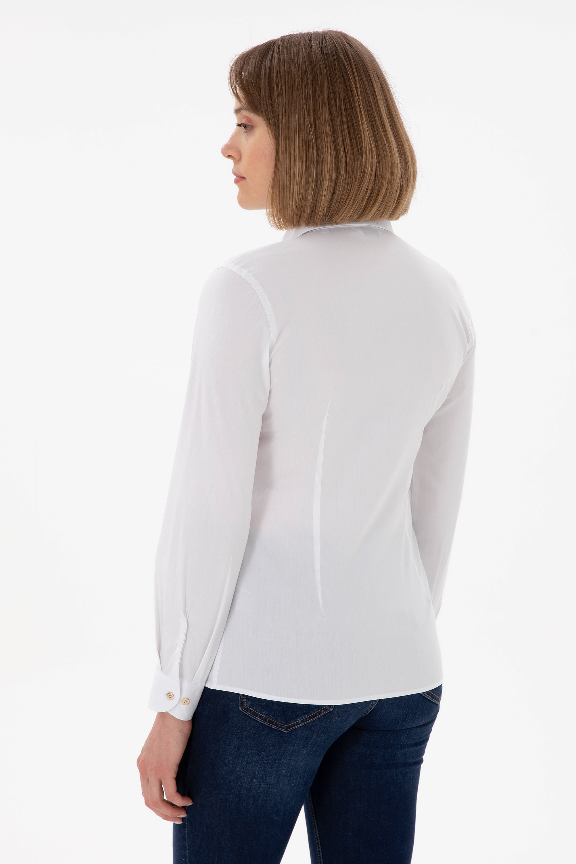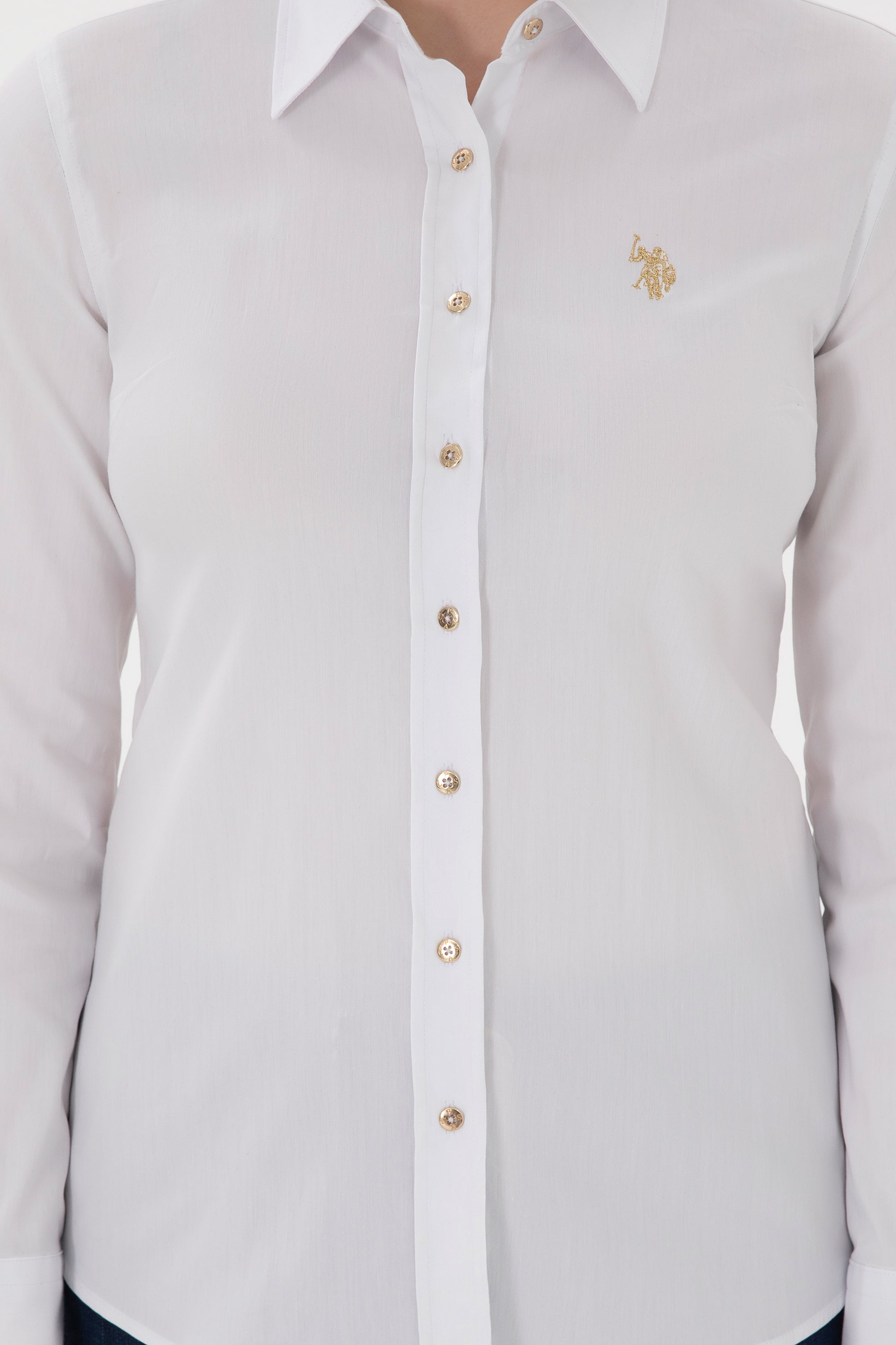 Elegantna bijela majica sa dugim rukavima donosi sofisticiranost i udobnost u svakoj prilici. Izrađena je od laganog i prozračnog materijala koji pruža savršenu kombinaciju stila i komfora. Karakteriše je klasičan kroj sa praktičnim dugmima te diskretnim, ali prepoznatljivim logom na prednjem dijelu. Ova majica se lako može kombinovati s raznim odjevnim predmetima, bilo da je riječ o trapericama, suknjama ili elegantnim hlačama, što je čini savršenim izborom za radne obaveze ili večernje izlaske. Njezina svestranost omogućava da se nosi tokom cijele godine, čineći je nezaobilaznim komadom u svakom garderoberu.
