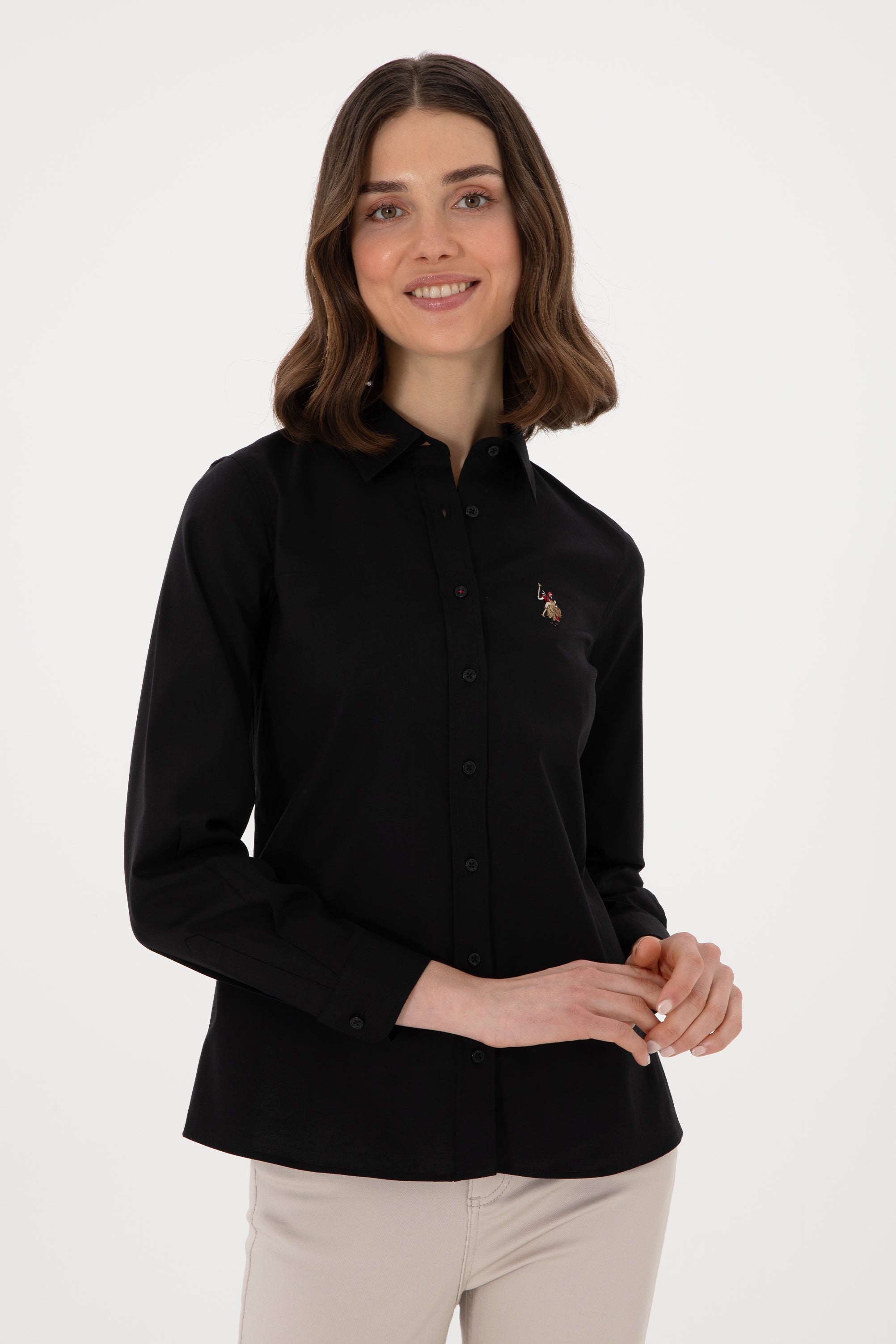 Ženska Crna Košulja Dugih Rukava