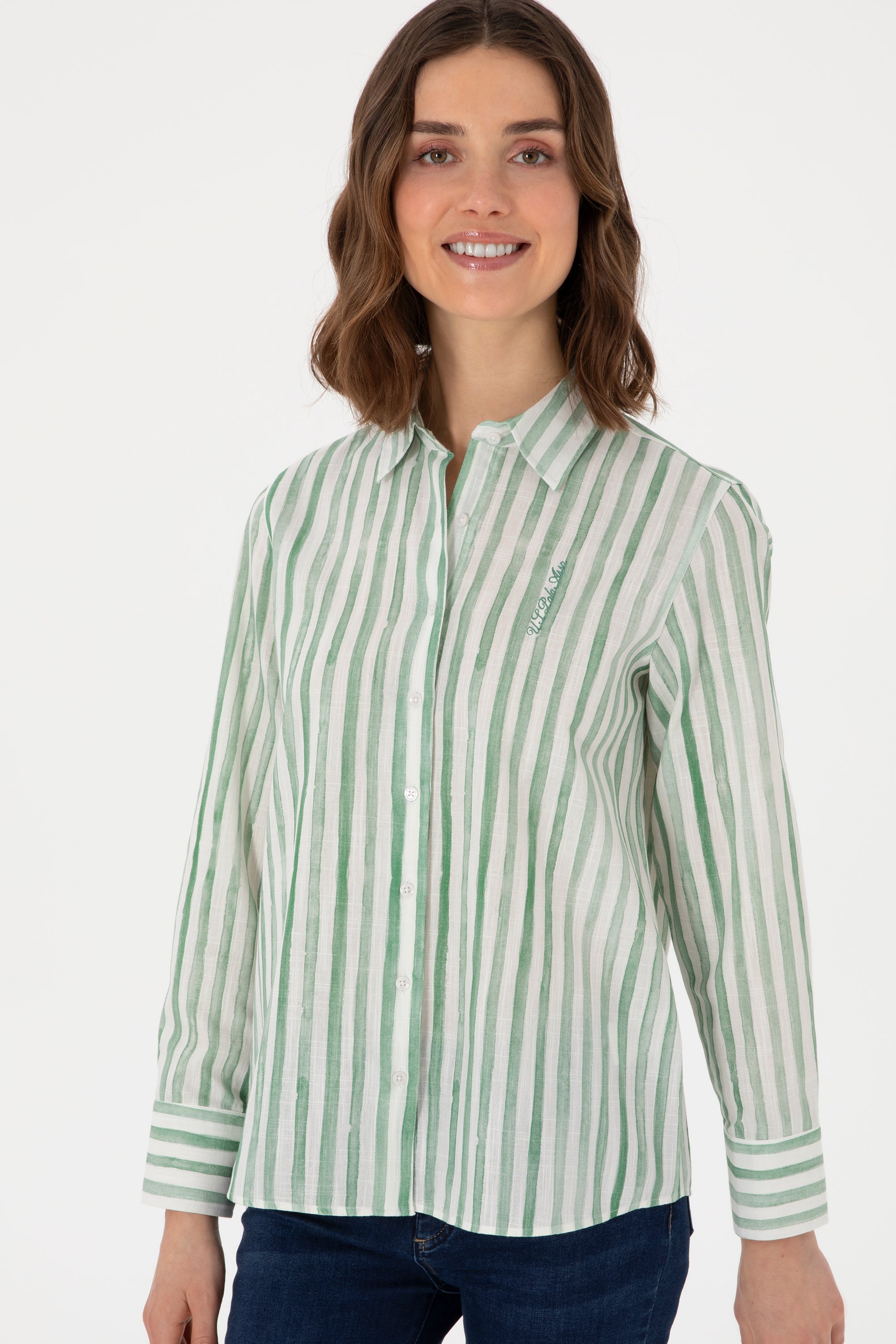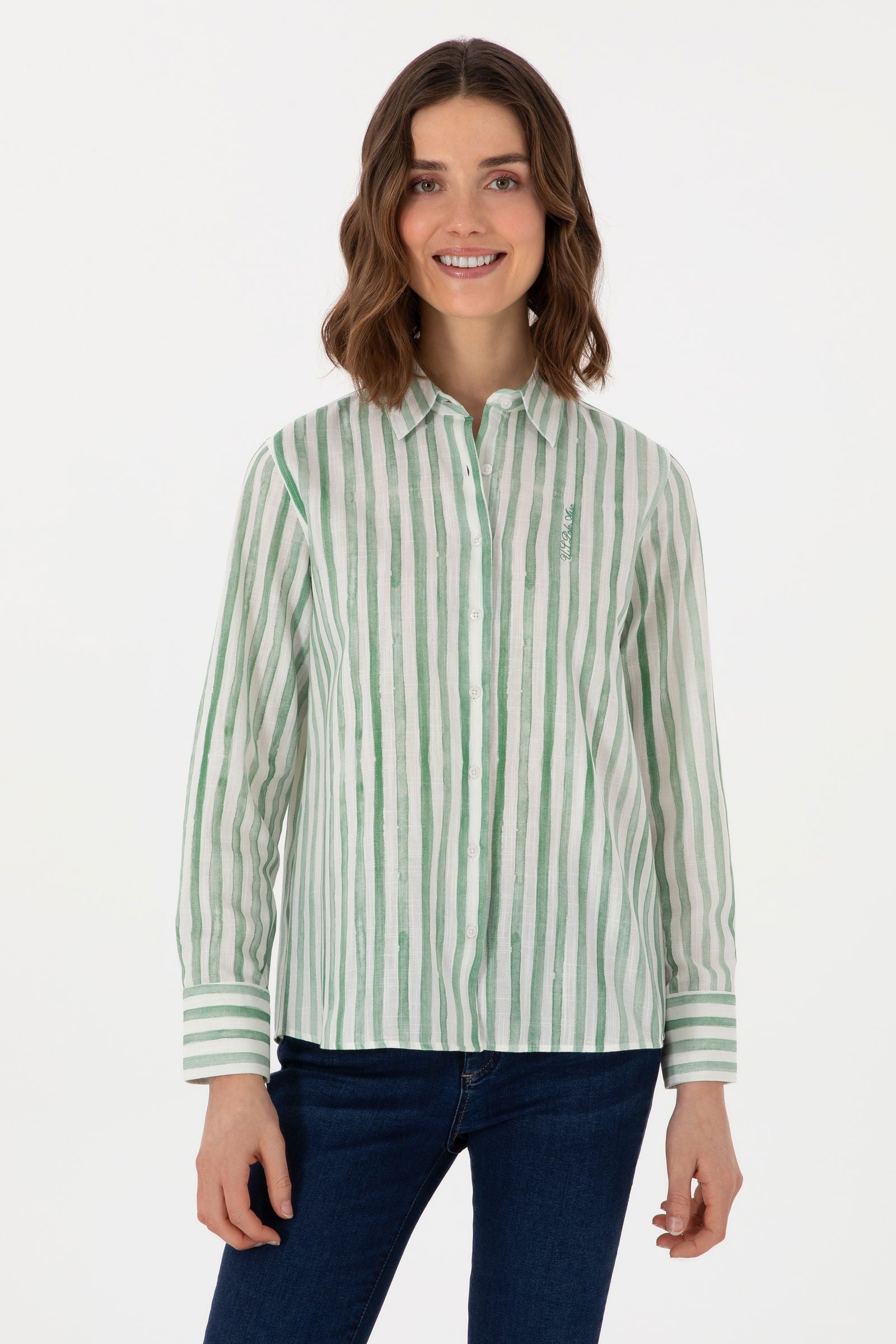 Ženska Zelena Košulja Dugih Rukava