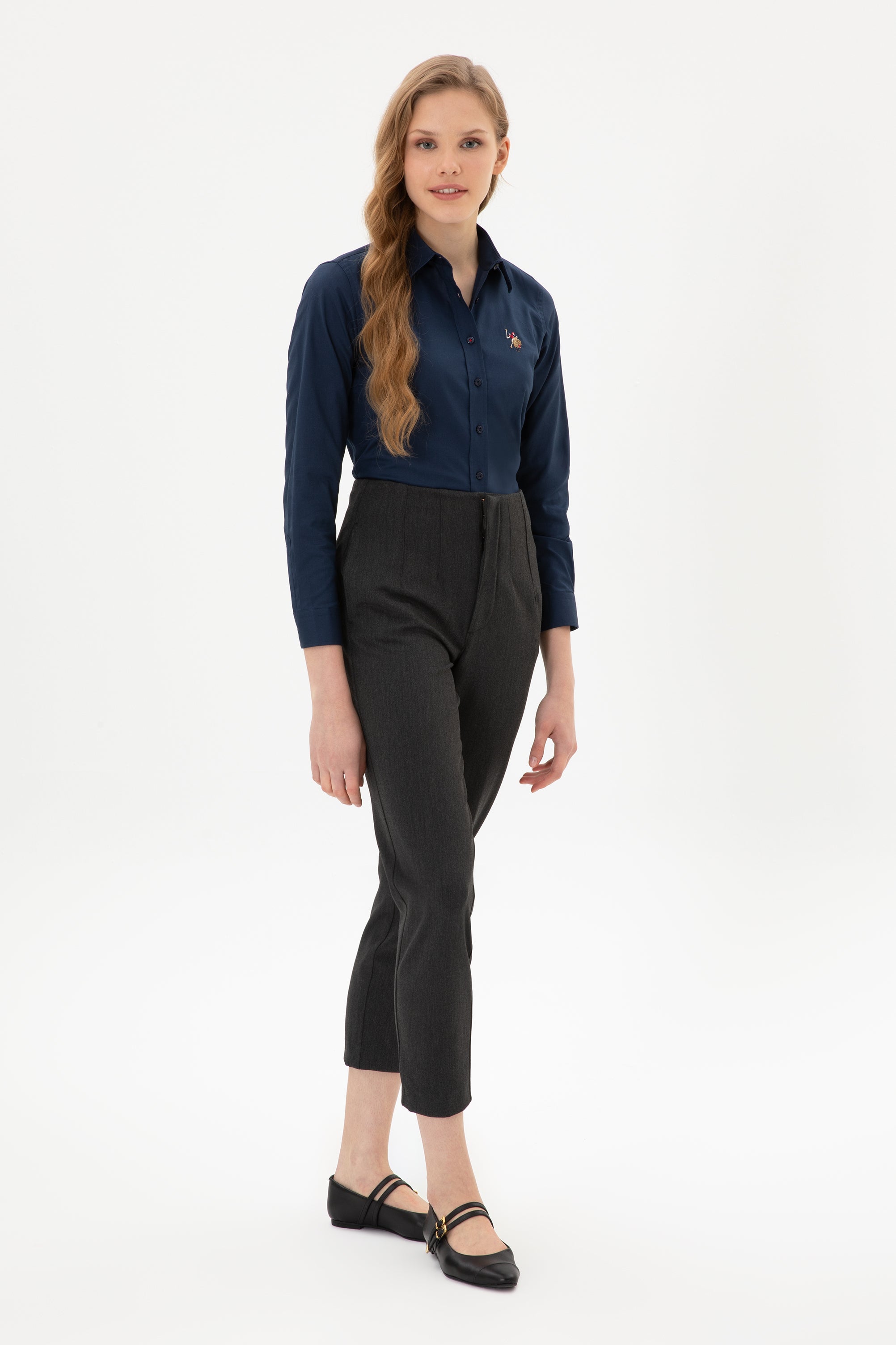 Ženska Teget Plava Košulja Dugih Rukava