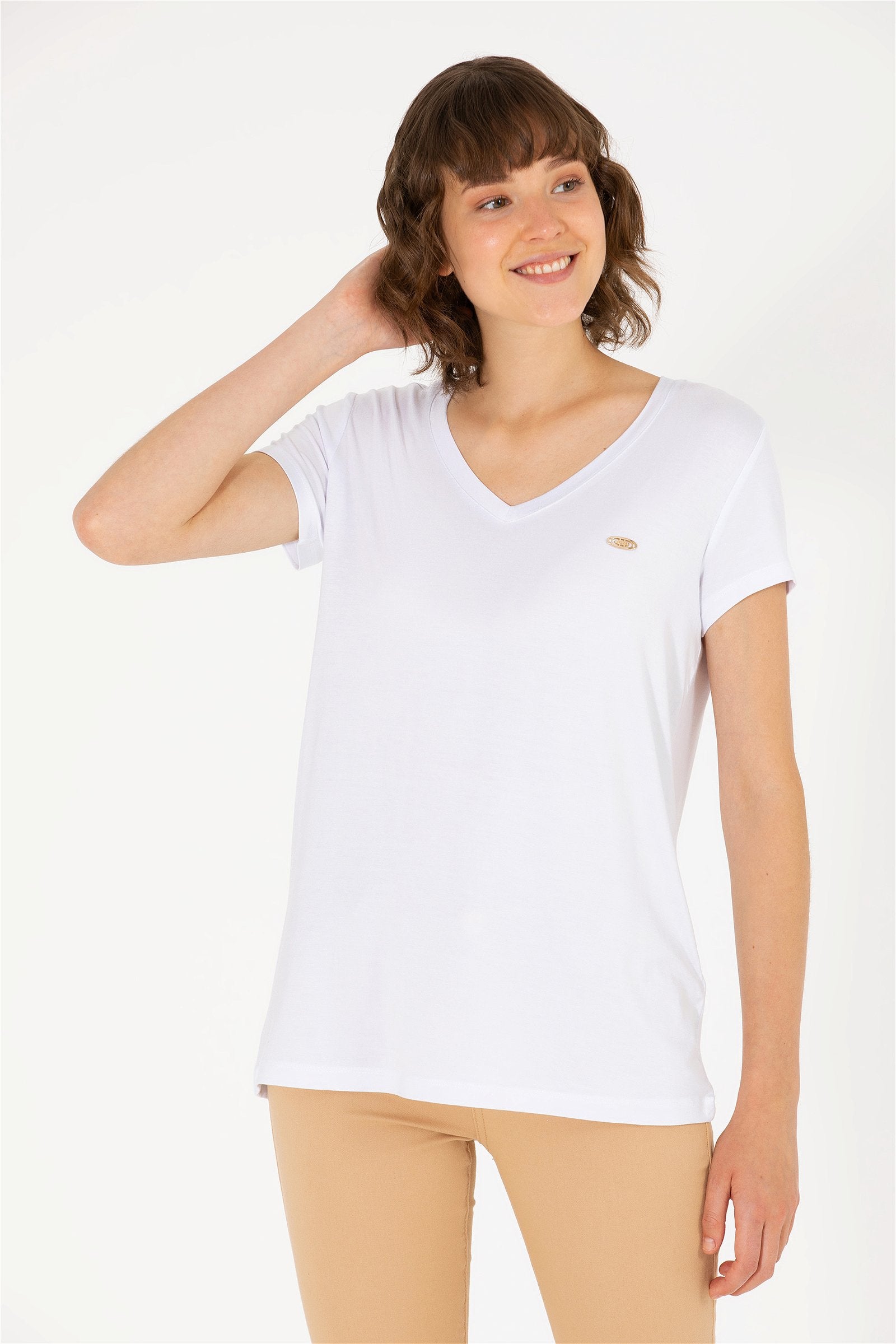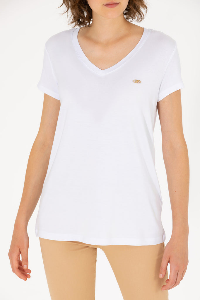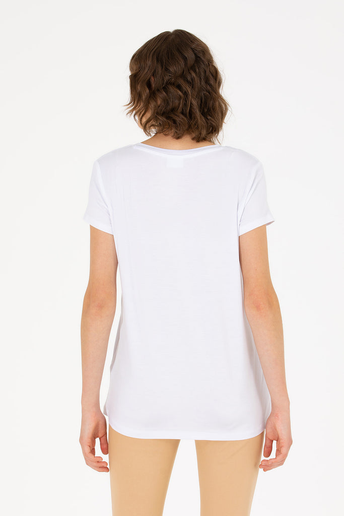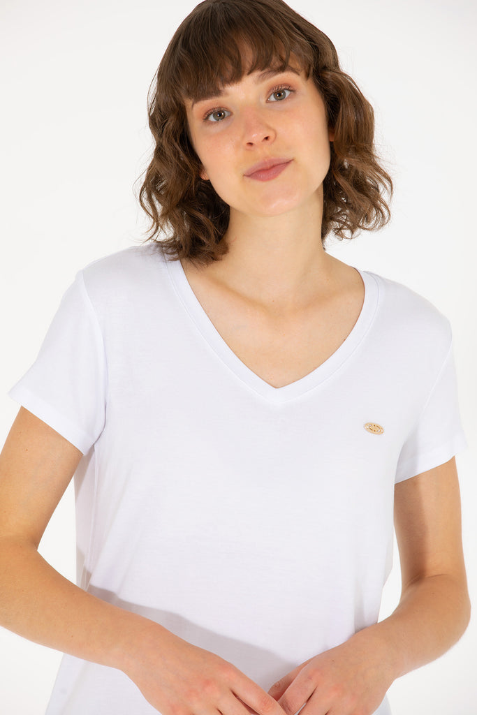 Elegantna majica u klasičnoj bijeloj boji nudi udobnost i svestranost za svaku priliku. Karakteriše je mekani pamuk koji osigurava prijatan osvježavajući osjećaj tokom cijelog dana. Ova majica ima V-izrez koji dodaje notu sofisticiranosti, dok kratki rukavi pružaju savršenu ravnotežu između ležernog i elegantnog izgleda. Idealna je za kombinovanje sa raznim donjim dijelovima, poput traperica ili suknji, čineći je savršenim izborom za svakodnevne aktivnosti ili večernje izlaske. Ovaj jednostavan, ali chic komad odjeće lako će postati neizostavni dio vaše garderobe.