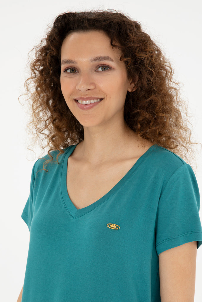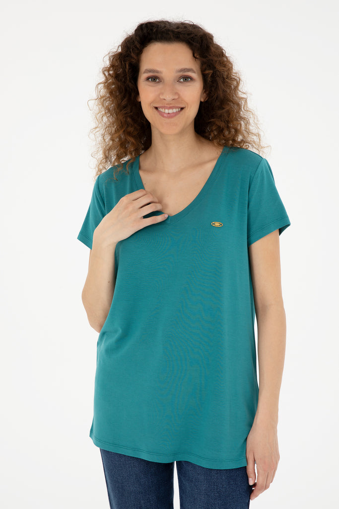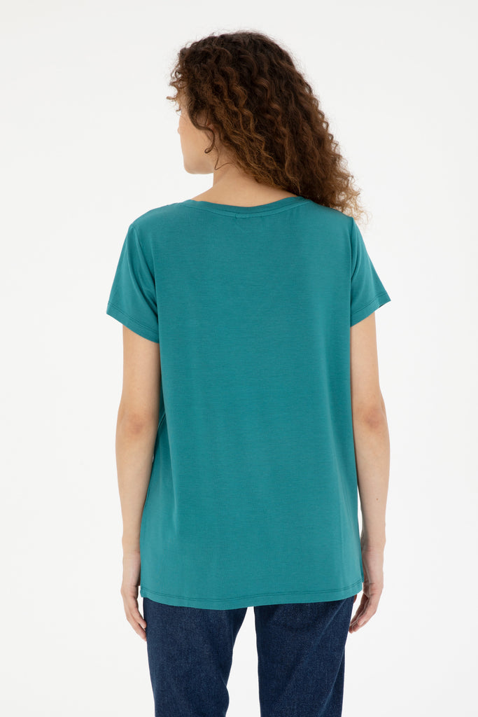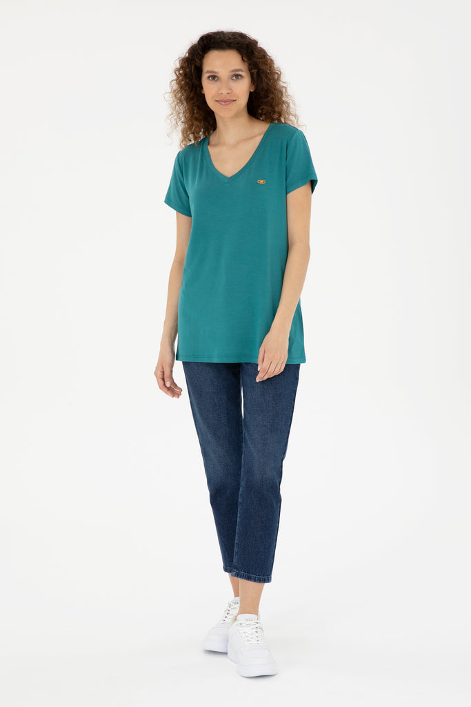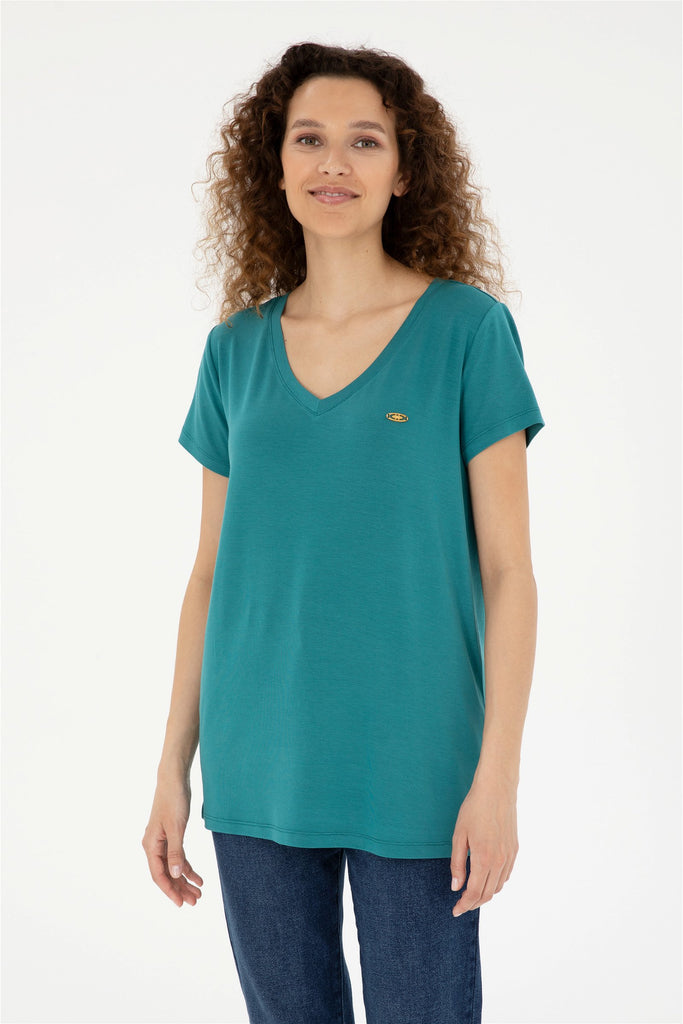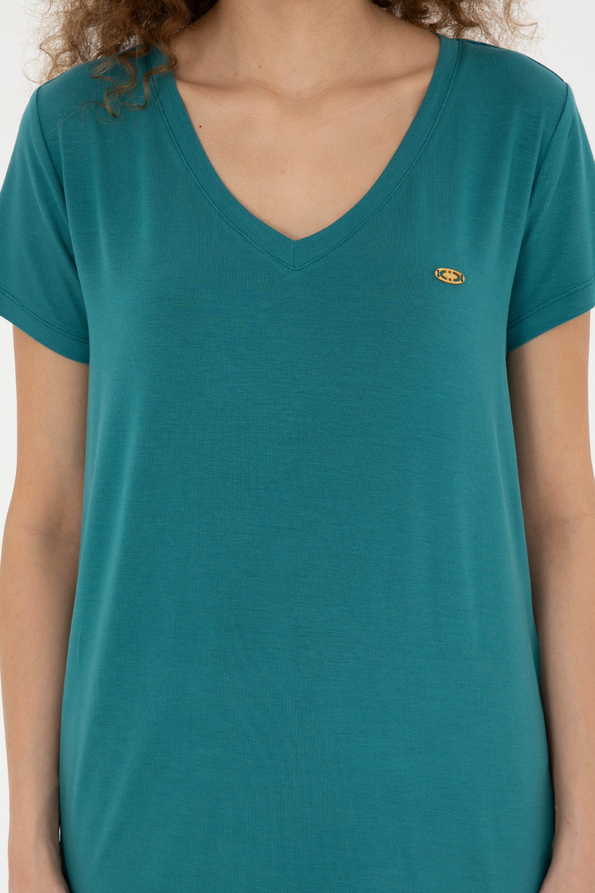 Ova elegantna majica u prekrasnoj tirkiznoj boji predstavlja idealan komad za svaki dan, pružajući udobnost i stil. Karakteriše je jednostavan dizajn sa V-izrezom koji ističe liniju vrata, dok mekani materijal osigurava prijatno nošenje tokom cijelog dana. Na prednjem dijelu majice nalazi se suptilan detalj koji dodaje poseban šarm. Ova majica savršena je za kombinovanje s farmerkama, trenerkama ili elegantnijim hlačama, čineći je svestranim izborom za različite prilike, bilo da se radi o ležernom izlasku ili opuštenom danu kod kuće.
