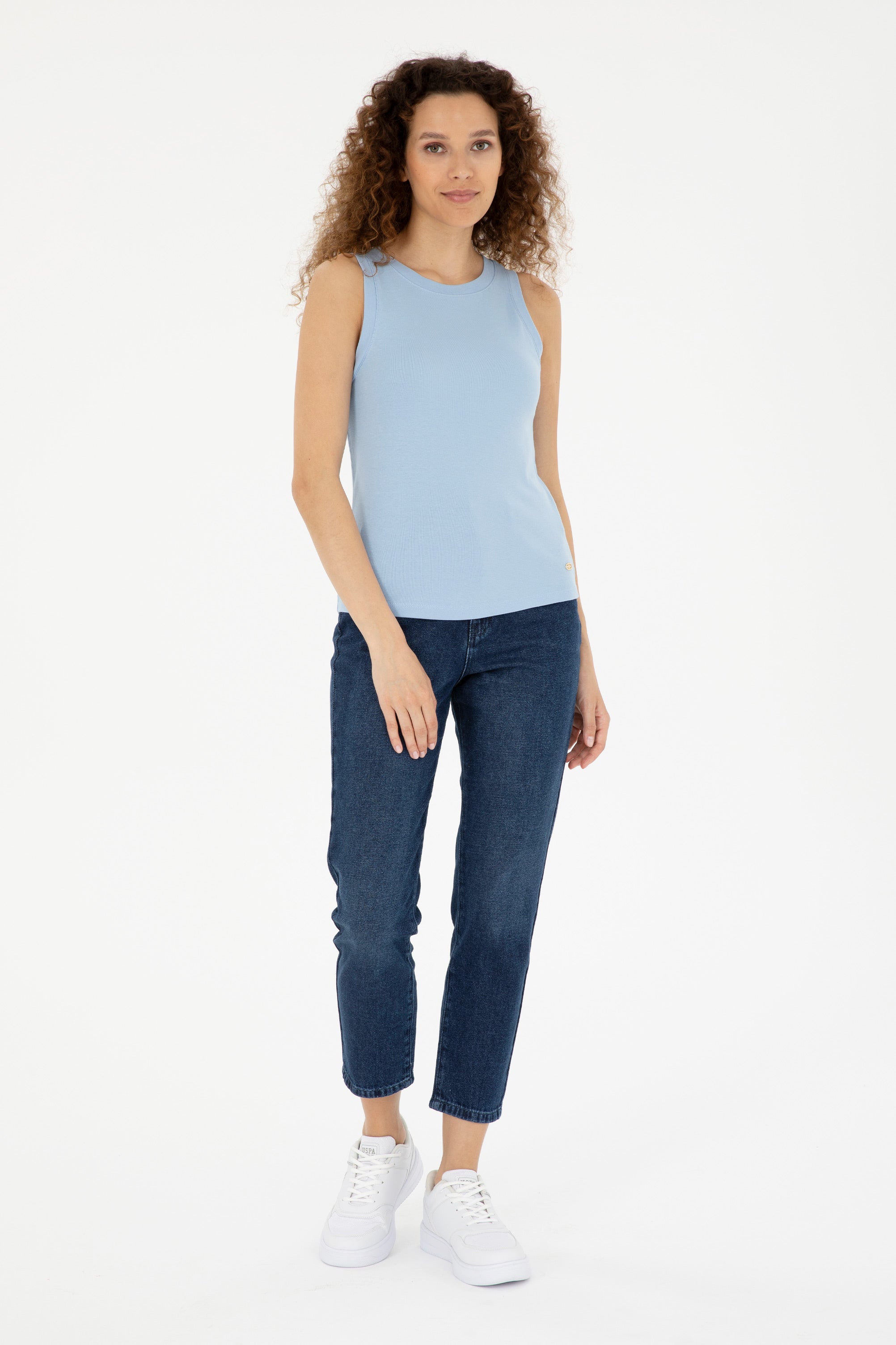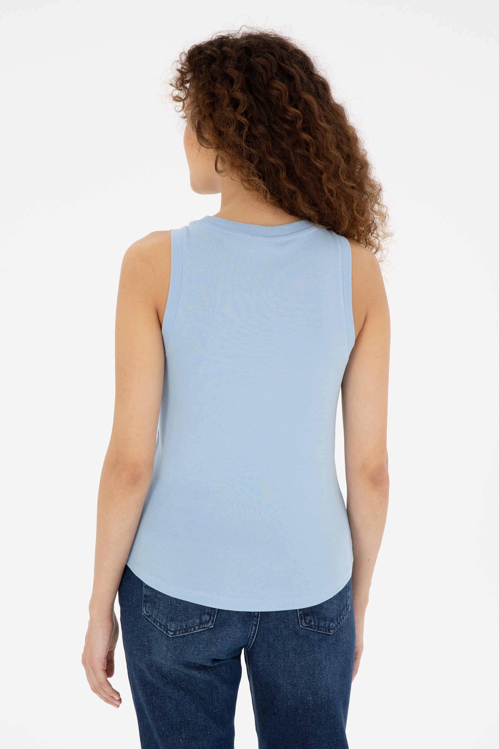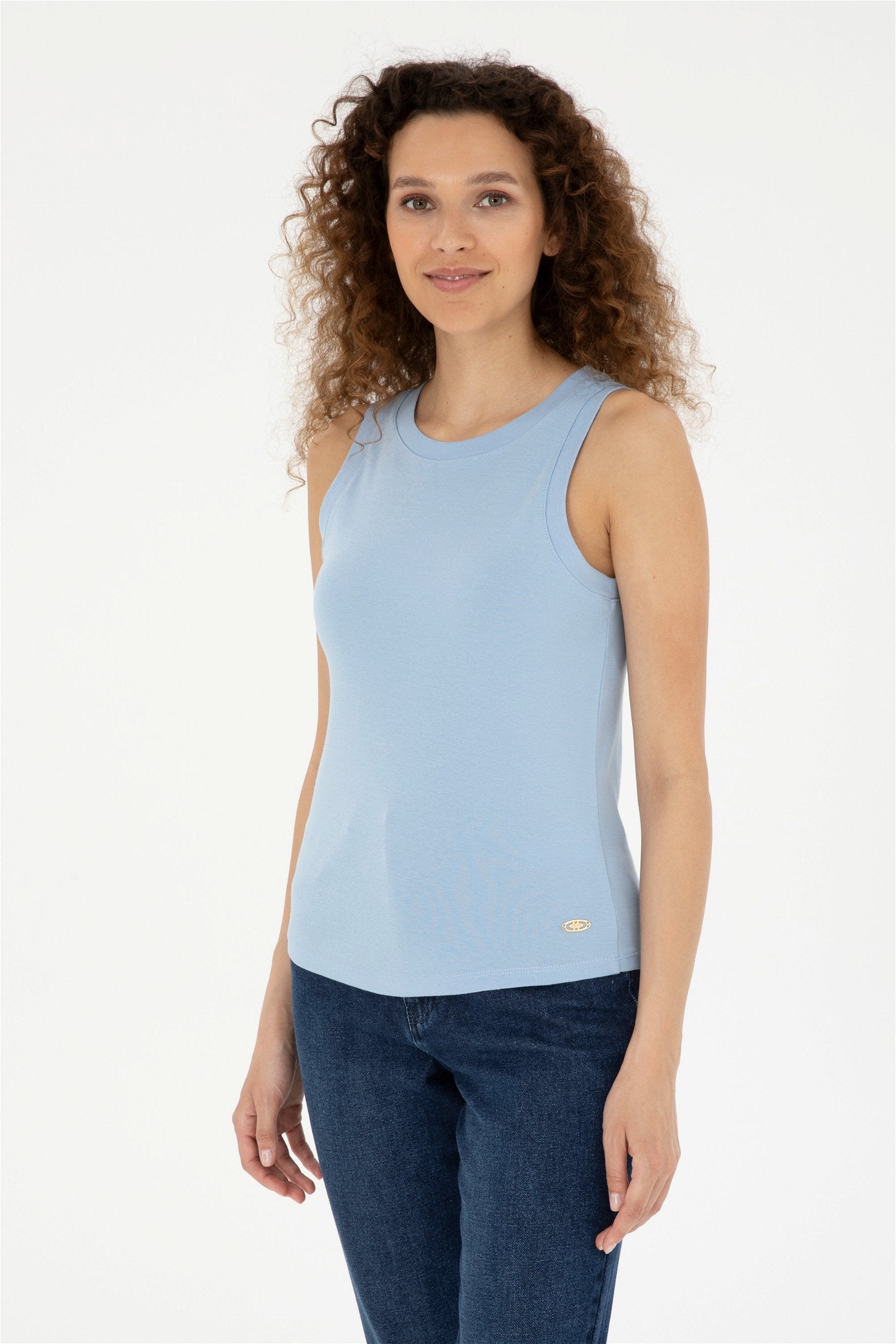 Ova elegantska majica bez rukava u svijetloplavoj boji donosi osvježavajući izgled i udobnost za svaki dan. Izrađena je od mekanog materijala koji omogućava prozračnost i udobno nošenje tokom toplijih dana. Majicu odlikuje jednostavan kroj koji pruža savršeno pristajanje, dok diskretan logo na donjem dijelu dodaje fine detalje. Ova majica je idealna za ljetne kombinacije, bilo da se radi o ležernom izlasku ili opuštenoj šetnji, a lako se može kombinovati s farmerkama, šortsevima ili suknjama, čineći je svestranim komadom u vašem garderoberu.