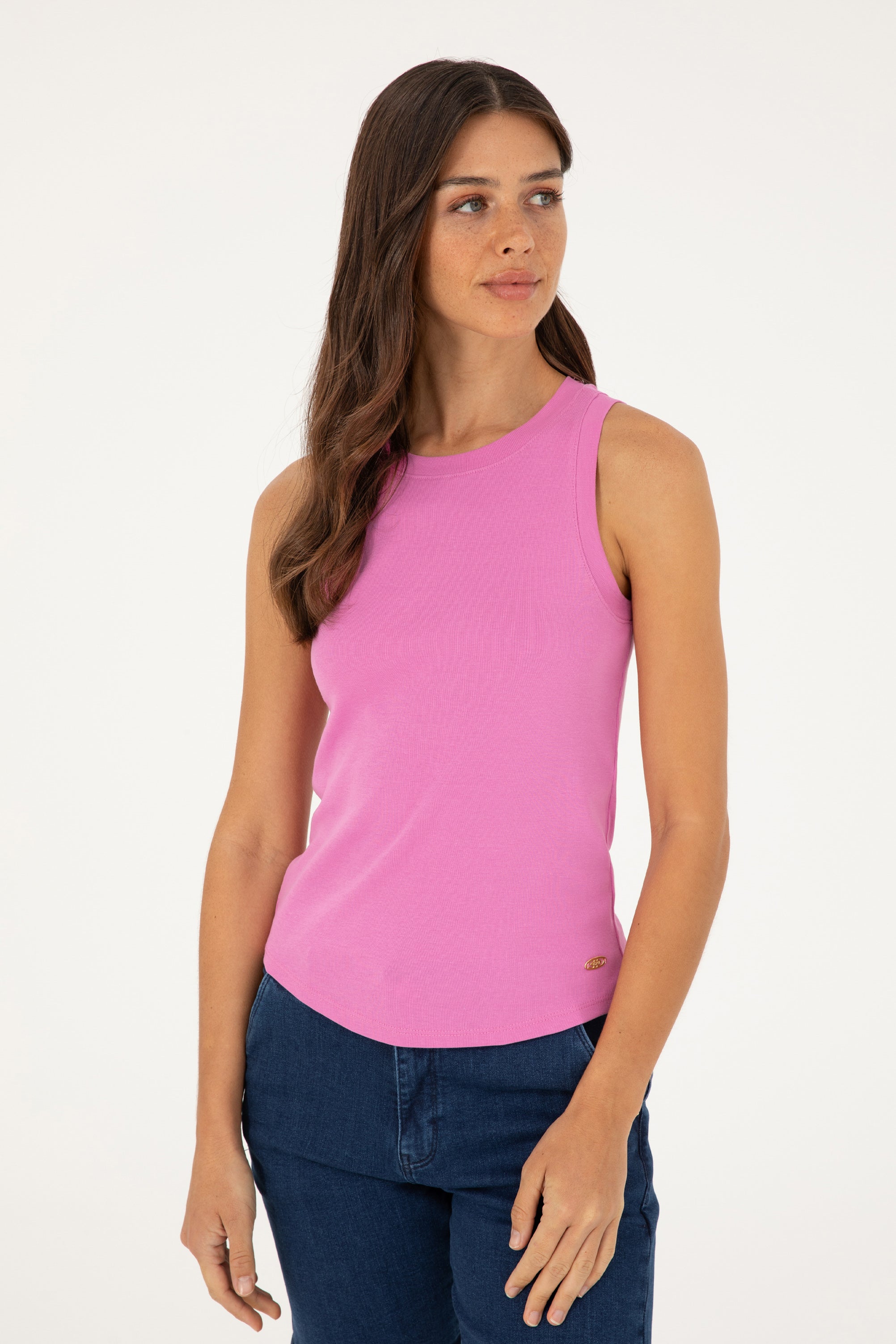 Ova šarmantna majica bez rukava u živahnoj pink boji donosi dozu svježine i stila u svaki vaš outfit. Karakteriše je udoban materijal koji pruža lakoću i prozračnost, što je čini idealnom za toplije dane. Dizajn majice sa klasičnim izrezom omogućava lako kombinovanje sa raznim odjevnim predmetima. Ova majica je savršen izbor za ležerne trenutke, bilo da se radi o odlasku s prijateljima ili relaksaciji kod kuće, a može se kombinovati sa farmericama, suknjama ili šortsevima za savršen dnevni izgled.