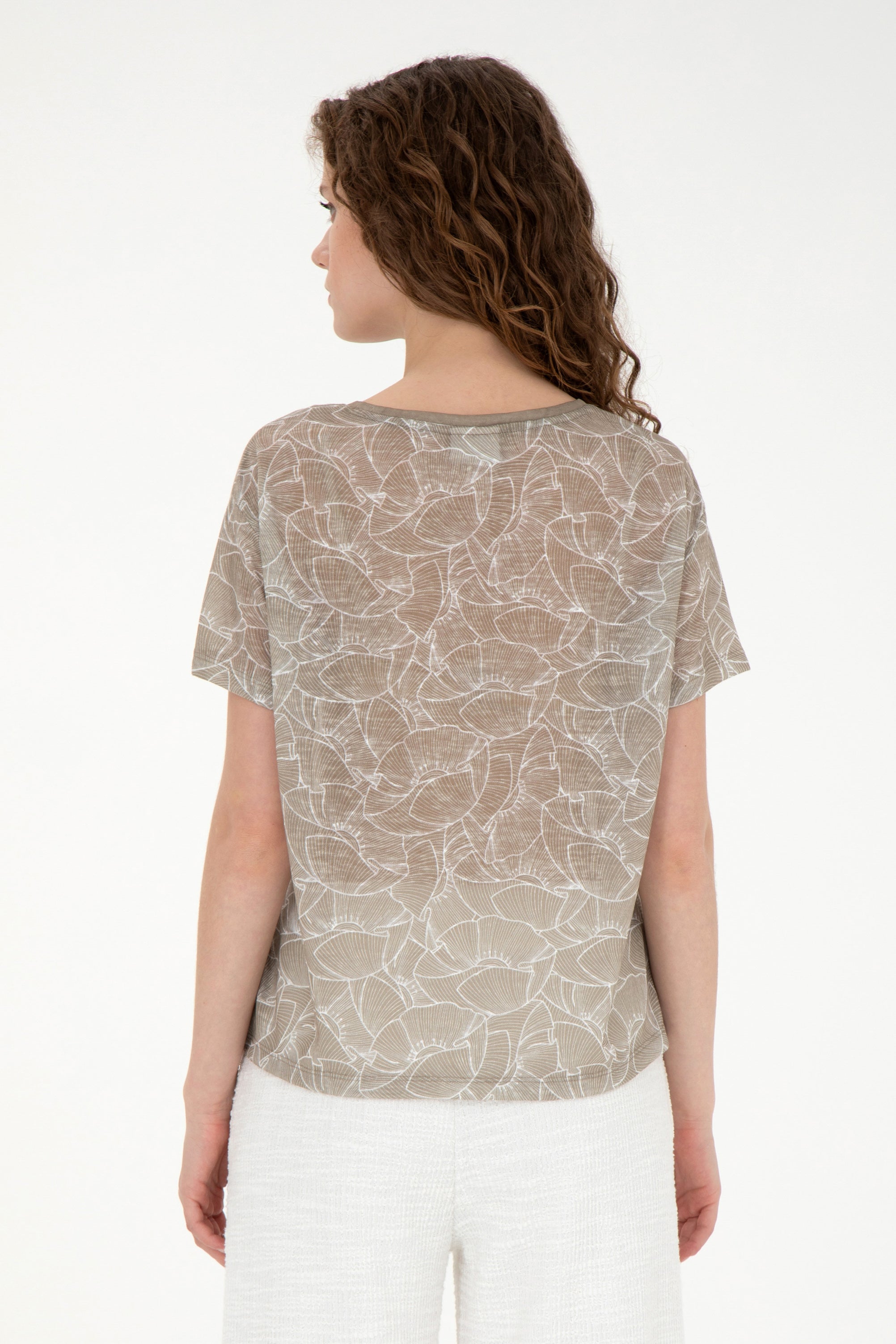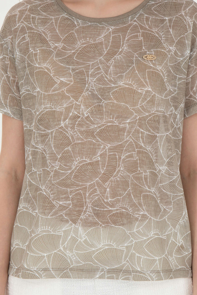 Moderna majica u nježnoj bež boji donosi udobnost i stil za svaku priliku. Karakteriše je lagani materijal koji omogućava prozračnost tokom toplih dana, dok savršen kroj osigurava udobno nošenje. S upečatljivim printom lišća, ova majica dodaje prikriveni pečat sofisticiranosti svakom outfitu. Idealna je za svakodnevne kombinacije, bilo da se radi o trapericama, suknjama ili šortsevima, a lako se može stilizovati i za večernje izlaske uz dodavanje elegantnih dodataka.