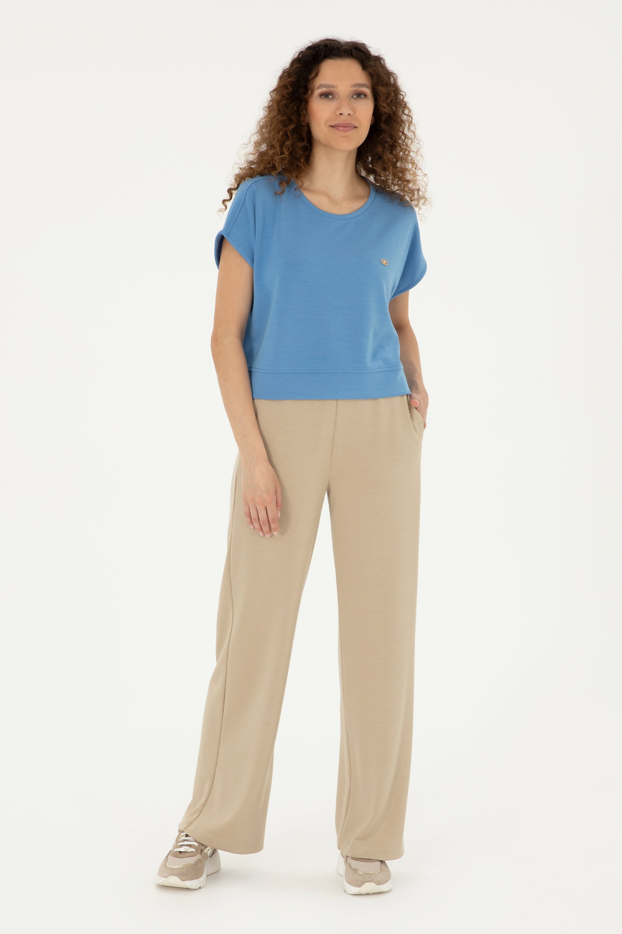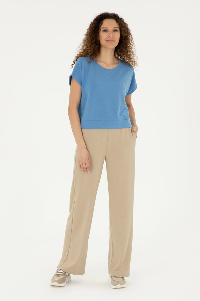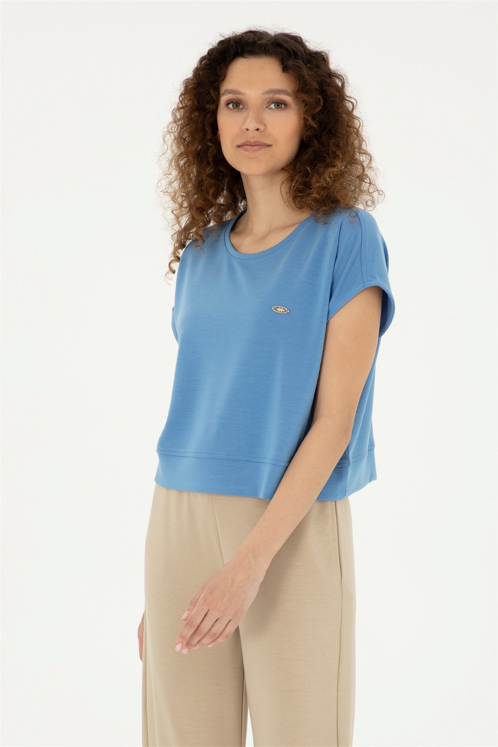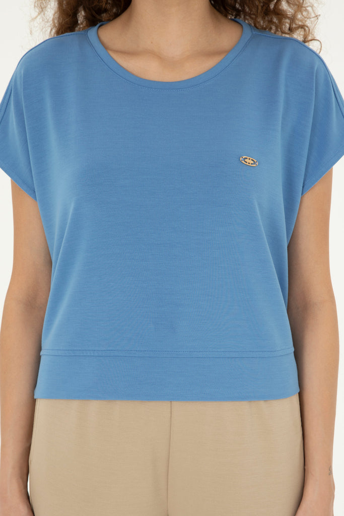 Moderna majica u živahnoj plavoj boji donosi svježinu i udobnost za svaki dan. Karakteriše je lagani materijal koji omogućava prozračnost i lakoću nošenja tokom toplih dana. Na prednjem dijelu majice nalazi se suptilan ukrasni detalj koji dodaje notu sofisticiranosti. Ova majica je savršena osnova za svakodnevne kombinacije, bilo da se odlučite za ležeran izlazak ili opuštenu šetnju, a lako se može kombinovati sa raznim stilovima i odjevnim predmetima poput traperica, suknji ili sportskih hlača.