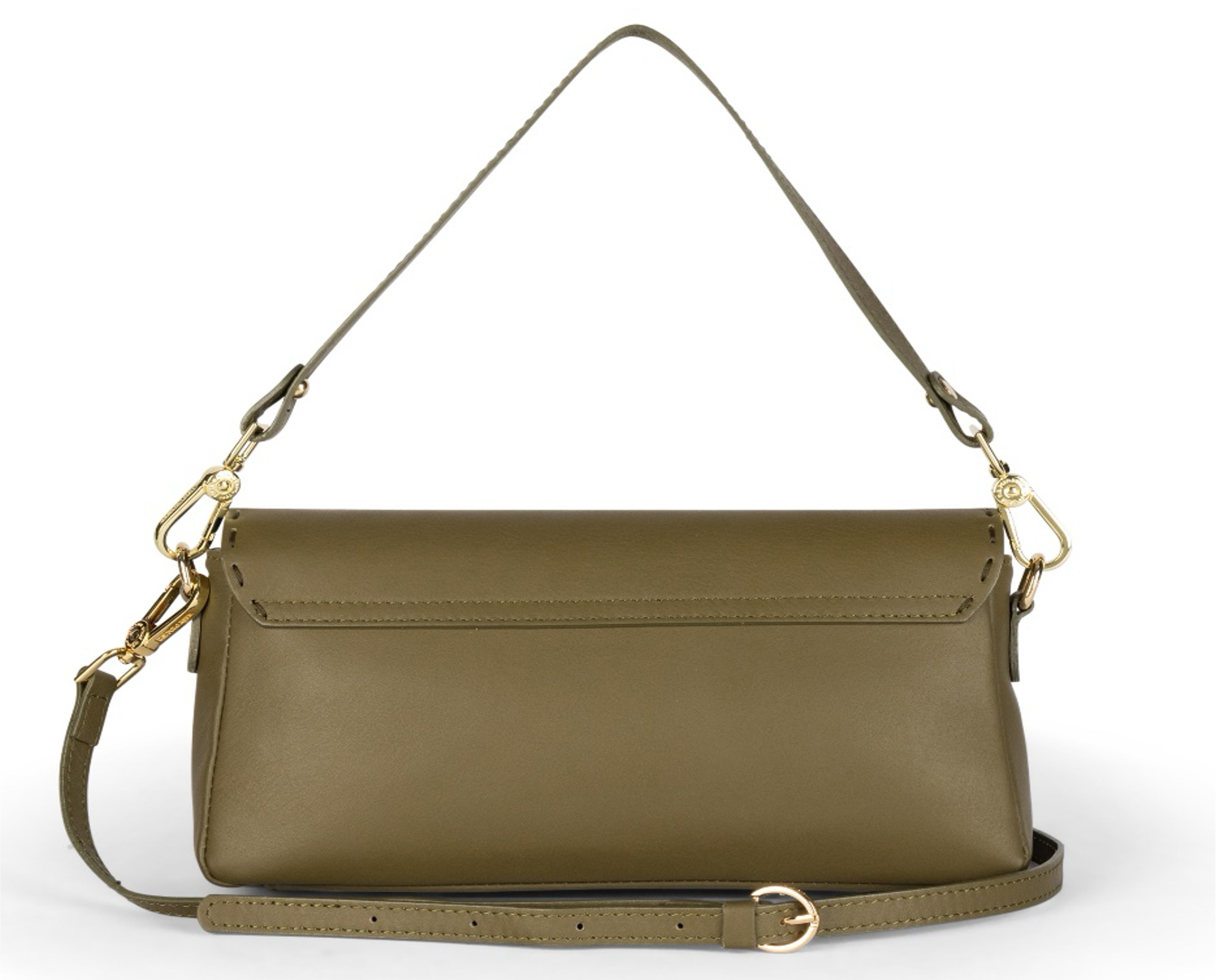 Elegantna torba u trendovskoj maslinastoj boji nudi savršenu kombinaciju stila i funkcionalnosti. Karakteriše je glatka kožna tekstura koja joj daje sofisticiran izgled, dok su detalji sa zlatnim akcentima dodatno istaknuti. Ova torba dolazi sa čvrstim remenom koji omogućava udobno nošenje, a može se nositi i kao clutch za posebne prilike. Idealna je za svakodnevne kombinacije ili večernje izlaske, savršeno se uklapa sa raznim stilovima i odjevnim predmetima kao što su haljine, bluze ili čak traperice i majice.