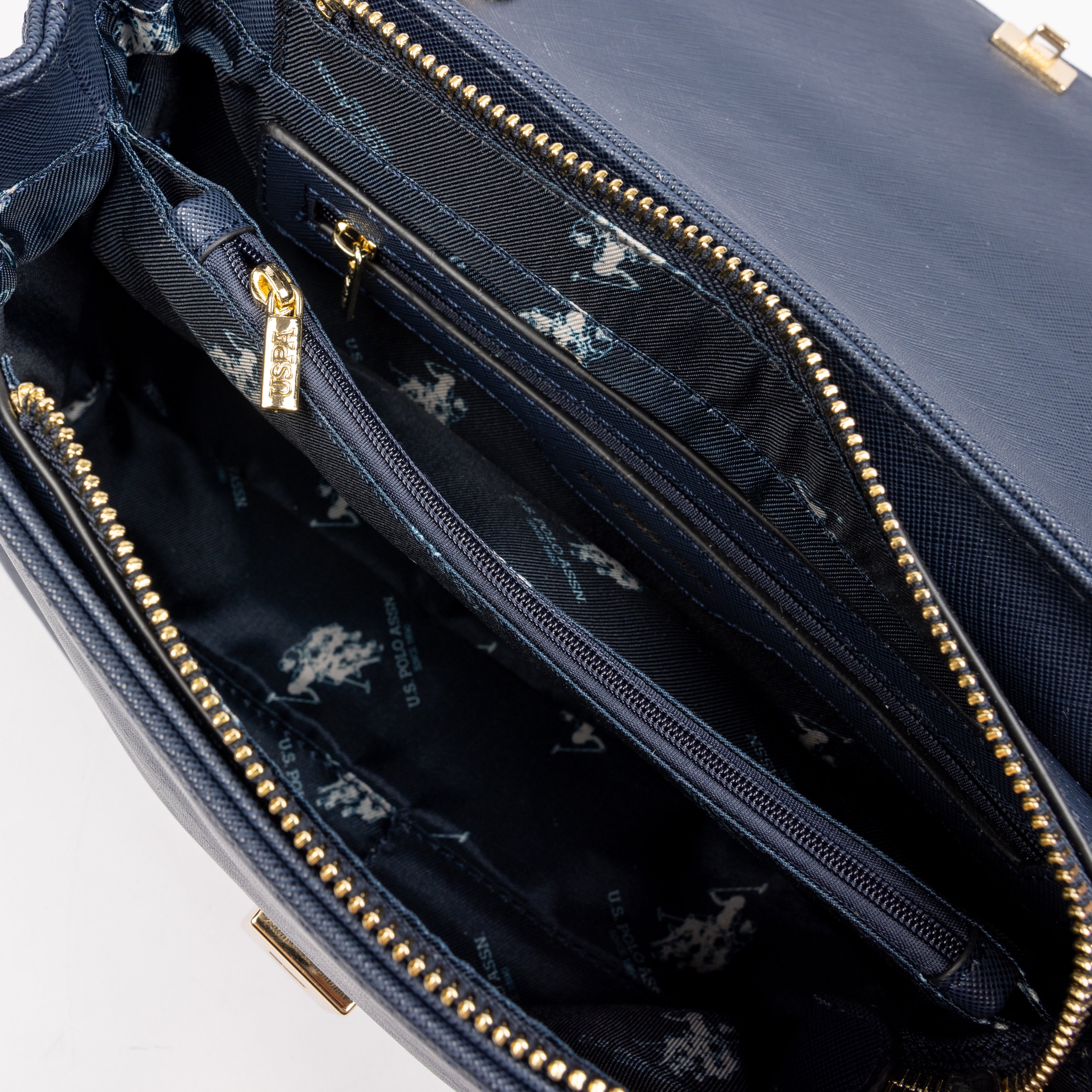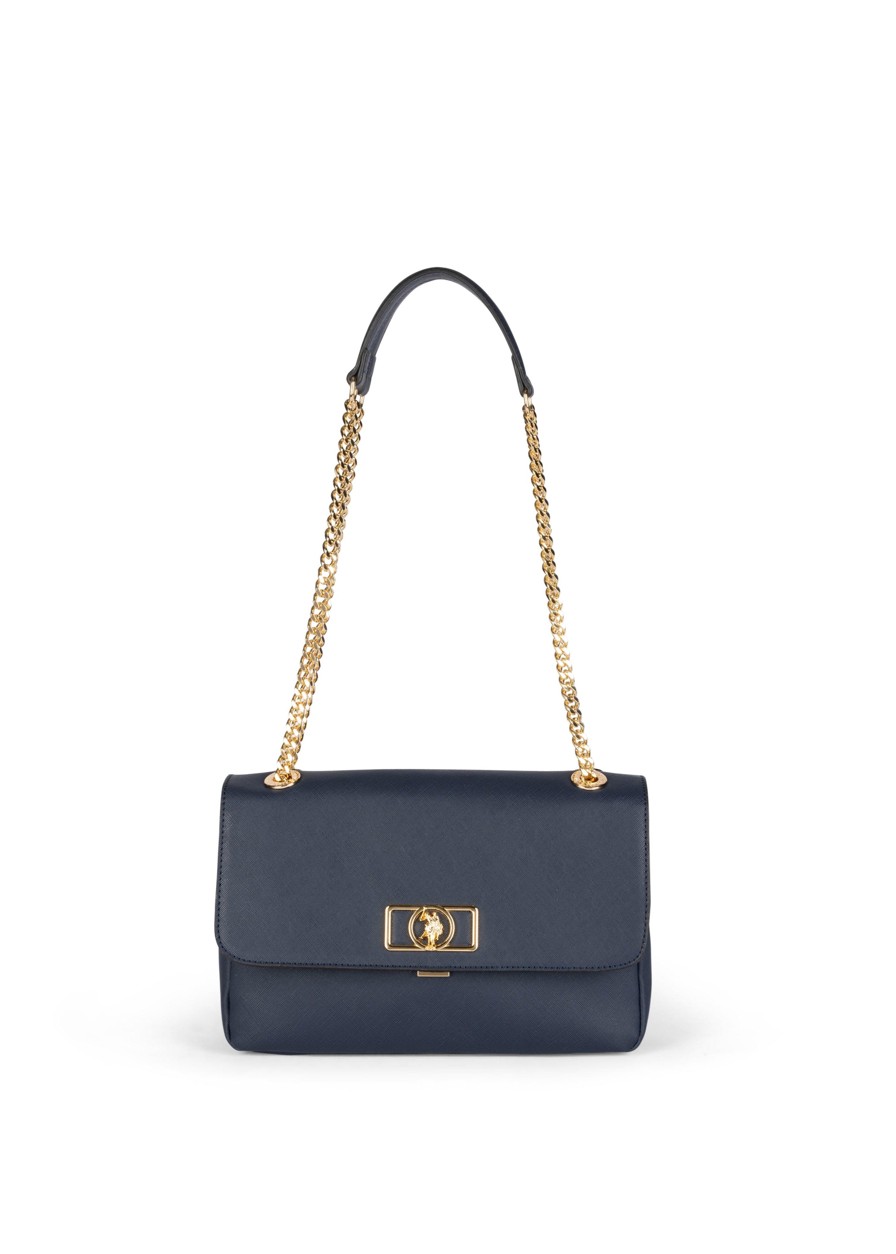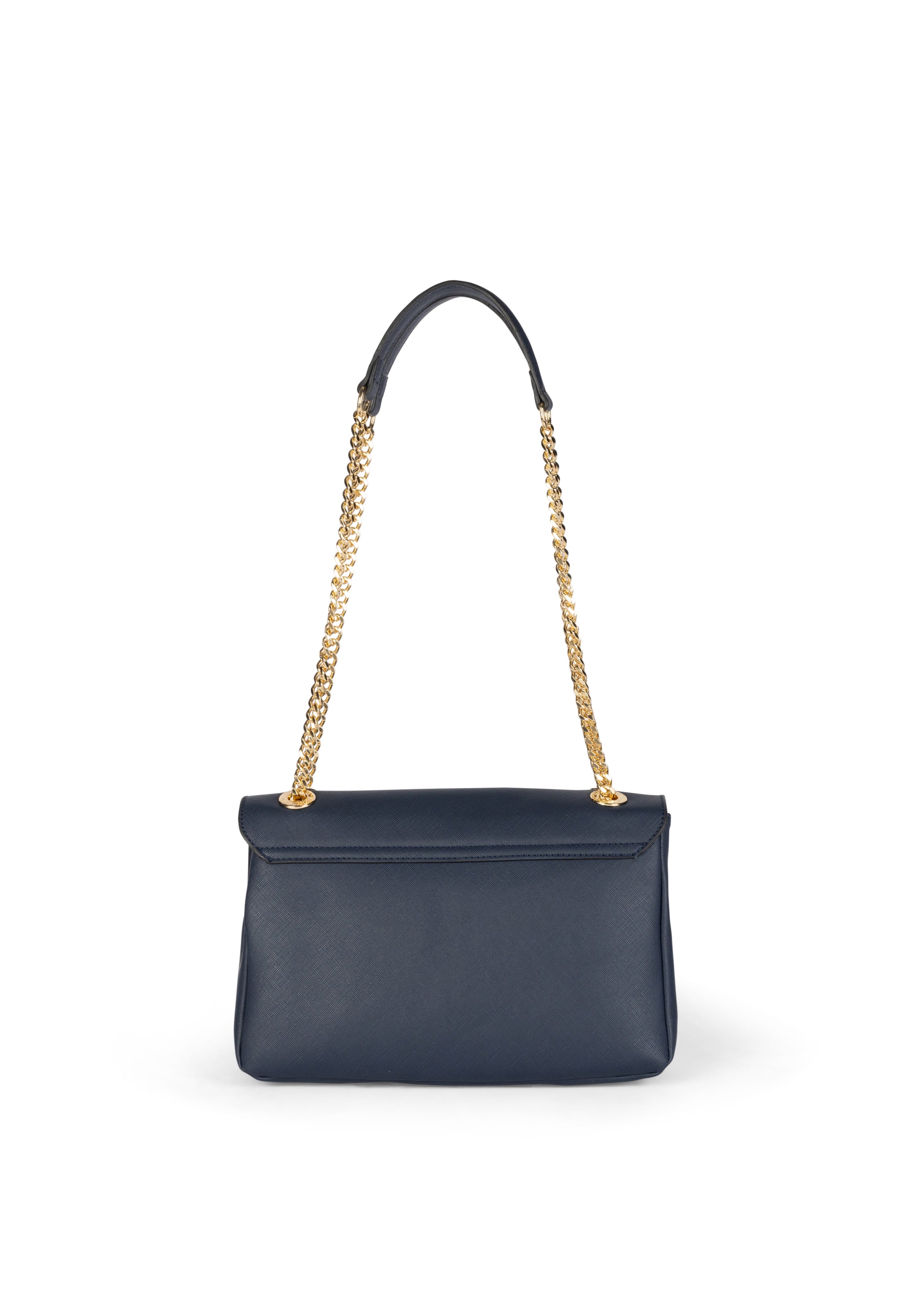 Elegantna torba u tamnoplavoj boji unosi sofisticiranost i šarm u svaki izgled. Karakteriše je glatka površina koja pruža luksuzan dojam, dok zlatni lanac daje dodatnu notu glamura. Unutrašnjost torbe je prostrana i praktična, omogućavajući organizaciju svih neophodnih sitnica. Ova torba je savršen dodatak za večernje izlaske ili poslovne sastanke, a može se kombinovati s različitim odjevnim predmetima, od klasičnih haljina do elegantnih odijela.