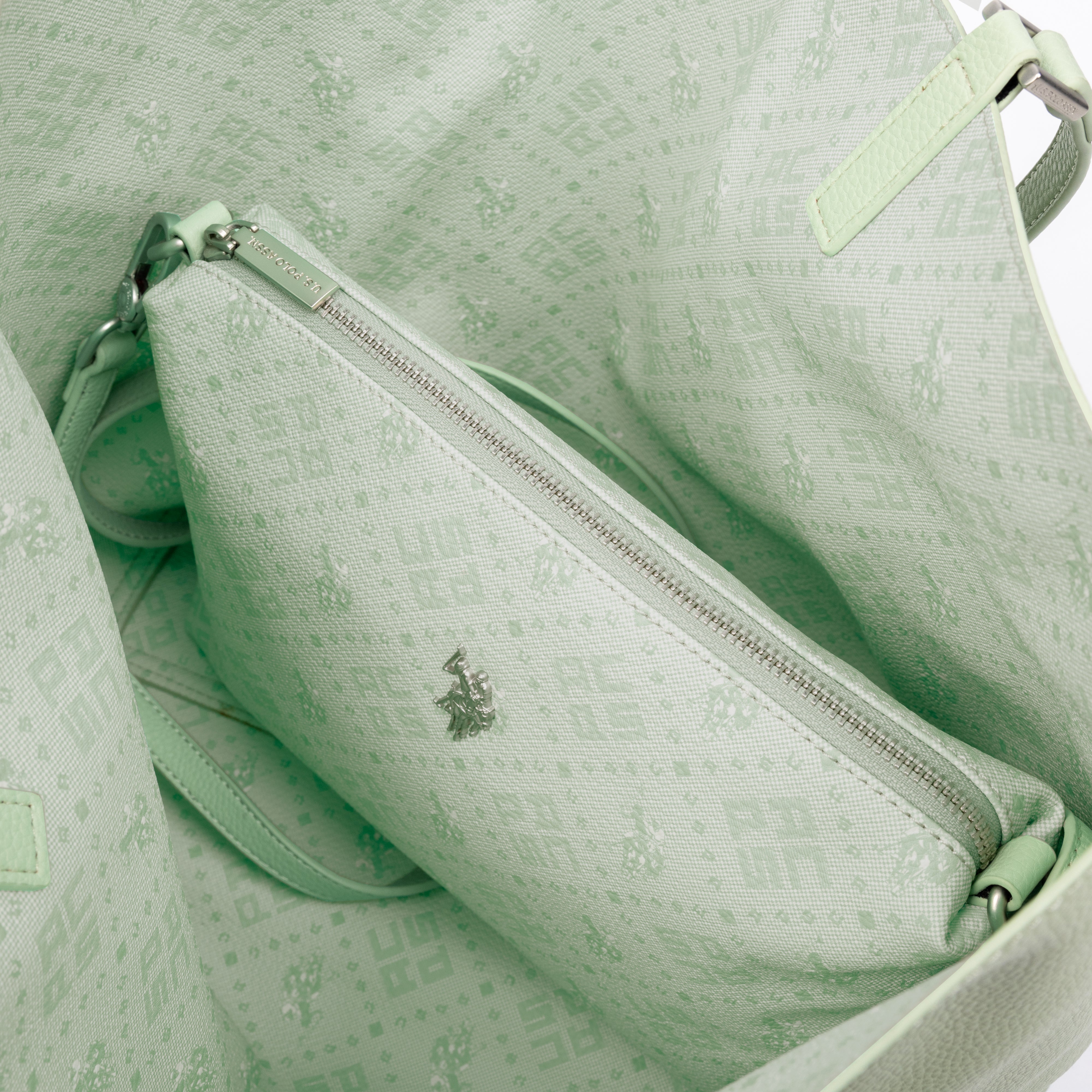 Elegantna torba u svijetloj pastelno zelenoj boji donosi dašak svježine i stila u svaki outfit. Karakteriše je prostoran unutrašnji dio koji omogućava praktično organizovanje svih vaših stvari, dok mekani materijal osigurava udobnost pri nošenju. Na prednjem dijelu torbe nalazi se diskretni ukrasni detalj koji doprinosi njenoj sofisticiranosti. Ova torba je savršen izbor za svakodnevne prilike, bilo da idete na posao, šoping ili večernji izlazak, a lako se kombinuje sa različitim stilovima odjeće.