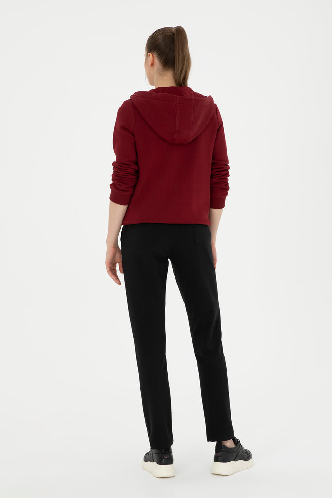 Ova trenerka u elegantnoj tamnocrvenoj boji pruža udobnost i stil, savršena za svakodnevne aktivnosti. Karakterišu je mekani materijal i klasičan kroj koji osigurava slobodu kretanja. Kapuljača na dukserici dodaje dodatnu praktičnost i zaštitu od hladnoće. Sa prednje strane nalaze se džepovi koji su idealni za pohranu sitnica ili zagrijavanje ruku. Donji dio trenerke dolazi s modernim sužavanjem na nogavicama, što doprinosi savremenom izgledu. Ova trenerka je odličan izbor za ležerne izglede, bilo da se radi o treningu, šetnji ili opuštanju kod kuće, a lako se kombinuje s tenisicama ili sportskom obućom.