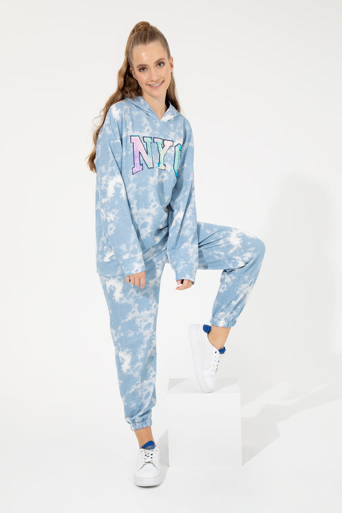 Moderna trenirka u nježnoj plavoj boji s efektom oblaka savršena je za udobne zimske dane. Karakterišu je mekani materijali koji pružaju izvanrednu udobnost i slobodu kretanja. Elastični pojas i manžetne na nogavicama osiguravaju optimalno pristajanje, dok diskretni detalji dodaju malo stila. Ova trenirka je idealna za svakodnevne aktivnosti, kao što su šetnje ili opuštene sportske kombinacije, a može se lako kombinovati s duksericama, majicama ili jaknama za stvaranje modernog, ležernog izgleda.