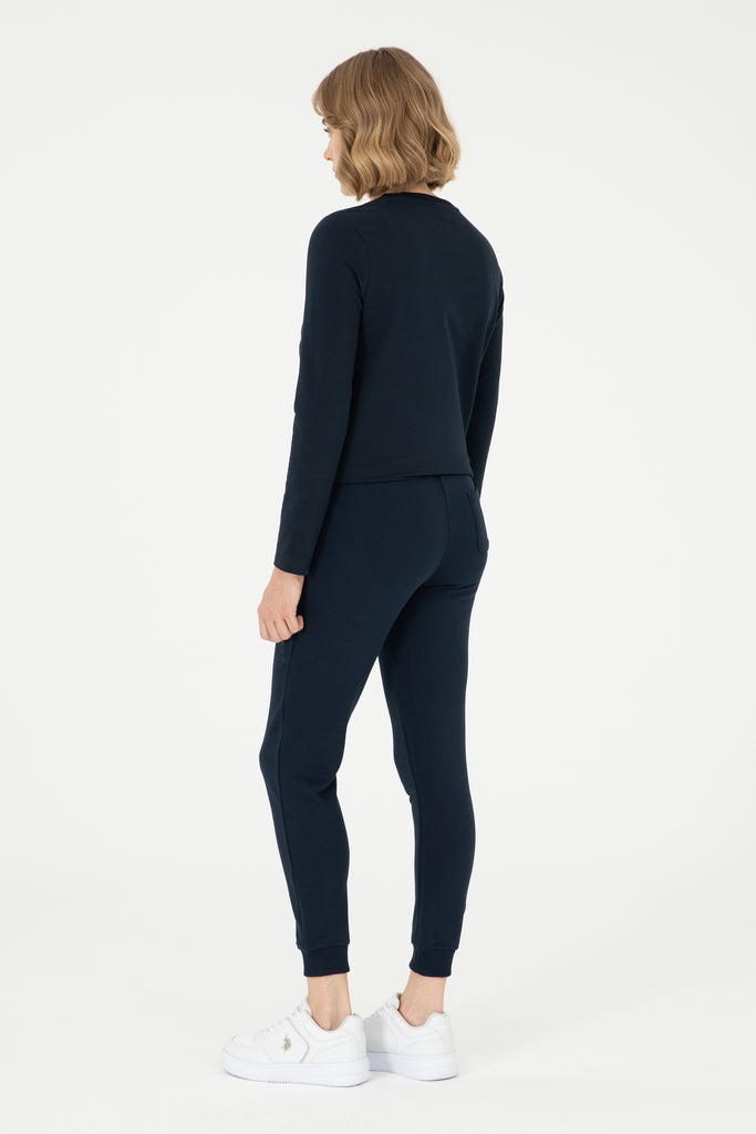 Elegantna trenirka u tamnoplavoj boji nudi savršenu kombinaciju udobnosti i stila za svakodnevne aktivnosti. Karakteriše je mekana tkanina koja prijatno obavija tijelo, pružajući slobodu pokreta. Gornji dio trenirke ima minimalistički dizajn s diskretnim logotipom, dok donji dio s uskim krojem osigurava moderno i prilagođeno fit. Ova trenirka je idealan izbor za opuštene trenutke kod kuće ili aktivne izlete, a lako se kombinuje s različitim obućama i dodatcima, pružajući vam sofisticirani, ali ležerni izgled.
