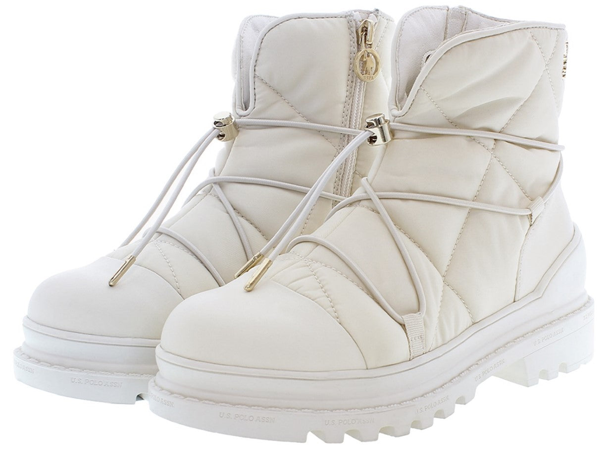 Moderne čizme u elegantnoj bež boji donose savršenu kombinaciju udobnosti i stila, idealne za hladne zimske dane. Karakterišu ih mekani materijali i prepoznatljiv kvadratni šav koji osigurava dobru izolaciju i udobno nošenje. Na bočnoj strani nalazi se diskretan zlatni detalj koji unosi malo luksuza u svakodnevne kombinacije. Ove čizme su savršen izbor za razne prilike, bilo da se radi o šetnji gradom ili ležernom društvenom okupljanju, a lako se mogu kombinovati sa kaputima, parkama ili džemperima.