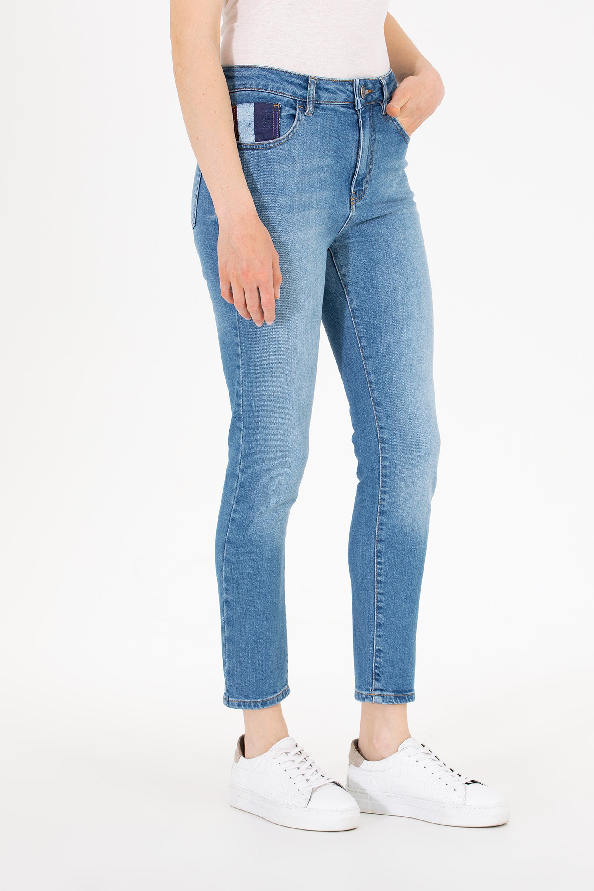 Moderne farmerke u klasičnoj plavoj boji donose udobnost i stil za svakodnevne prilike. Karakterišu ih tanki krojevi koji se lijepo prilagođavaju tijelu i pružaju savršeno pristajanje. Na prednjem dijelu nalaze se praktične džepove koji su idealni za sitnice, dok su pozadi diskretni detalji koji dodaju sofisticiranost. Ove farmerke su savršen izbor za ležerne kombinacije, bilo da se radi o casual izlasku ili opuštenom danu, a lako se mogu kombinovati sa raznim majicama, košuljama ili džemperima.