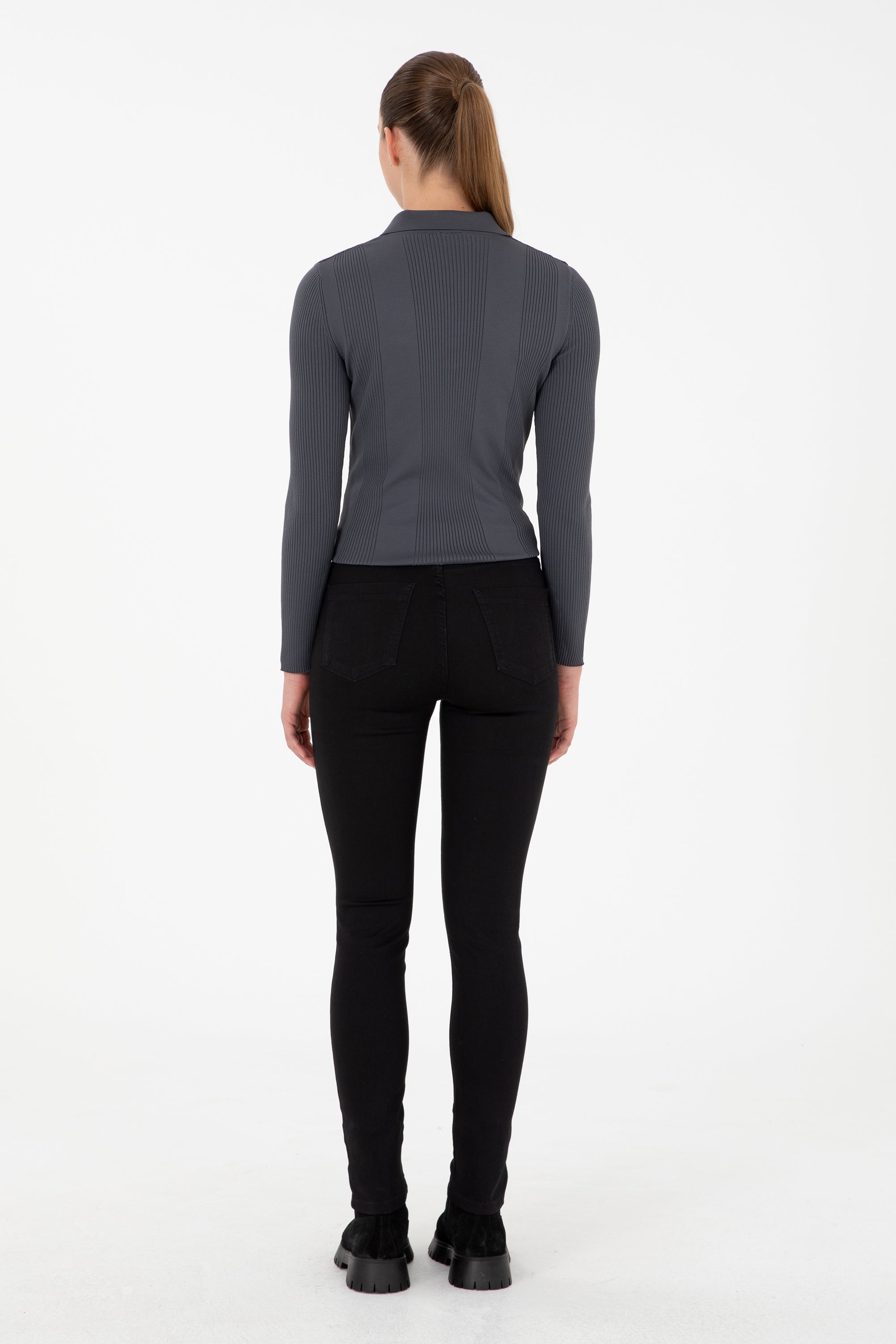 Moderne farmerke u klasičnoj crnoj boji pružaju savršenu kombinaciju udobnosti i stila. Njihova mekana tkanina osigurava izvanredno nošenje tokom cijelog dana, dok se elastičnost materijala prilagođava svakom pokretu. Farmerke su dizajnirane s niskim strukom i užim krojem koji naglašava figuru, a diskretni logo dodaje dašak sofisticiranosti. Ove farmerke su idealan izbor za svakodnevne kombinacije, bilo da se radi o ležernom izlasku ili formalnijem događaju, te se lako mogu kombinovati sa različitim majicama, košuljama ili jaknama.