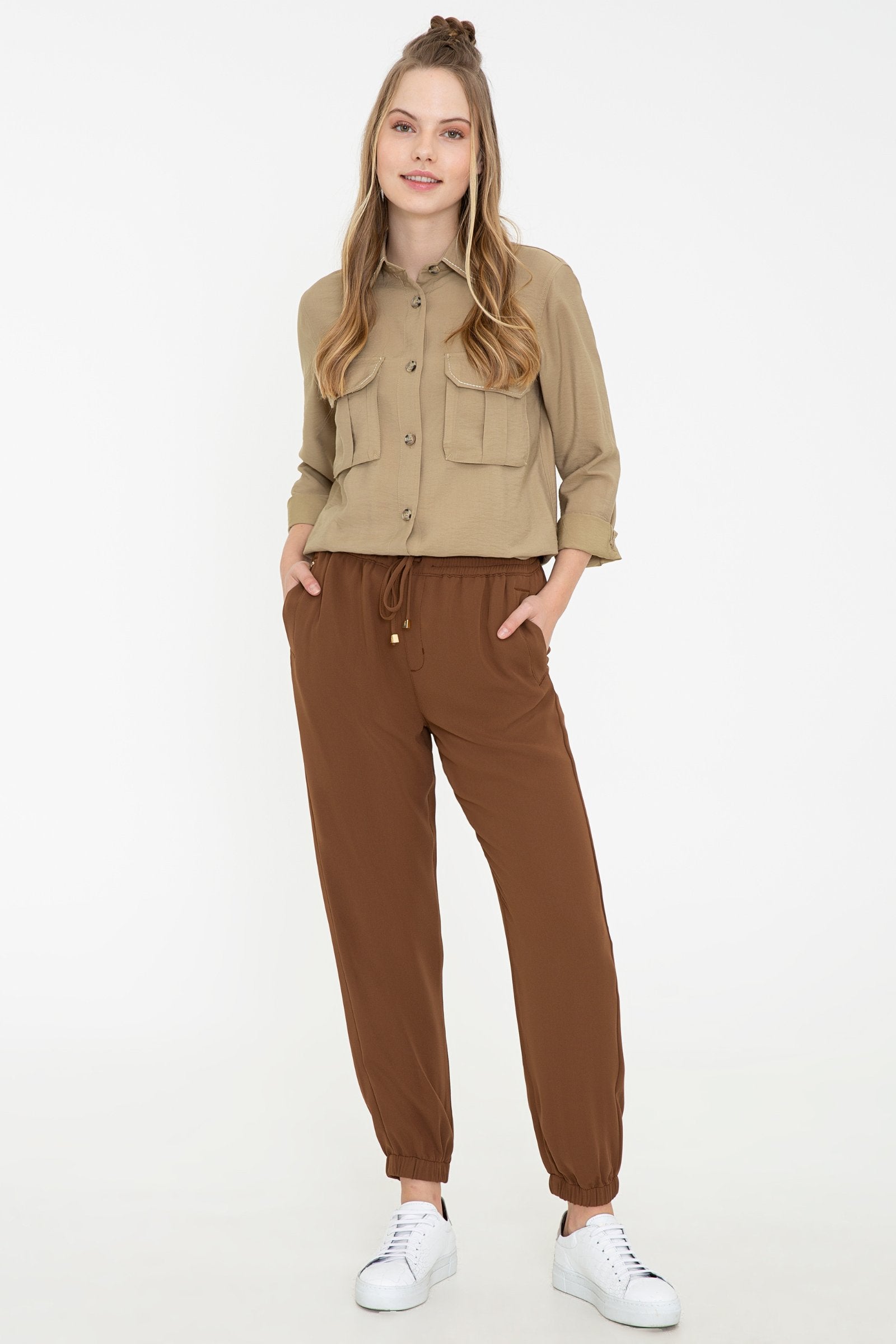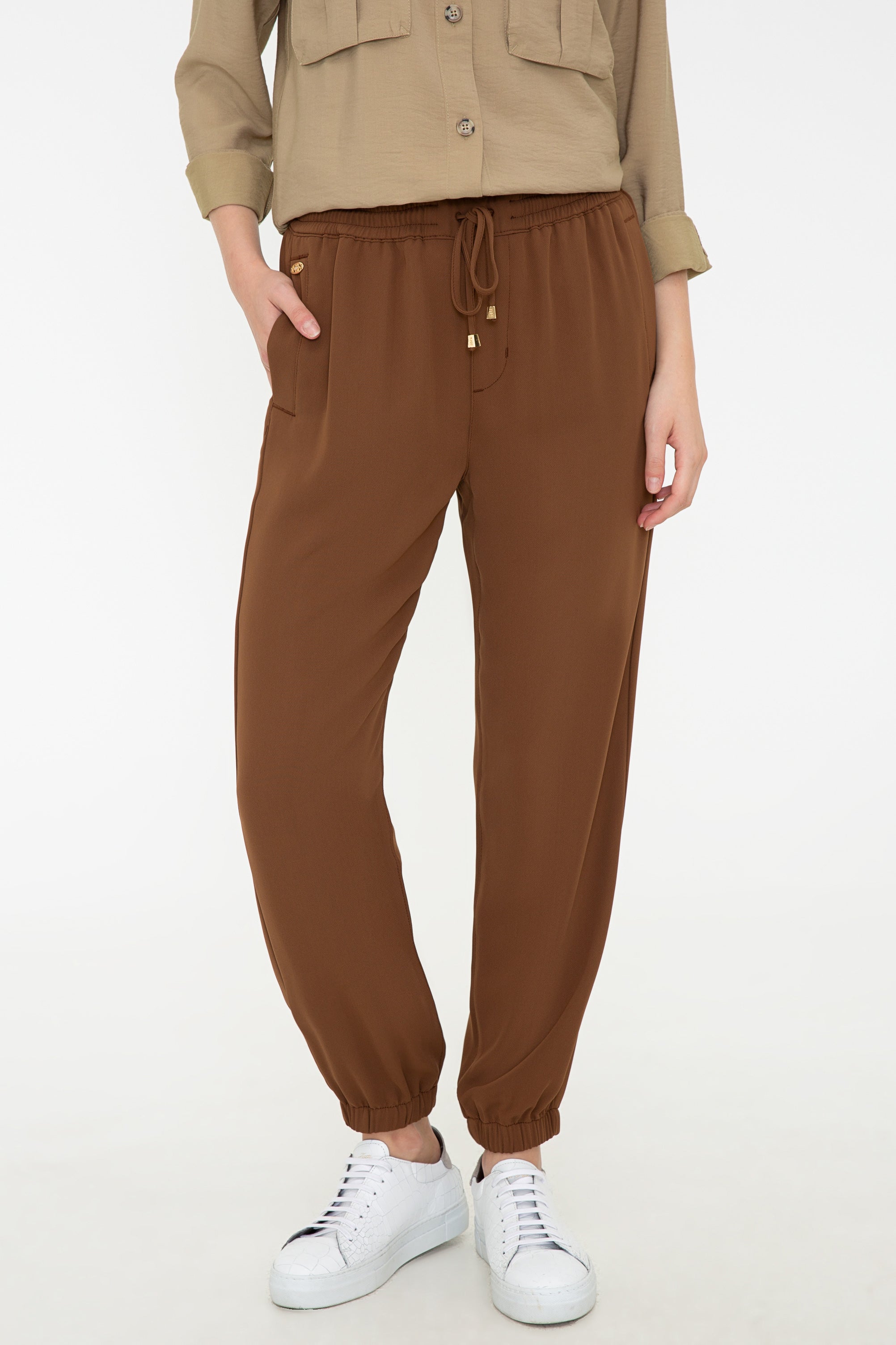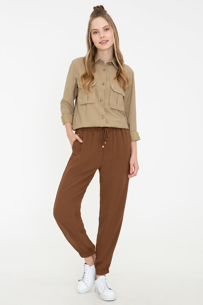 Elegantne pantalone u bogatoj smeškastoj boji pružaju savršenu udobnost i slobodu pokreta tokom svakodnevnih aktivnosti. Karakterišu ih lagani i prozračni materijali koji garantuju prijatno nošenje bez obzira na vremenske uslove. Pantalone imaju elastičan pojas sa vezicom, što omogućava prilagodljivo pristajanje, dok su sužene u zapešćima, dodajući modernu notu ovom klasičnom komadu. Ove pantalone su idealne za ležerne kombinacije, savršene su za kafiće, šetnje ili opuštanje kod kuće, a lako se mogu kombinovati s različitim vrhovima, poput majica, dukserica ili košulja, dajući vam mogućnost da kreirate brojne stilizovane outfite.