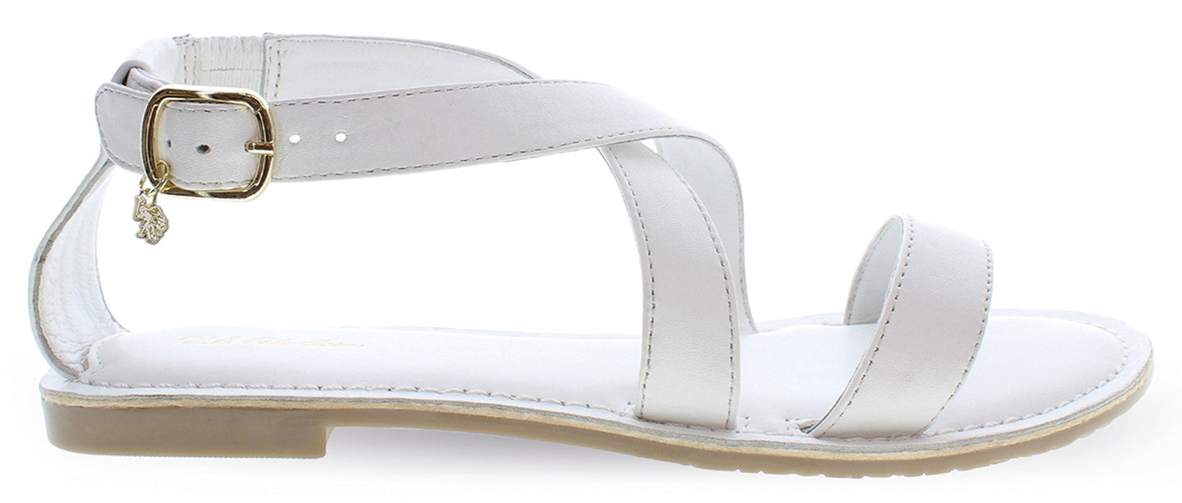Elegantne sandale u klasičnoj bijeloj boji savršene su za tople ljetne dane i pružaju udobnost tokom cijelog dana. Karakterišu ih tanke trake koje se prepliću, osiguravajući savršeno pristajanje i stabilnost. Na petnoj traci nalazi se diskretan zlatni detalj koji dodaje dašak sofisticiranosti. Ove sandale su idealan izbor za razne prilike, od dnevnih izlazaka do večernjih druženja, a lako se kombinuju sa haljinama, suknjama ili kratkim hlačama, što ih čini svestranim dodatkom svake ljetne garderobe.