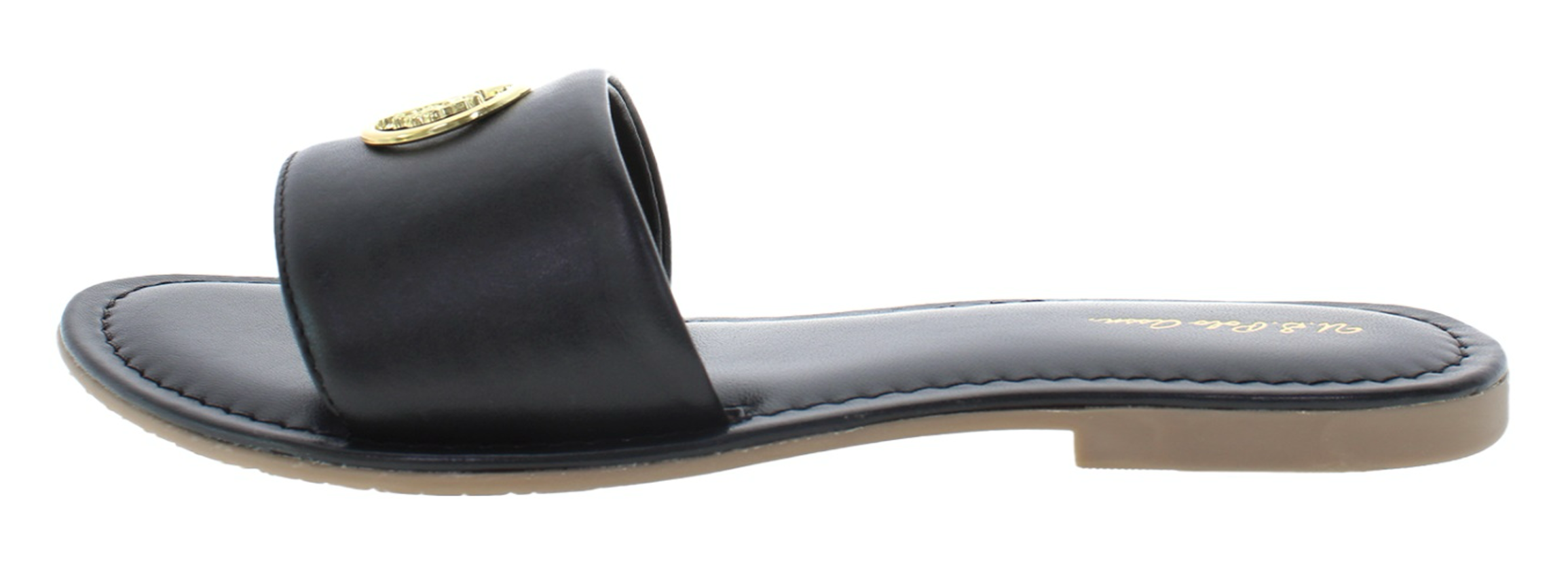 Elegantne sandale u klasičnoj crnoj boji pružaju udobnost i stil tokom ljetnih dana. Karakteriše ih jednostavan, ali šik dizajn sa širokim trakama koje osiguravaju savršeno pristajanje. Na prednjem dijelu sandala nalazi se suptilni metalni detalj koji dodaje dašak luksuza. Ove sandale su savršen izbor za ljetne izlaske, bilo da se radi o šetnji plažom ili večernjem izlasku, a lako se mogu kombinovati sa različitim odjevnim predmetima poput haljina, suknji ili kratkih hlača.