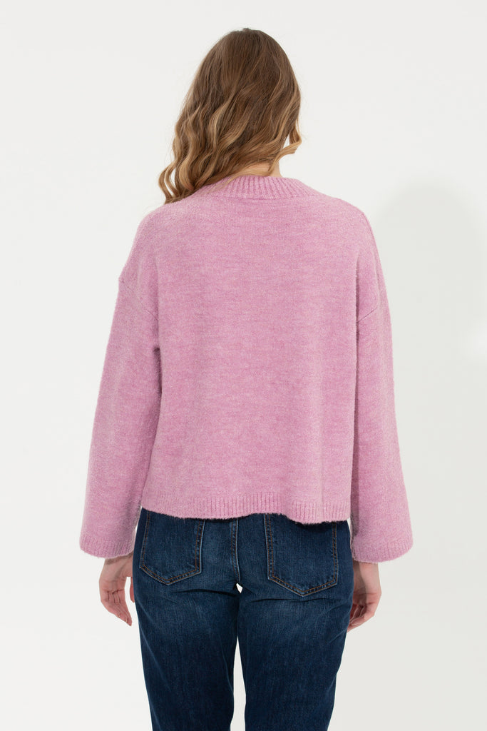 Ovaj šarmantni džemper u nježnoj ružičastoj boji donosi toplinu i udobnost tokom hladnih dana. Karakteriše ga mekana, plišasta tekstura koja savršeno prianja uz tijelo, pružajući osjećaj prijatnosti. Džemper ima moderni kroj s dužim rukavima koji dodaje dašak sofisticiranosti. Na prednjem dijelu se nalazi diskretan logo koji ističe kvalitet izrade. Ovaj džemper je idealan izbor za svakodnevne kombinacije, savršeno se uklapa uz farmerice, suknje ili leggingse, čineći ga svestranom i elegantnom opcijom za različite stilove i prilike.