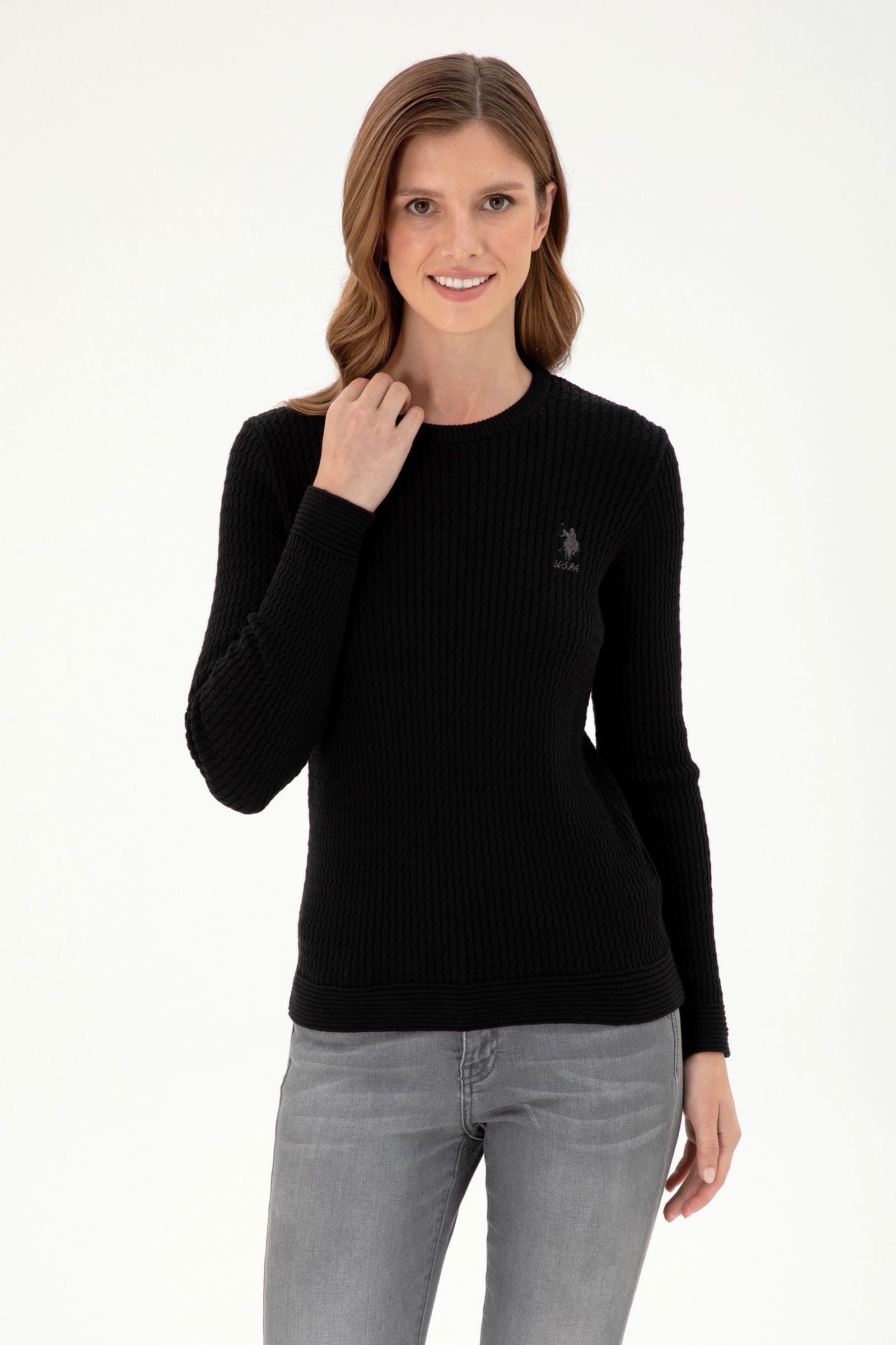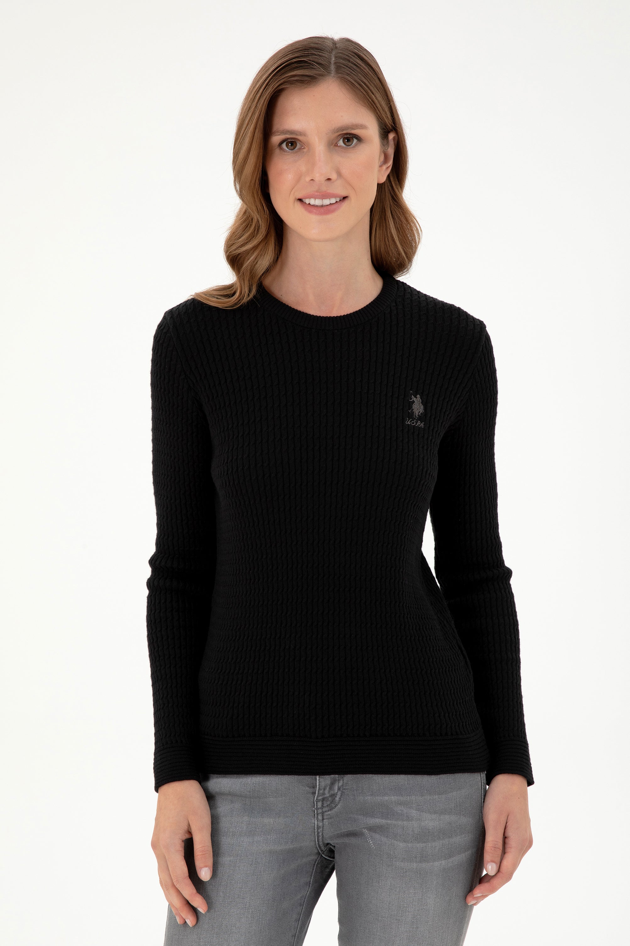 Elegantan pleteni džemper u klasičnoj crnoj boji donosi savršen spoj udobnosti i stila tokom hladnih dana. Karakteriše ga mekana rebrasta tekstura koja pruža optimalnu toplinu i savršeno se prilagođava tijelu. Na prednjem dijelu džempera nalazi se diskretan logo koji dodaje dašak sofisticiranosti. Ovaj džemper je idealan izbor za svakodnevne kombinacije, bilo da se radi o casual izdanju ili neformalnom izlasku, a lako se može kombinovati s različitim komadima odjeće poput farmerica, suknji ili jakni.