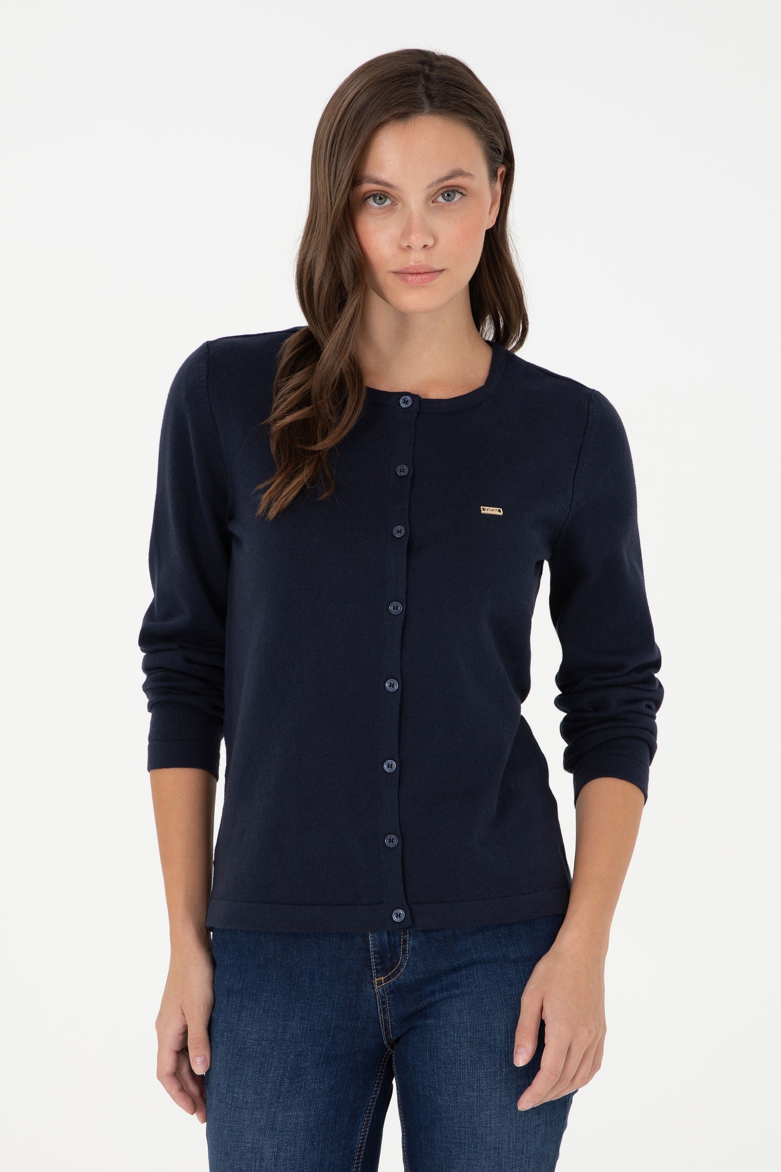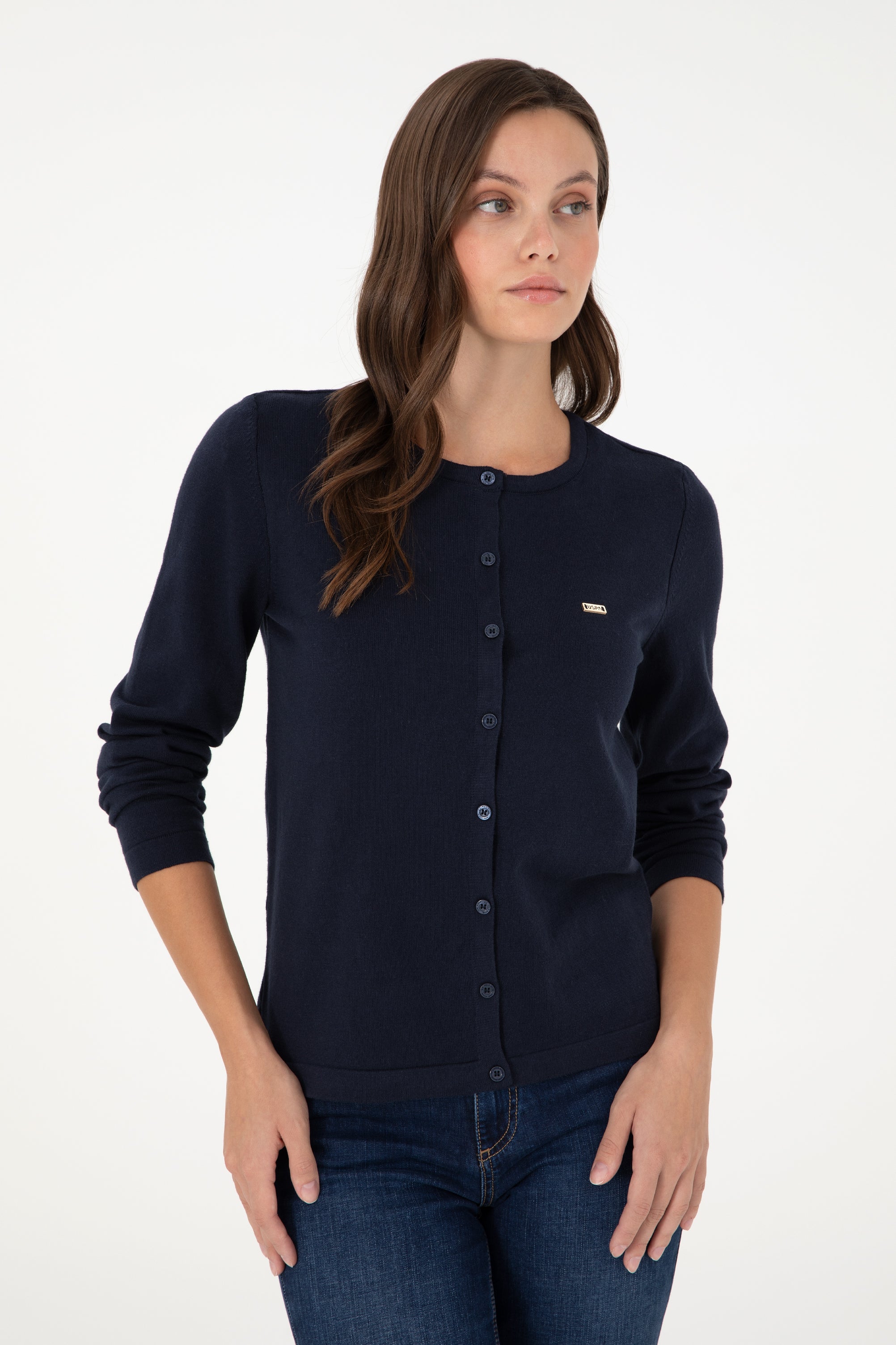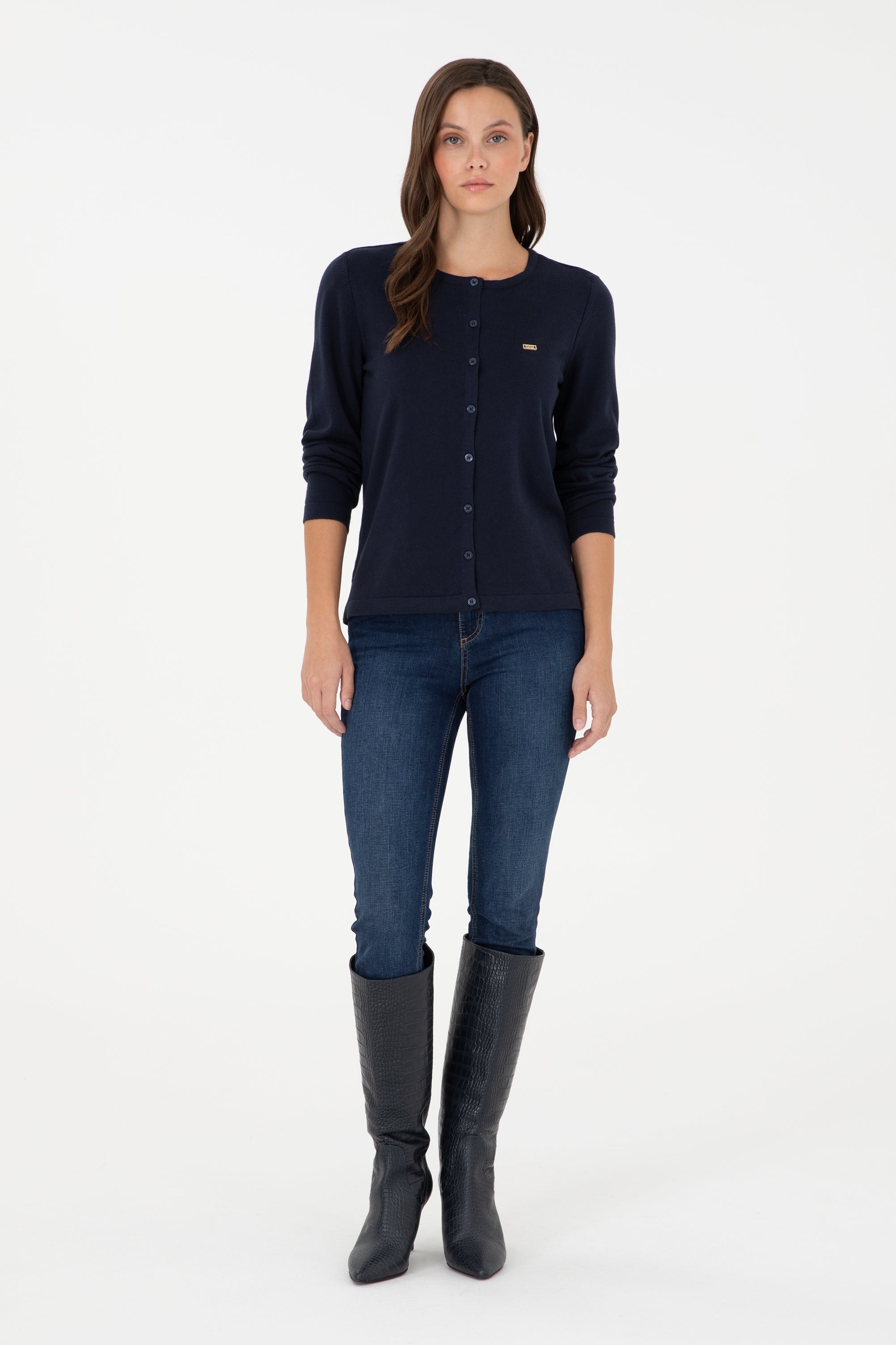Šarmantan džemper u tamnoplavoj boji pruža savršenu kombinaciju udobnosti i stila tokom hladnih dana. Karakteriše ga mekan i kvalitetan materijal koji omogućava prijatan osjećaj na koži i dobro pristajanje. Na prednjem dijelu džempera nalazi se red dugmadi koji dodaje suvremeni izgled, a diskretni logo na grudima pruža dodatnu notu prepoznatljivosti. Ovaj džemper je idealan za različite prilike, bilo da se radi o opuštenim izlascima ili svakodnevnim aktivnostima, a lako se može kombinovati s farmerkama, suknjama ili jaknama, čineći ga nezaobilaznim komadom u svakoj garderobi.