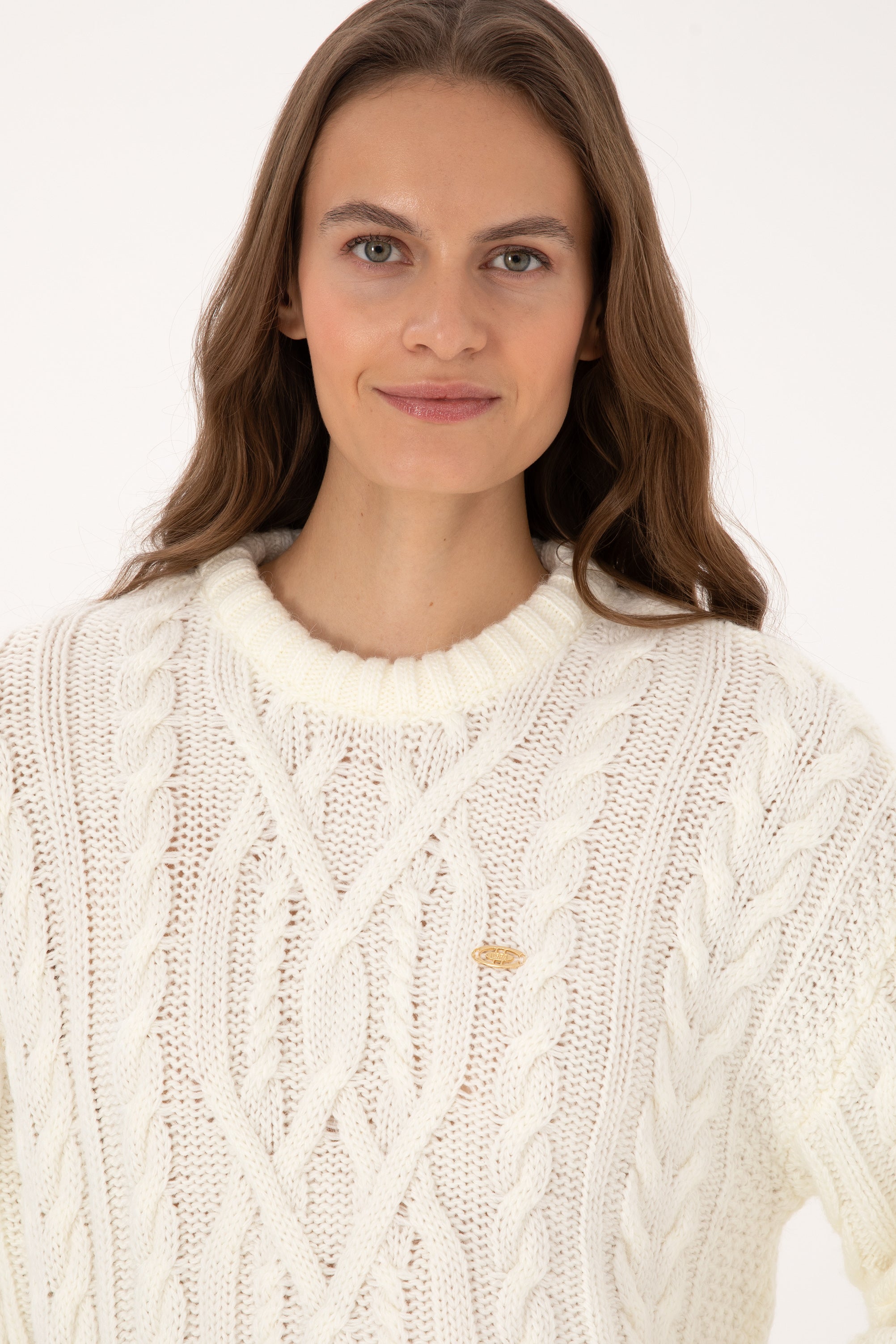 Ženski Bijeli Džemper Okrugli Vrat