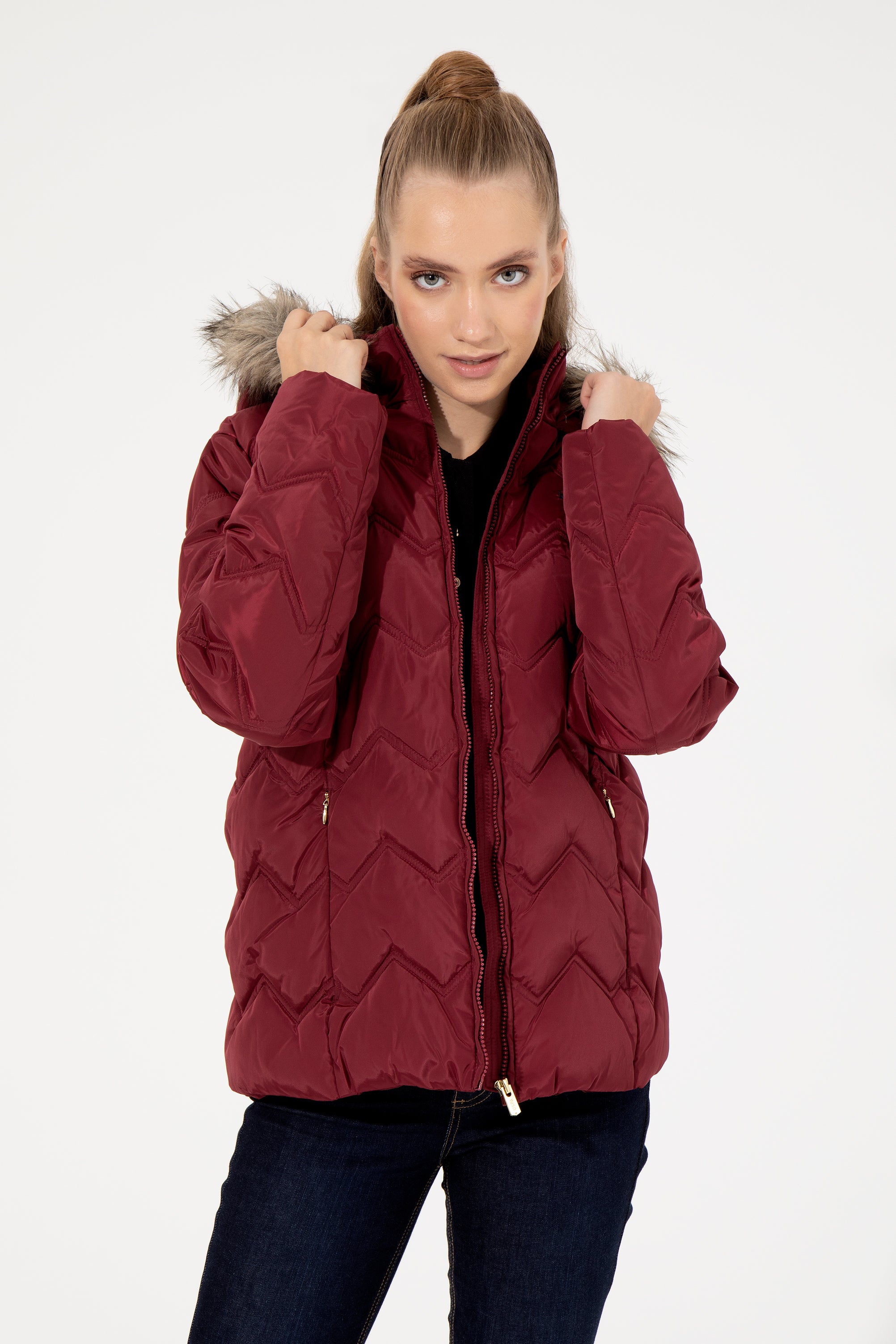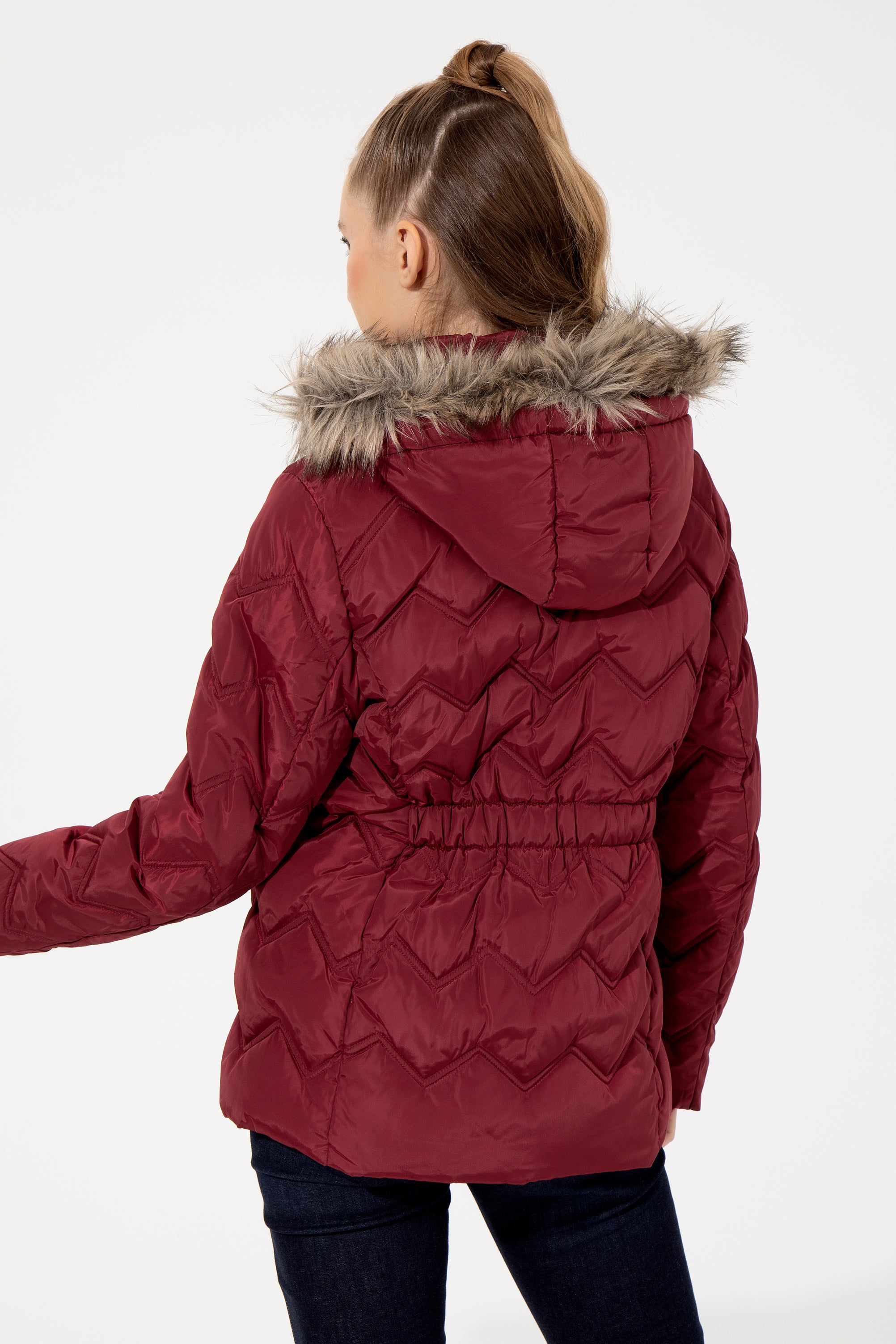 Ova atraktivna jakna u tamno crvenoj boji donosi savršenu kombinaciju stila i udobnosti počas hladnijih mjeseci. Njena jedinstvena šuplja tekstura ističe savremeni dizajn, dok meki materijali omogućavaju ugodno nošenje i odličnu zaštitu od hladnoće. Opremljena kapuljačom s umetkom od krzna, jakna dodatno unapređuje izgled, pružajući dašak luksuza. Idealna je za svakodnevne kombinacije, bilo da se radi o šetnji gradom ili izlasku s prijateljima, a lako se uklapa s različitim odjevnim predmetima kao što su farmerke, majice ili zimski dodaci.