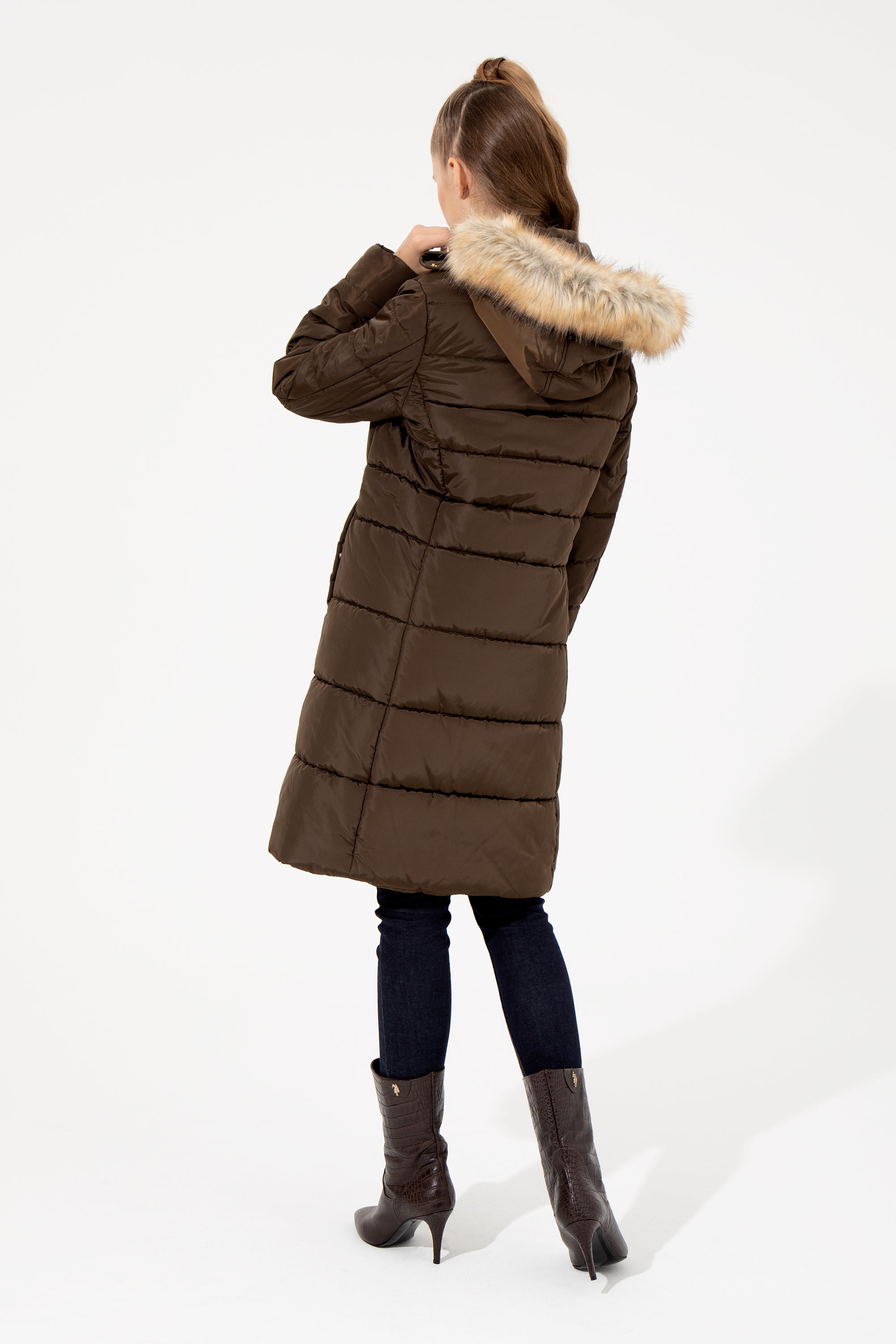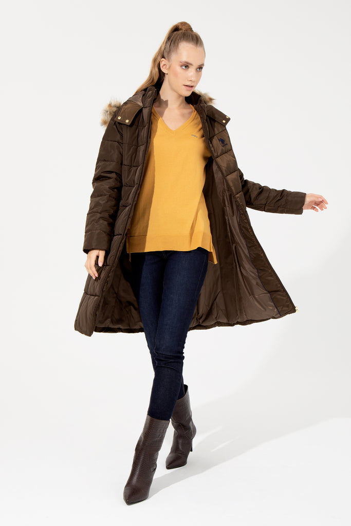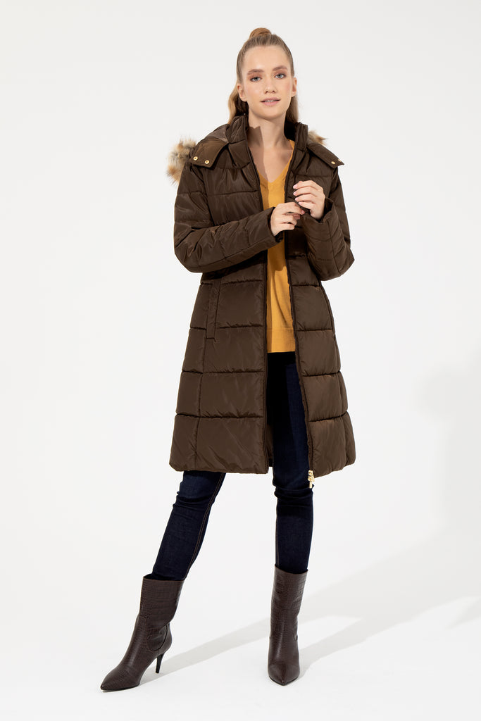 Elegantna zimska jakna u tamno smešnoj boji nudi savršenu kombinaciju stila i funkcionalnosti za hladne zime. Karakteriše je lagana, a topla punjena struktura koja pruža udobnost i savršeno prijanjanje uz tijelo. Jakna ima visoki ovratnik koji dodatno štiti od hladnoće, a zlatni detalji na dugmadima dodaju dašak luksuza. Ova jakna je idealna za svakodnevne kombinacije, bilo da se radi o šetnji gradom ili ležernom izlasku, a bez problema se može uklopiti s različitim odjevnim predmetima kao što su traperice, duksevi ili čizme.